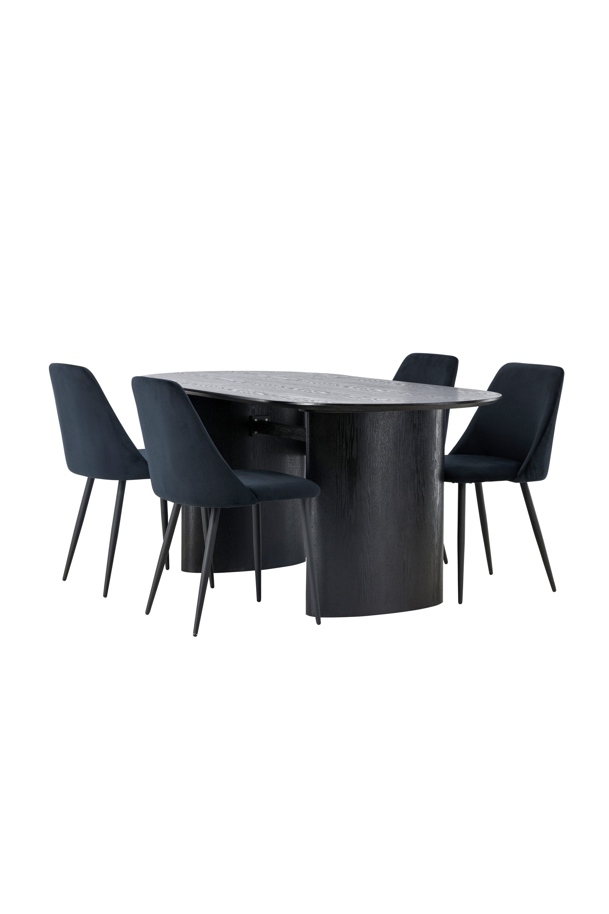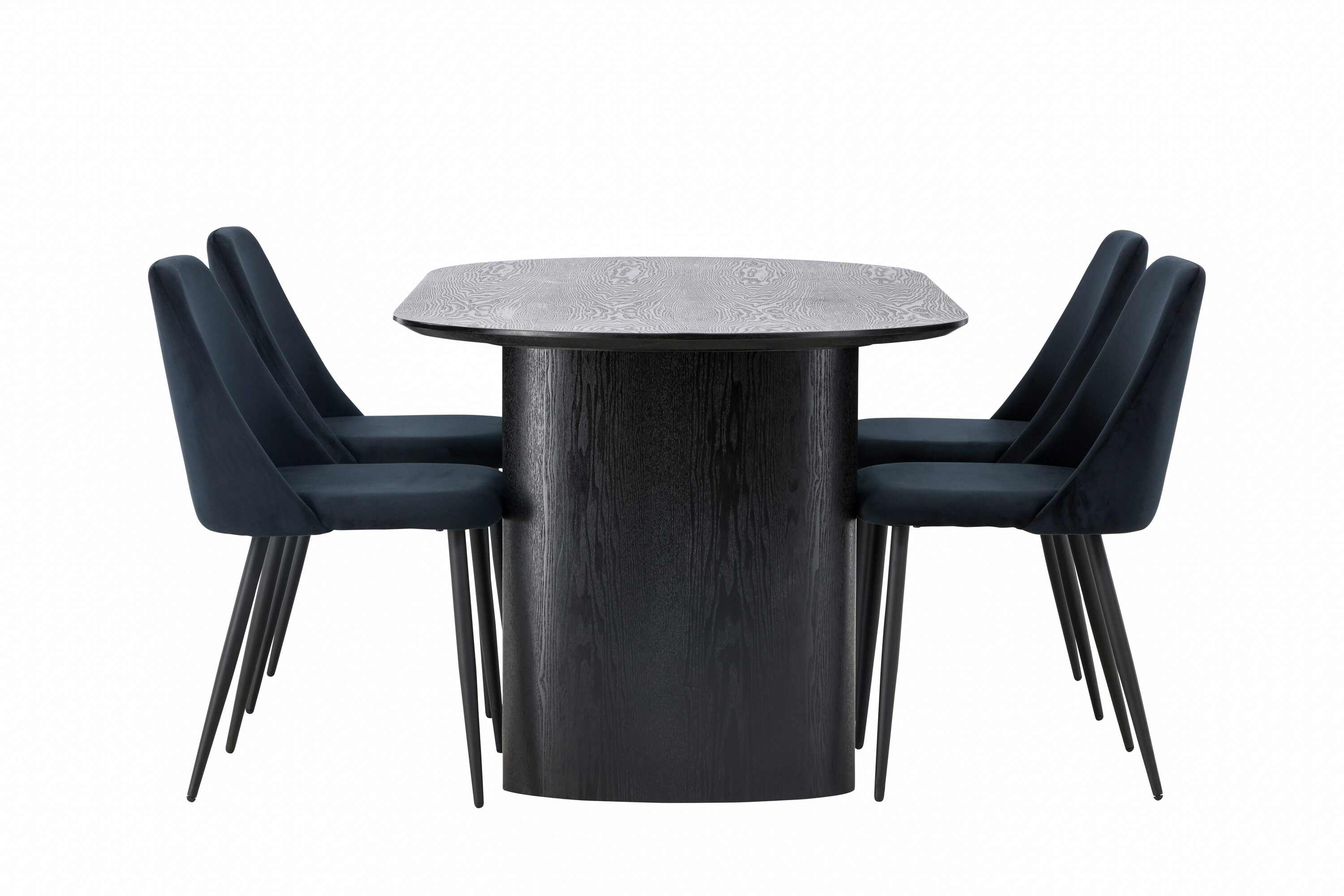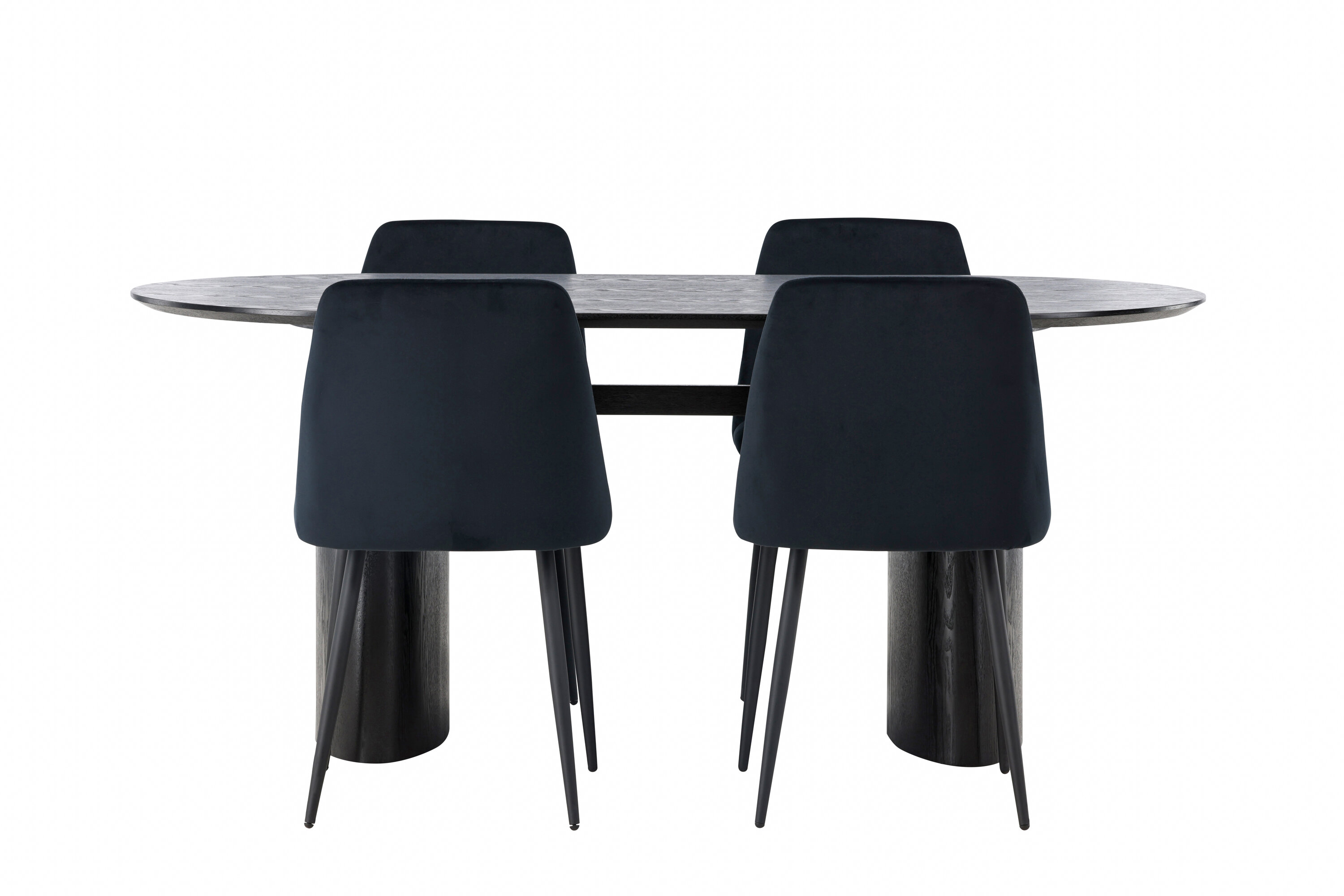 Kaunista elutuba luksuslikult ja mugavalt! Musta värvi ovaalne söögilaud Isolde on moodsa disainiga ovaalse MDF-plaadist lauaplaadi ja tugeva raamiga, mis jätab ühtlase mulje. Elav materjal annab pilgupüüdjale armsa liikumise. Siin täiuslik kombinatsioon mustade söögitoolidega sarjast Night. Toolil on täielikult polsterdatud mustast sametkangast iste ja sobivas mustas toonis jalad. Lihtsalt, uskumatu kombinatsioon! Laua mõõdud: 180x75cm.