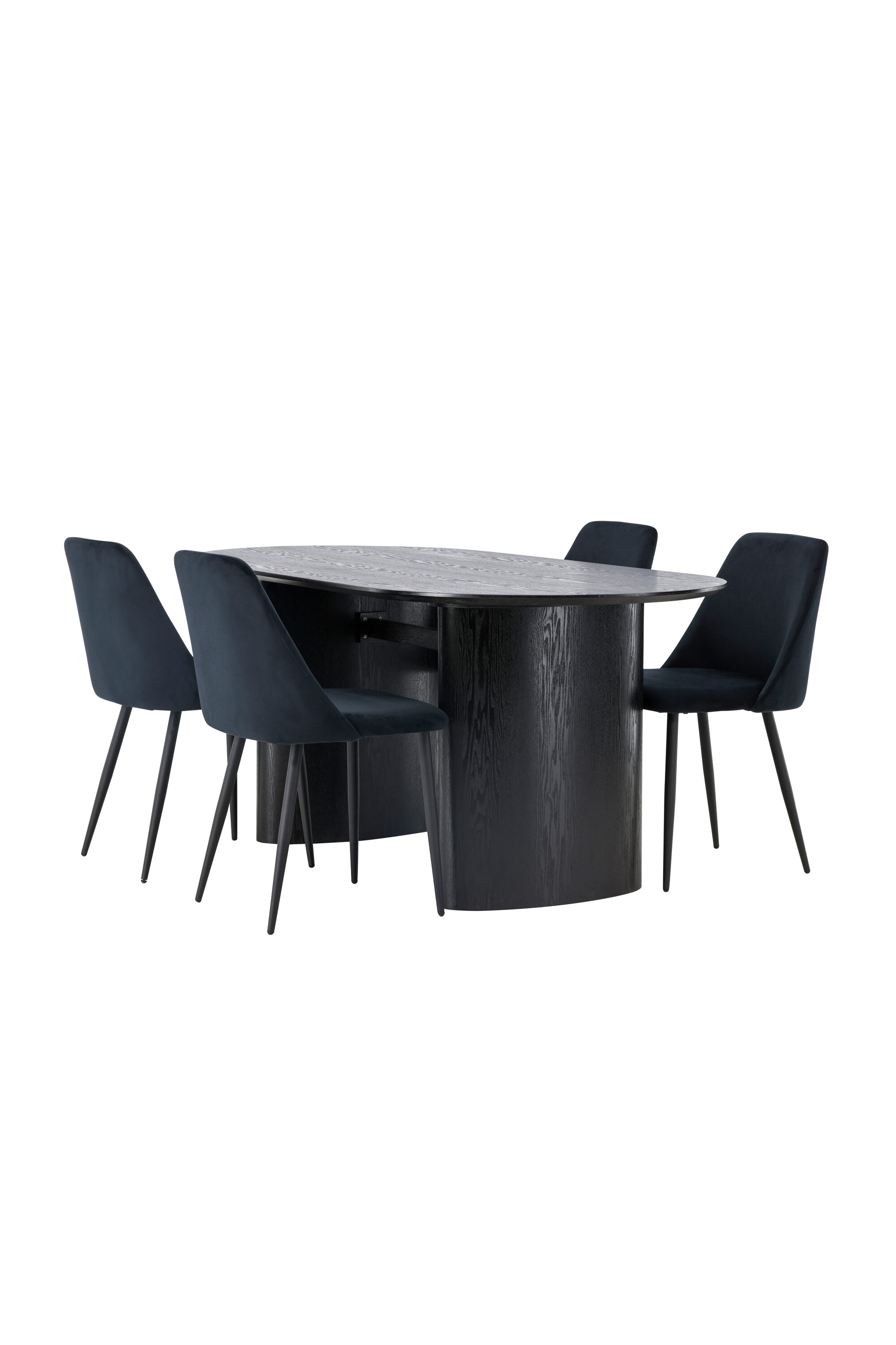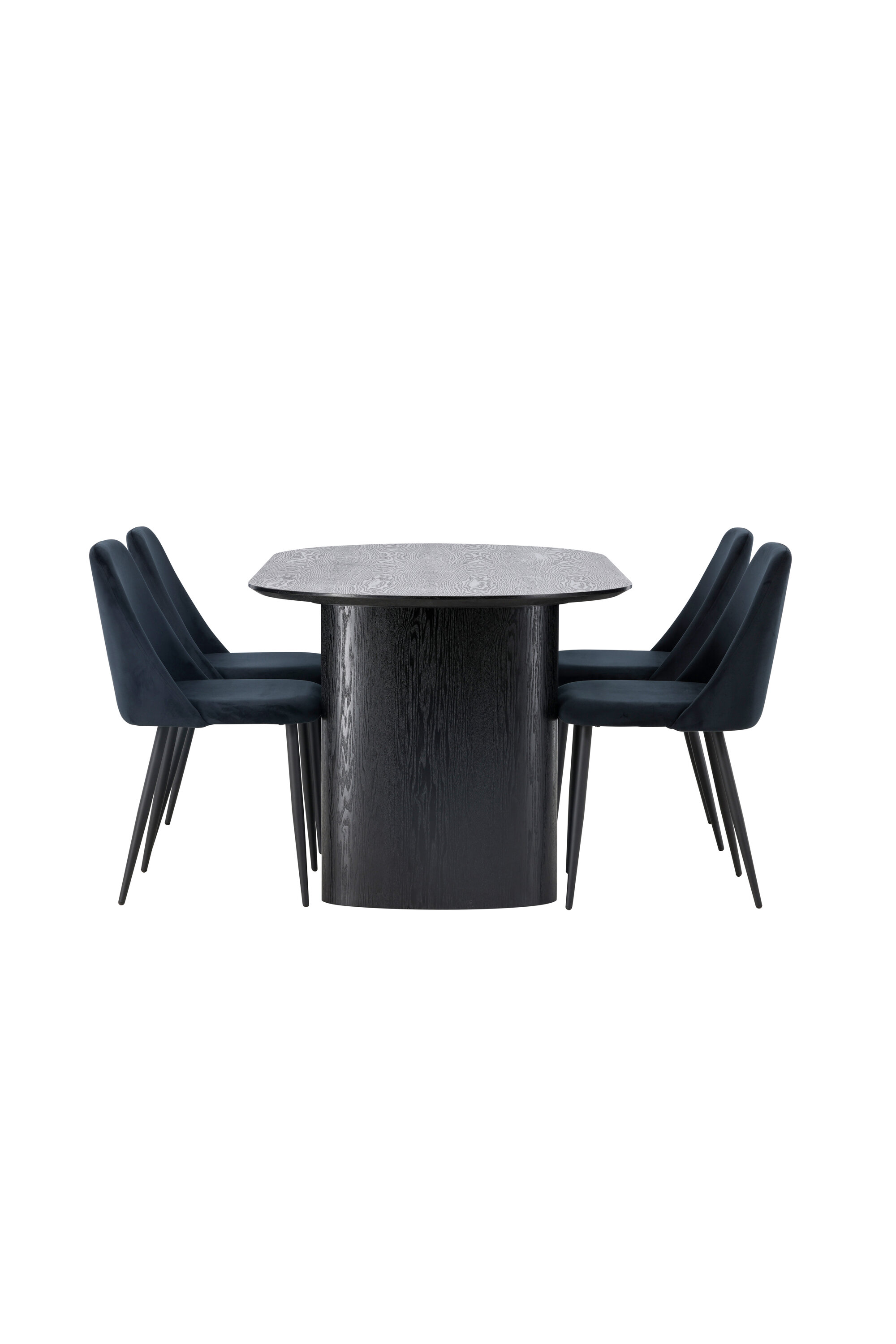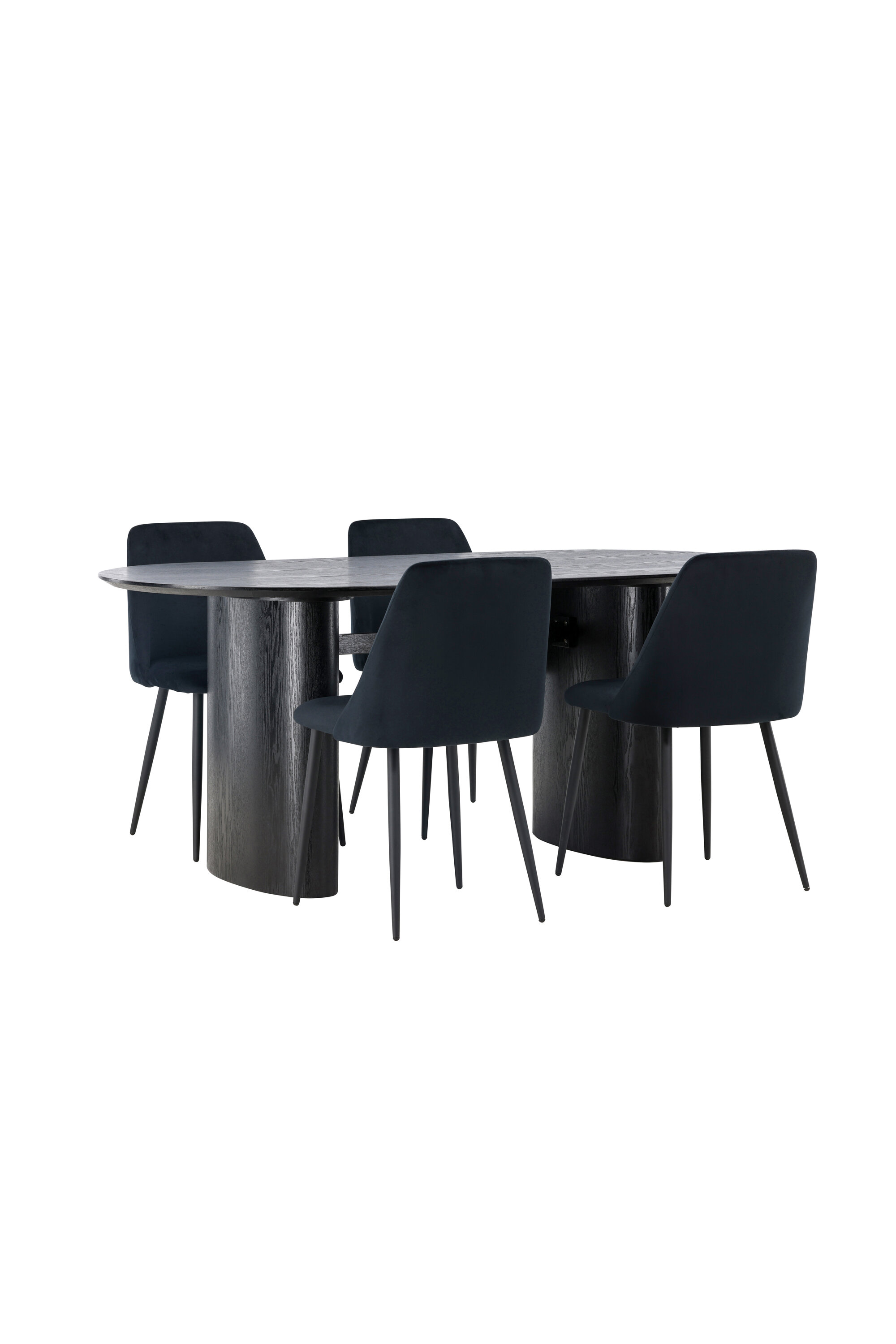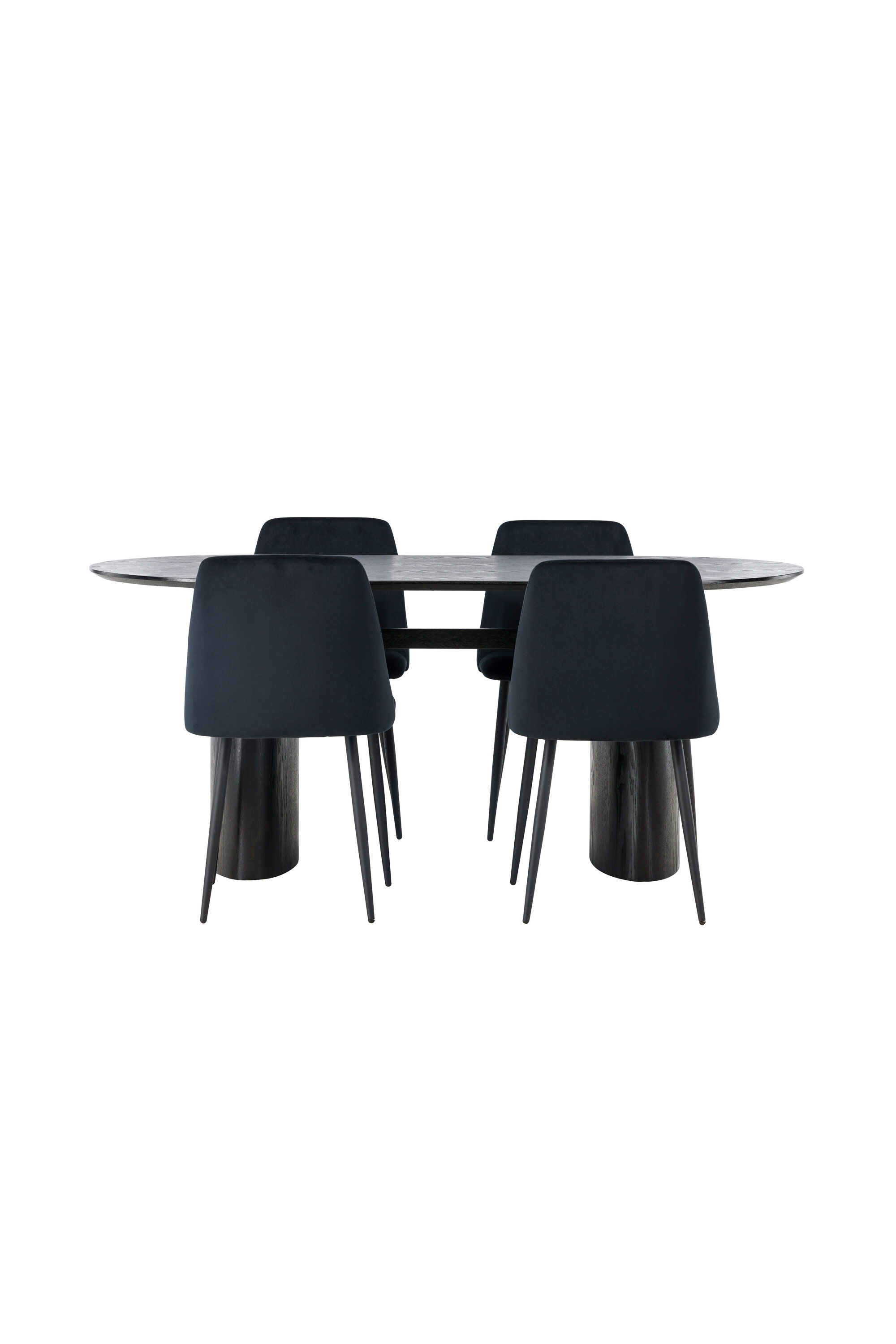 Kaunista elutuba luksuslikult ja mugavalt! Musta värvi ovaalne söögilaud Isolde on moodsa disainiga ovaalse MDF-plaadist lauaplaadi ja tugeva raamiga, mis jätab ühtlase mulje. Elav materjal annab pilgupüüdjale armsa liikumise. Siin täiuslik kombinatsioon mustade söögitoolidega sarjast Night. Toolil on täielikult polsterdatud mustast sametkangast iste ja sobivas mustas toonis jalad. Lihtsalt, uskumatu kombinatsioon! Laua mõõdud: 180x75cm.