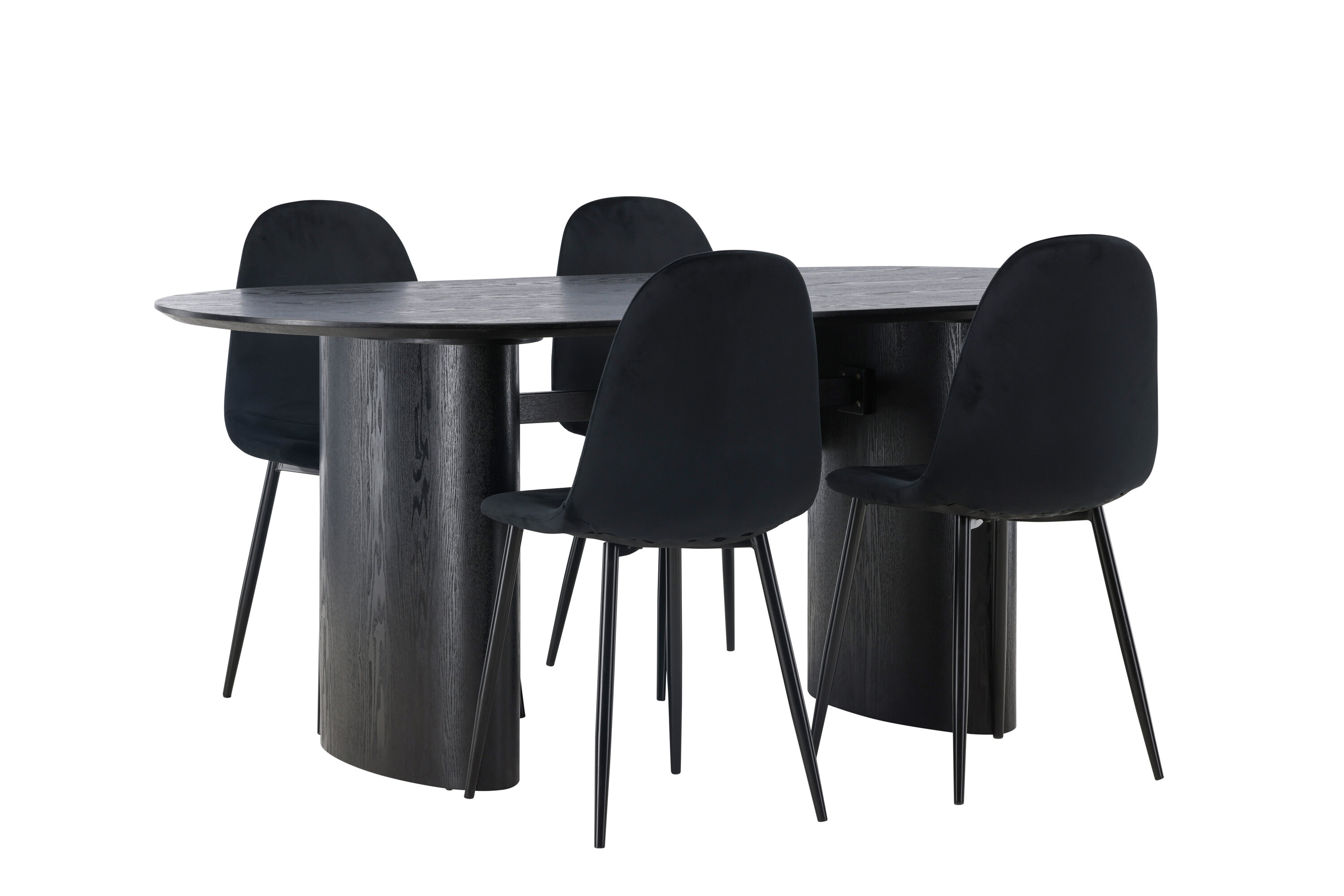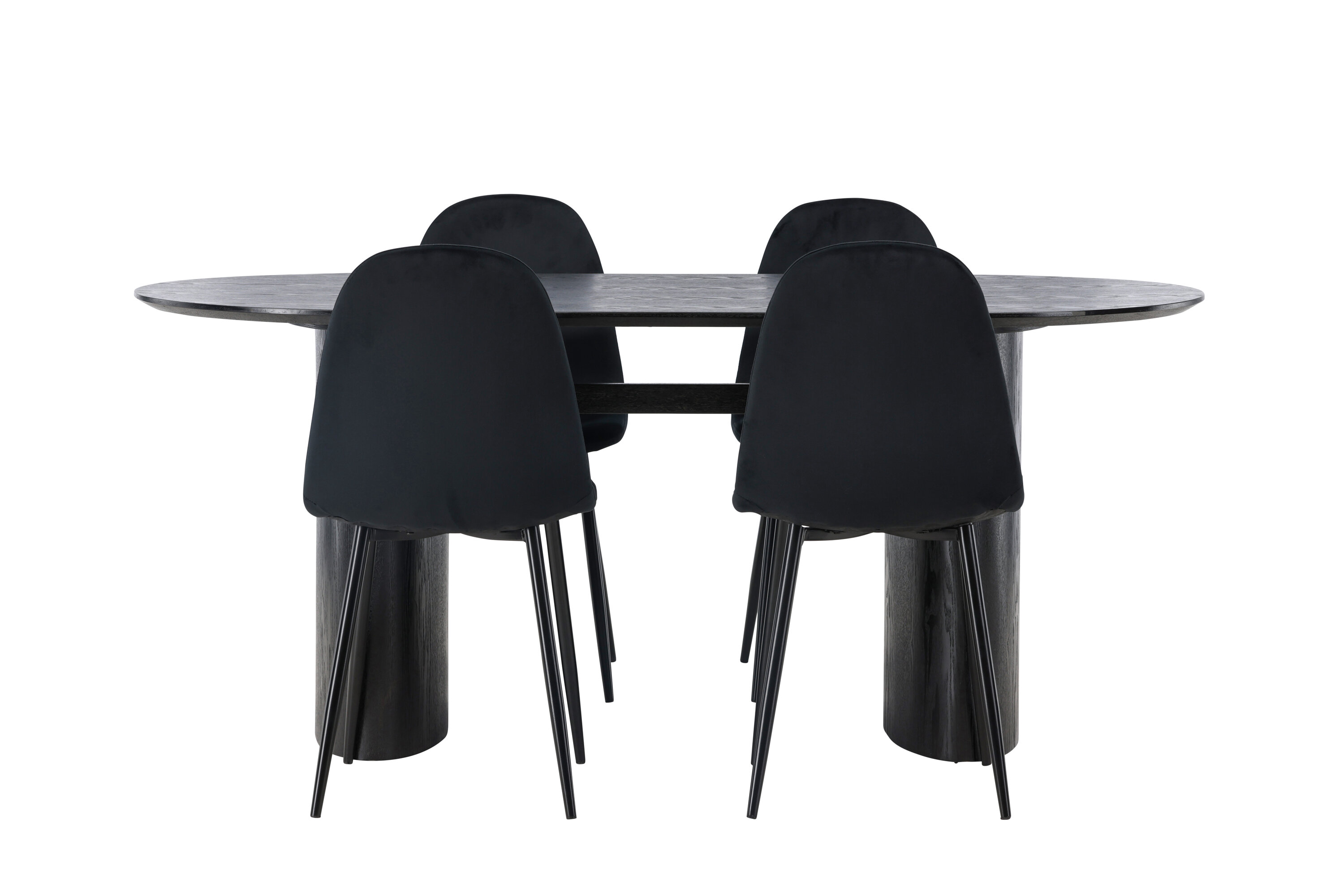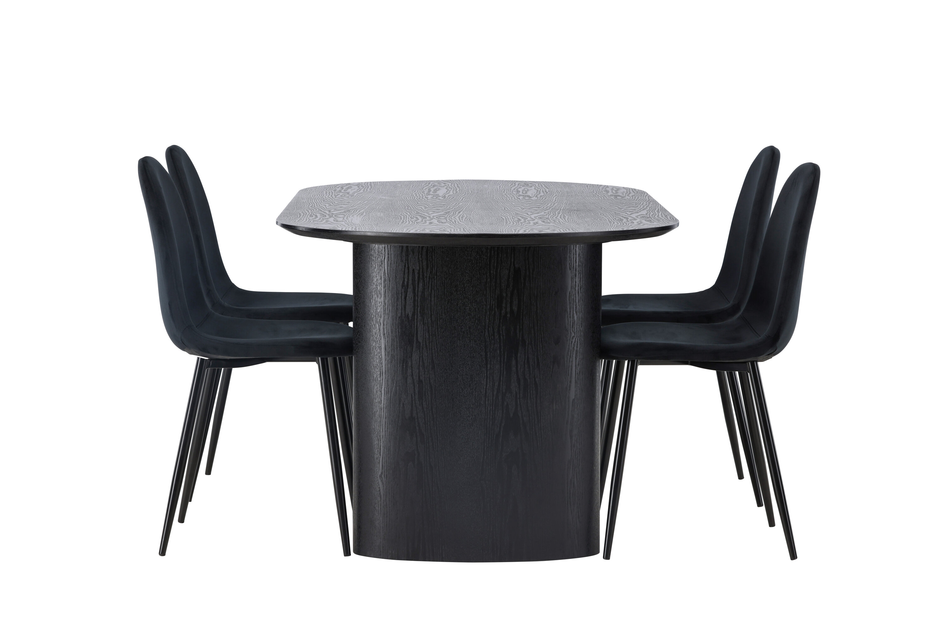 Trendikas musta värvi söögigrupp! Musta värvi ovaalne söögilaud Isolde on moodsa disainiga ovaalse MDF-plaadist lauaplaadi ja tugeva raamiga, mis jätab ühtlase mulje. Elav materjal annab pilgupüüdjale maitseka liikumise. Siin stiilne kombinatsioon Polari sarja mustade söögitoolidega. Toolil on täielikult polsterdatud disain, jalad on mustast pulbervärvitud metallist ning ümar seljatugi ja iste on mustast sametkangast pehme polstriga. See söögigrupp tundub nii isiklik kui ka kutsuv! Laua mõõdud: 180x75cm.