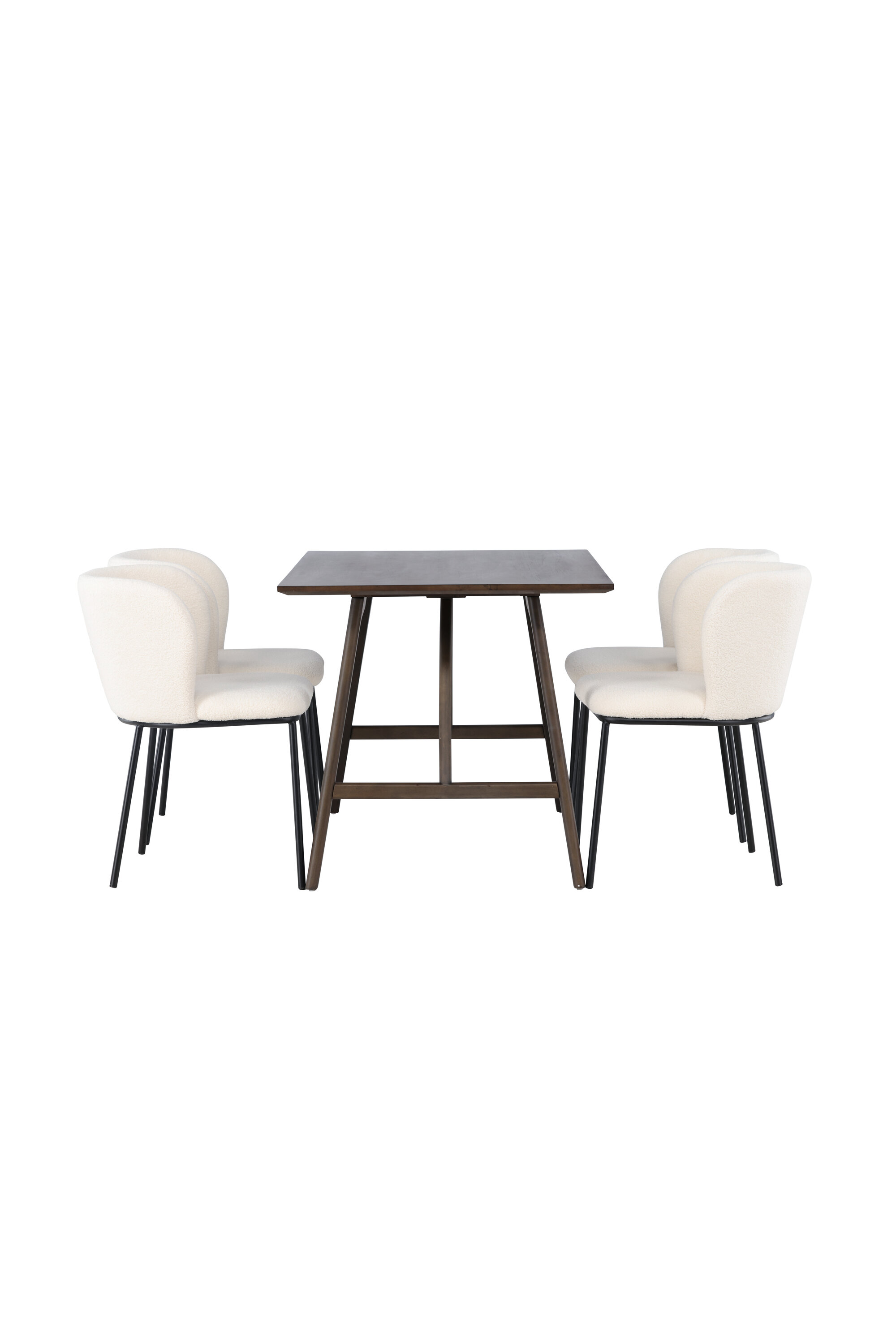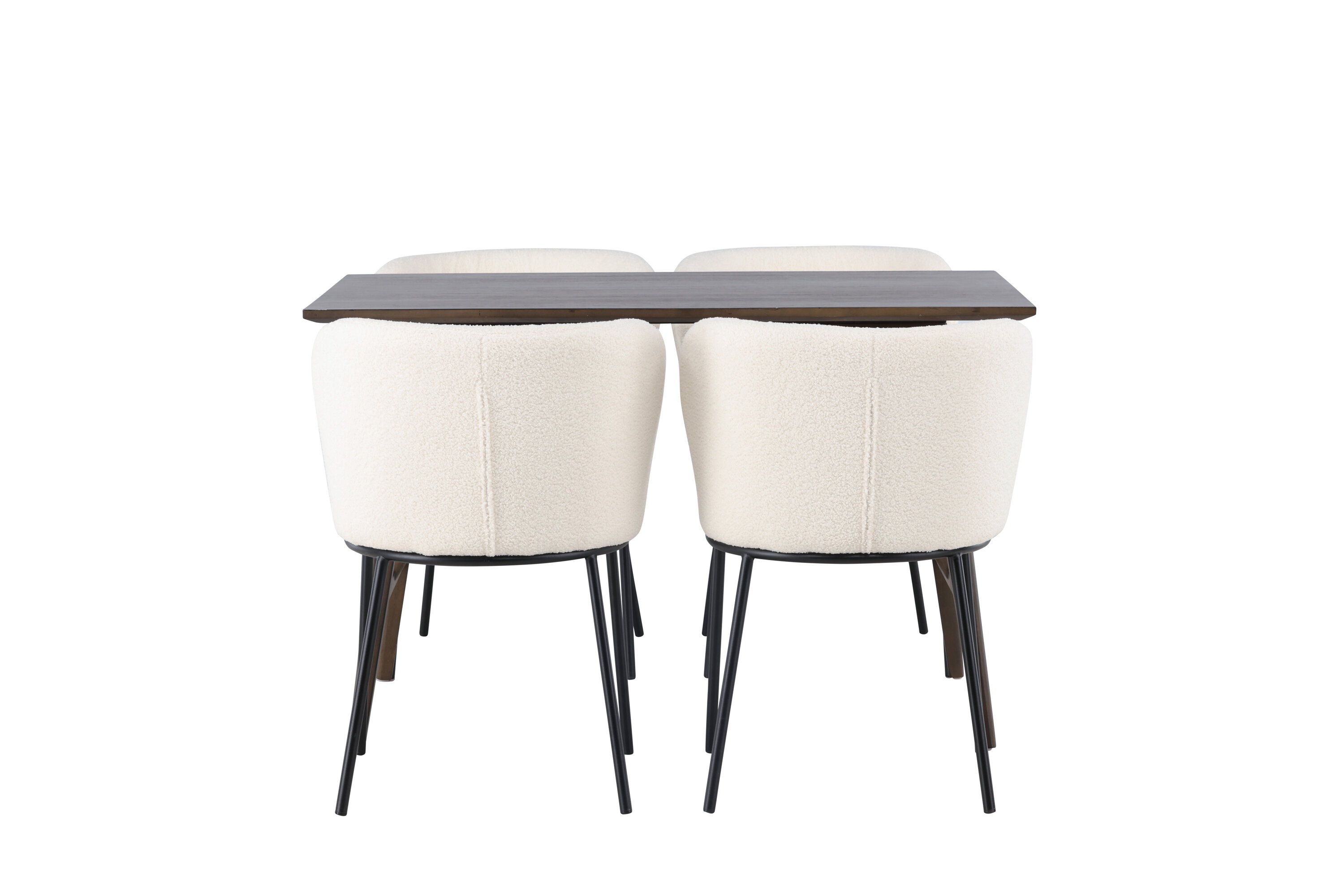 Siin koos meie valgete Edina sarja söögitoolidega. Tool on unistus oma painduva, täielikult polsterdatud valgest boucle kangast istme ja minimalistlike mustade metalljalgadega. Selle elegantne disain ja mugav iste tagavad söögitooli, mis peab ajaproovile vastu.