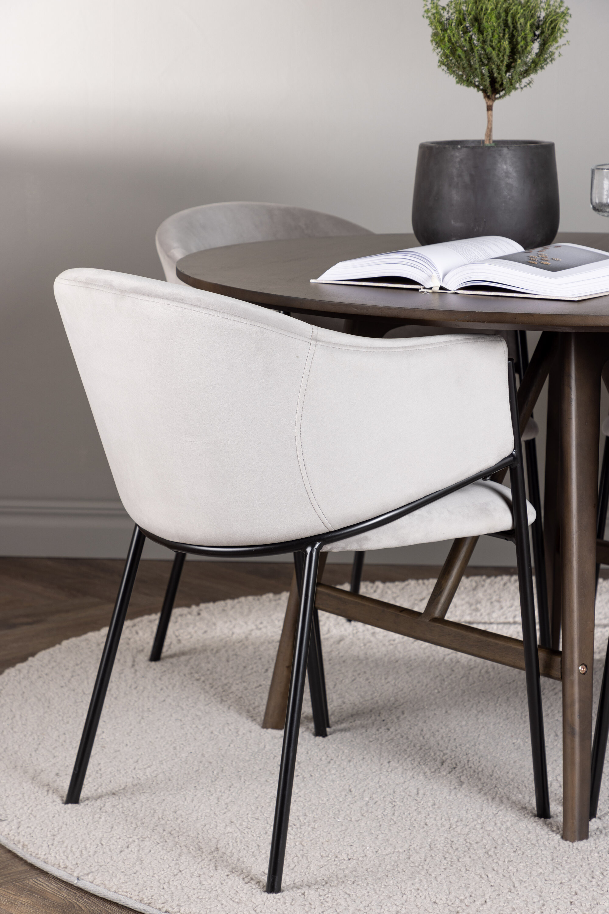 Et tumepruuni lauda parimal võimalikul moel täiendada, oleme selle sidunud Evelina sarja söögitoolidega. Sellel toolil on kaasaegne ja elegantne esteetika, mis on ühendatud fantastilise mugavusega. Nautige luksust istuda täielikult polsterdatud istmel, mis on valmistatud helehallist sametkangast ja elegantselt kumera seljatoega. Minimalistlik mustast terasest raam lisab stiilse kontrasti ja annab toolile ainulaadse ilme.
