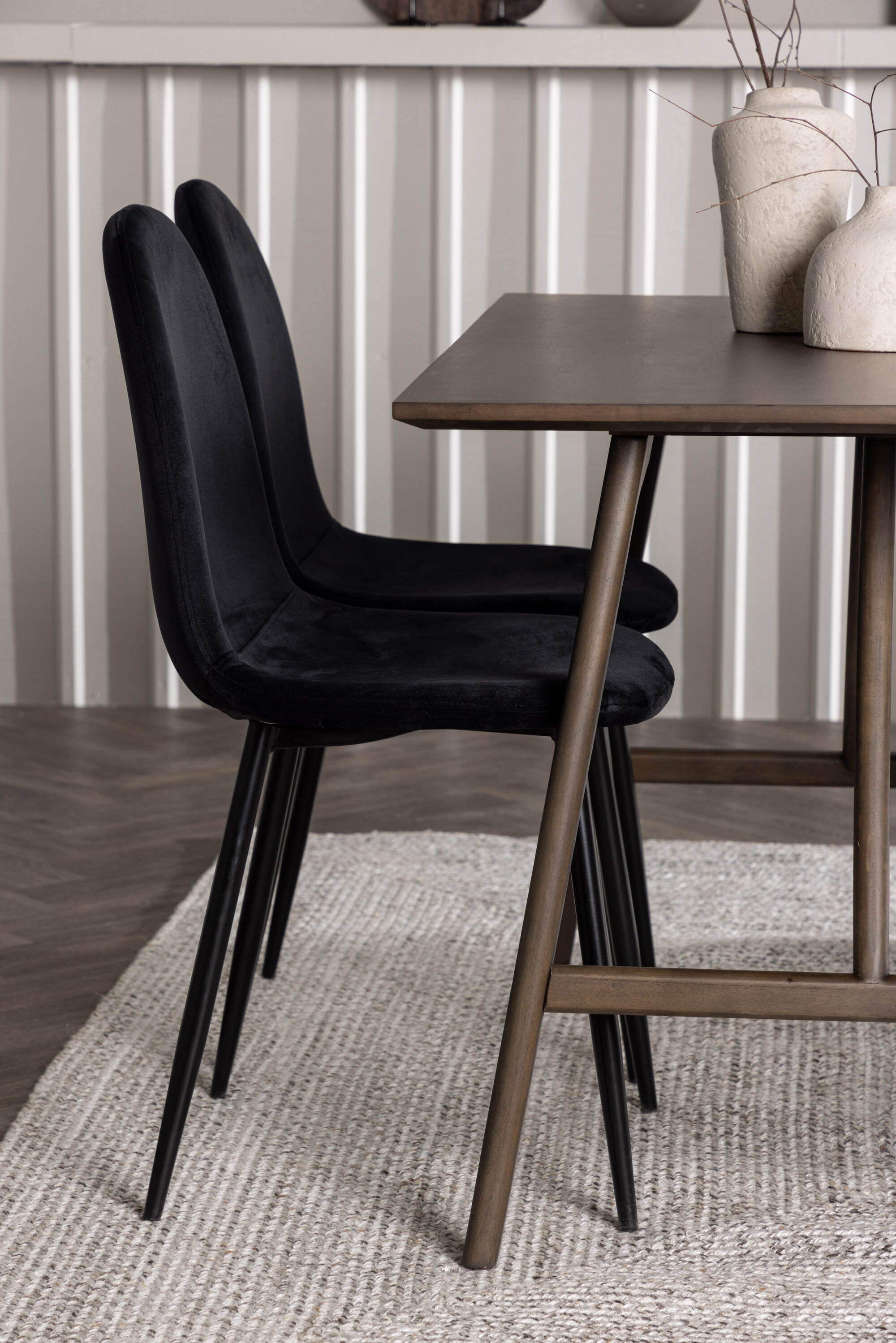 Koos Kaseidoni söögilauaga tulevad kaasa meie mustad söögitoolid Polari sarjast. Täielikult polsterdatud mustast sametkangast istmega toolid pakuvad suurepärast mugavust pikkade söögikordade ja vestluste ajal. Lihtsa, kuid ajatu disainiga toolid sobivad ideaalselt lauaga.
