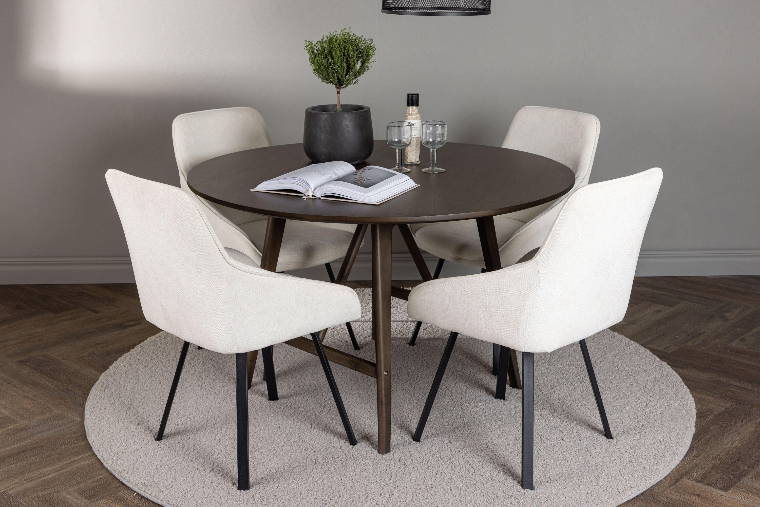 Meie tumepruunist puidust ümmargune söögilaud Kaseidon pakub nii vormi kui ka funktsiooni. Ümmarguse MDF lauaplaadiga saab sellest pere ja sõprade loomulik kogunemiskoht, kus keegi ei satu servale. Selle õrnalt kumerad kummipuidust lauajalad annavad lauale tugeva välimuse, mis peab vastu ajaproovile. Laual on moodne kreeka pähkli värv, mis loob sooja ja kutsuva tunde, luues teie söögitoas harmoonilise atmosfääri. Laua mõõdud: 100 cm.