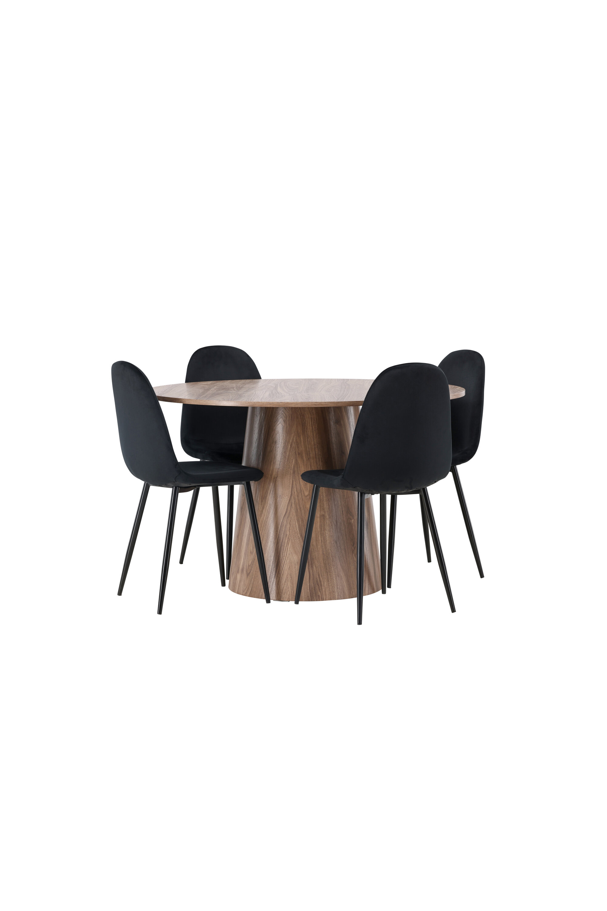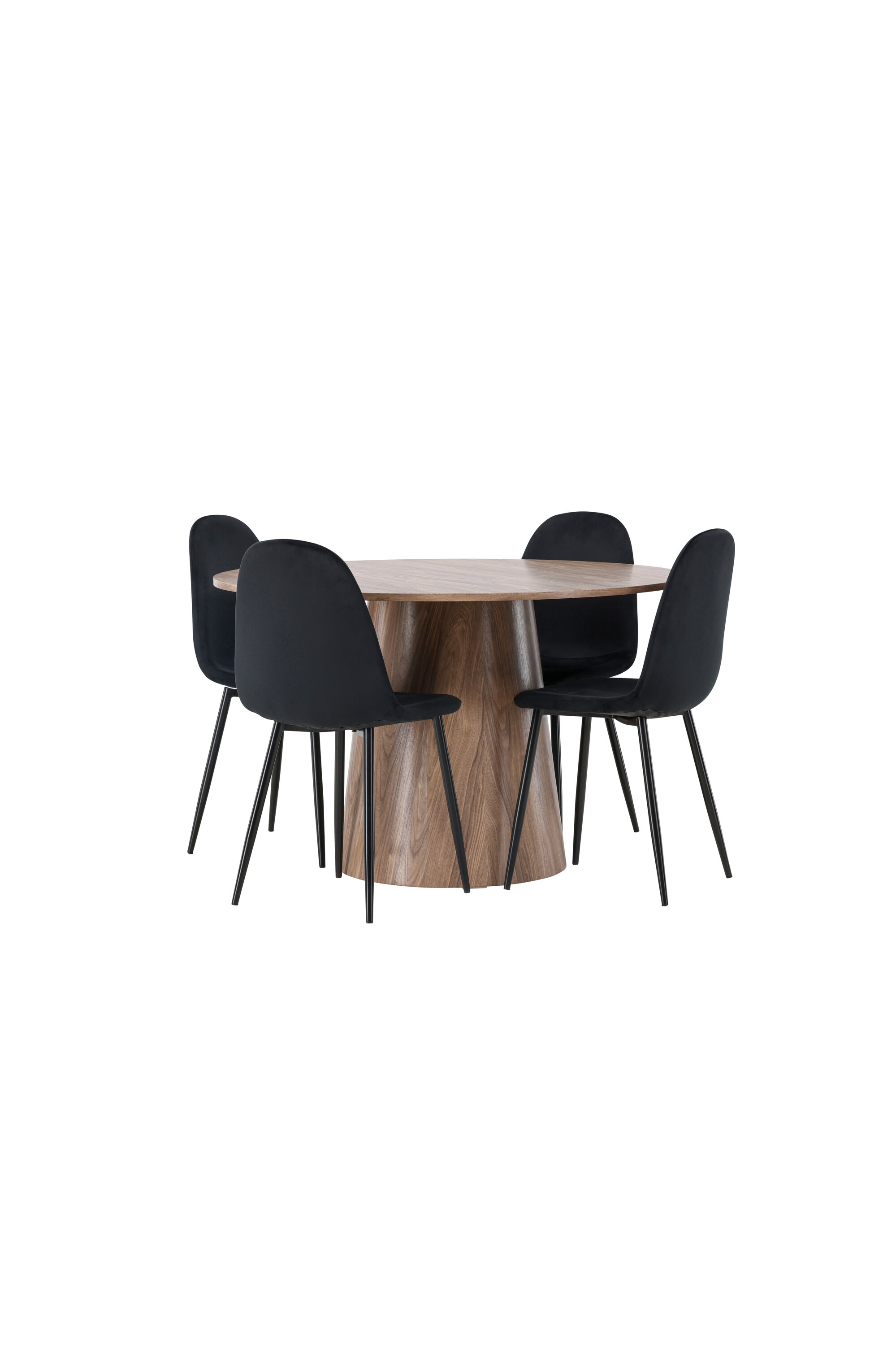 Koos puiduvärvi söögilauaga Leo pakume meie musta värvi söögitoole Polar. Need toolid on hoolikalt disainitud ja pakuvad ideaalset tasakaalu stiili ja mugavuse vahel. Neil on täielikult polsterdatud disain ja iste on valmistatud pehmest mustast sametkangast, pakkudes luksuslikku tunnet. Mustad pulbervärvitud metalljalad lisavad modernset puudutust ja tagavad hea stabiilsuse.