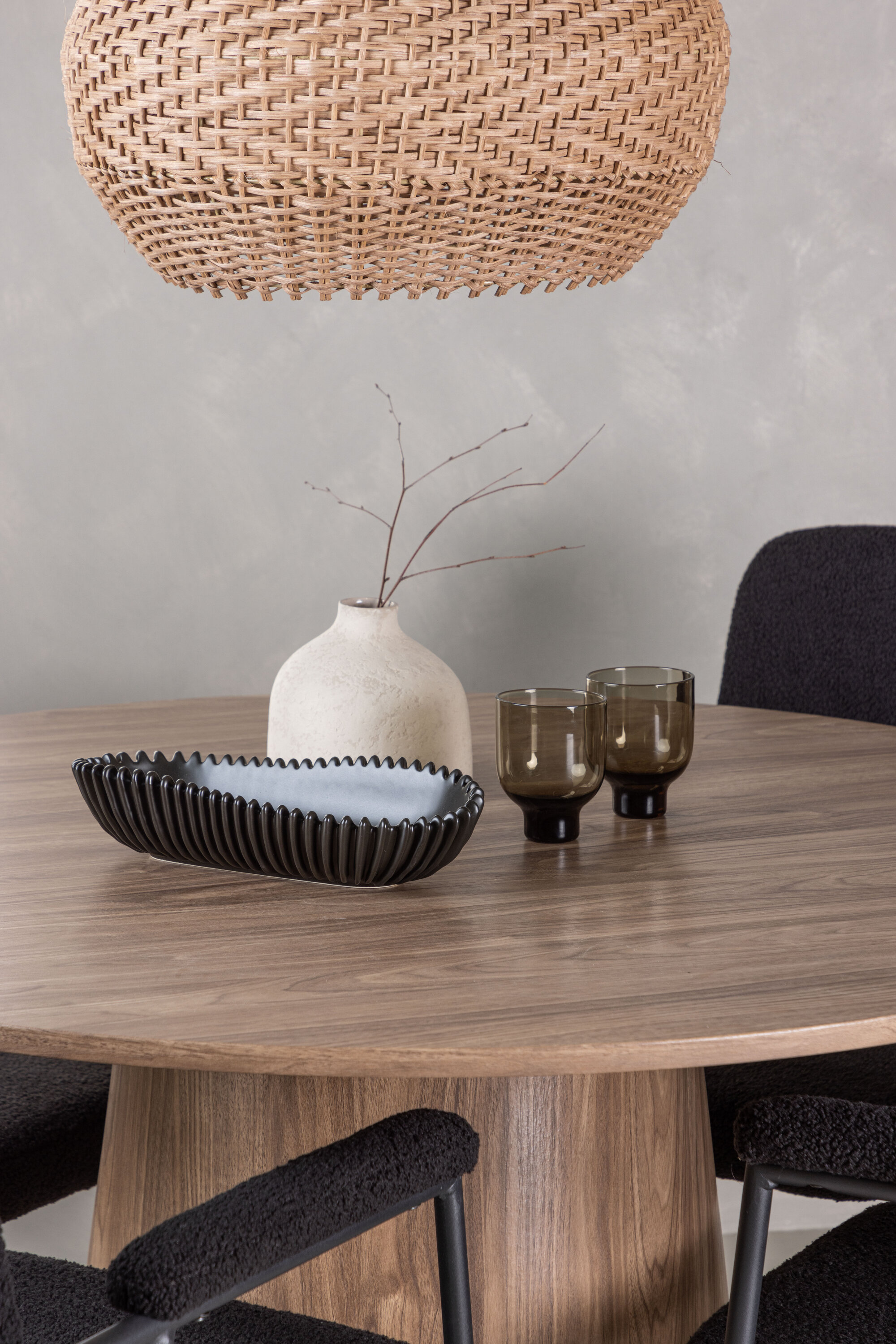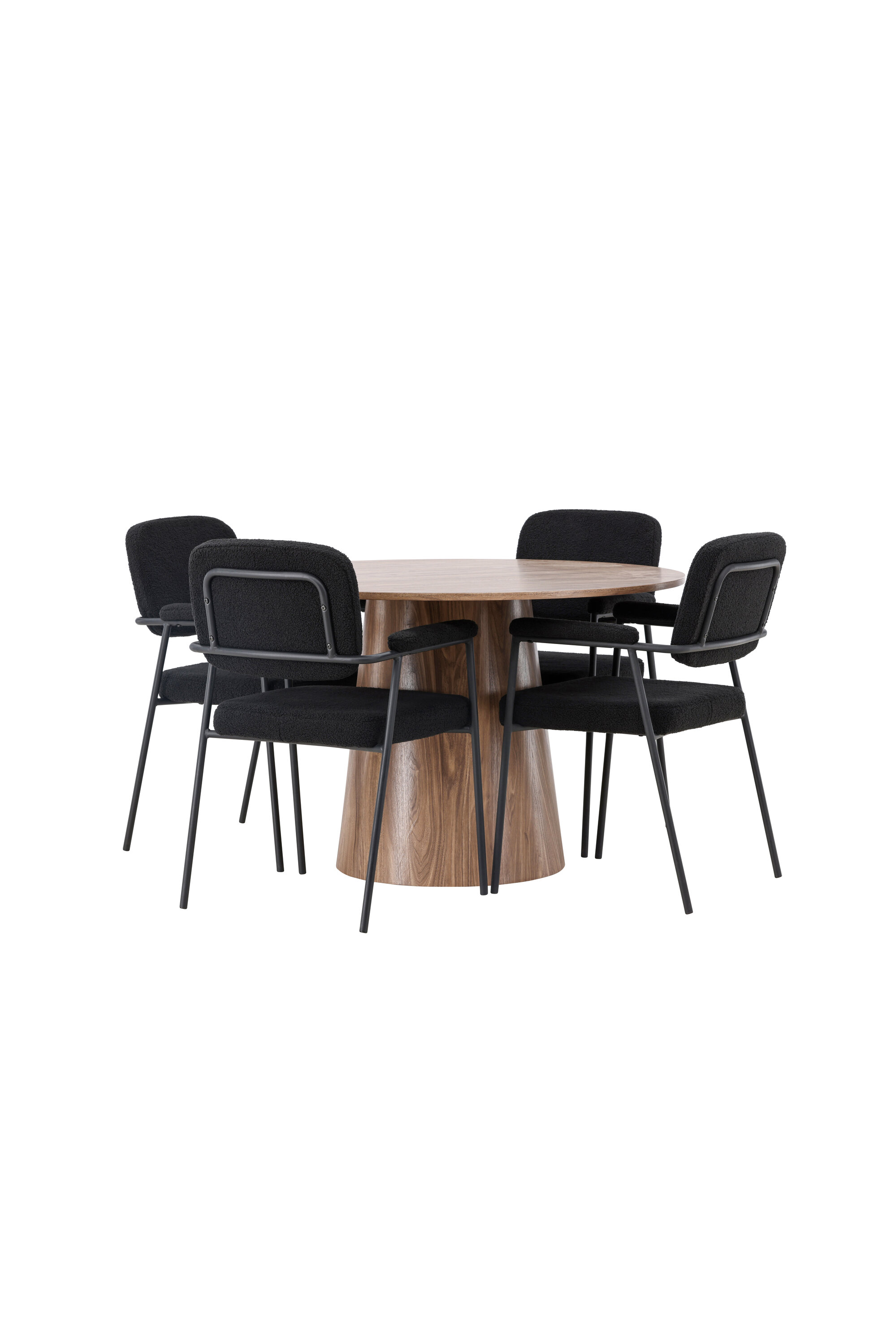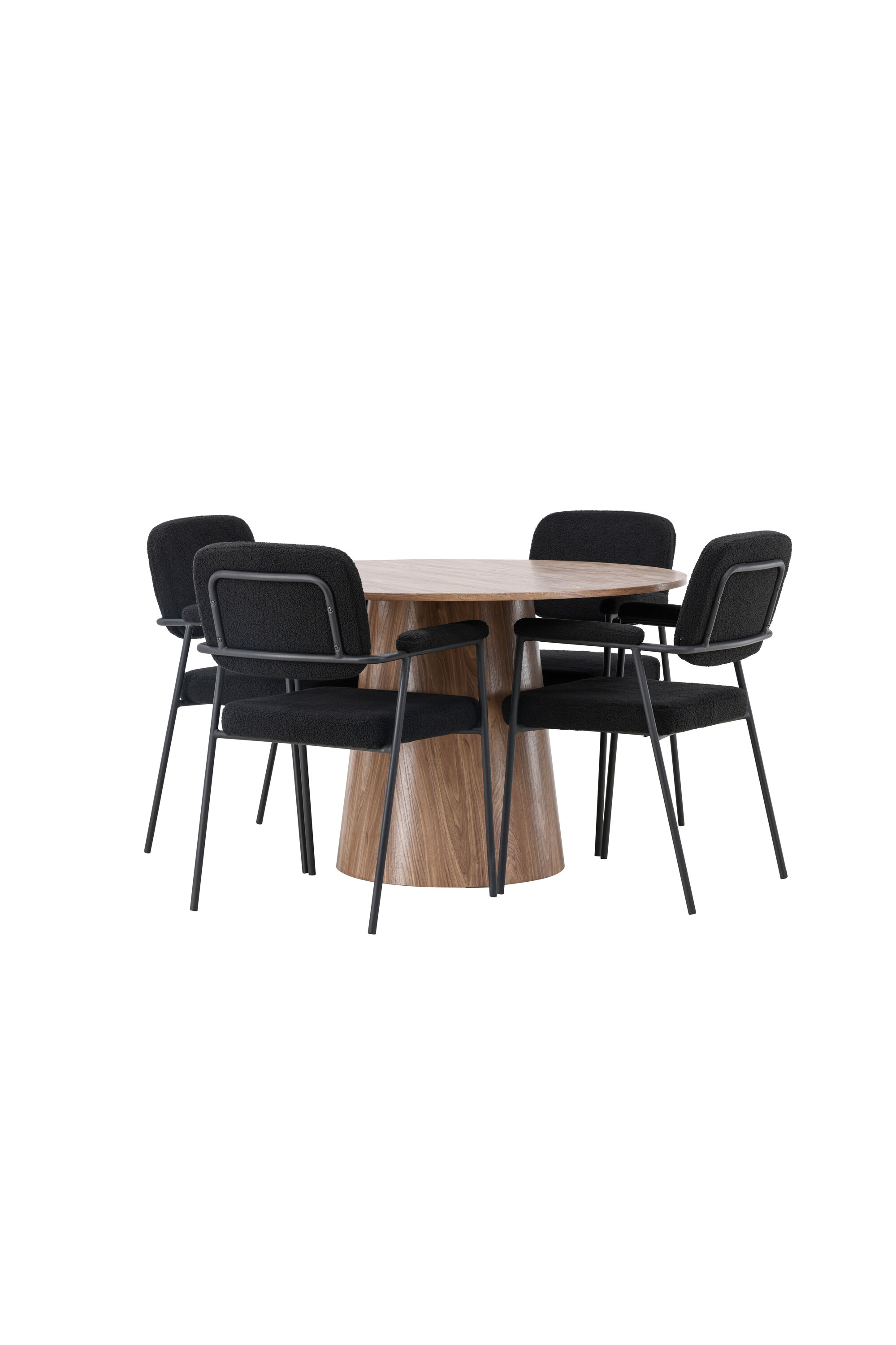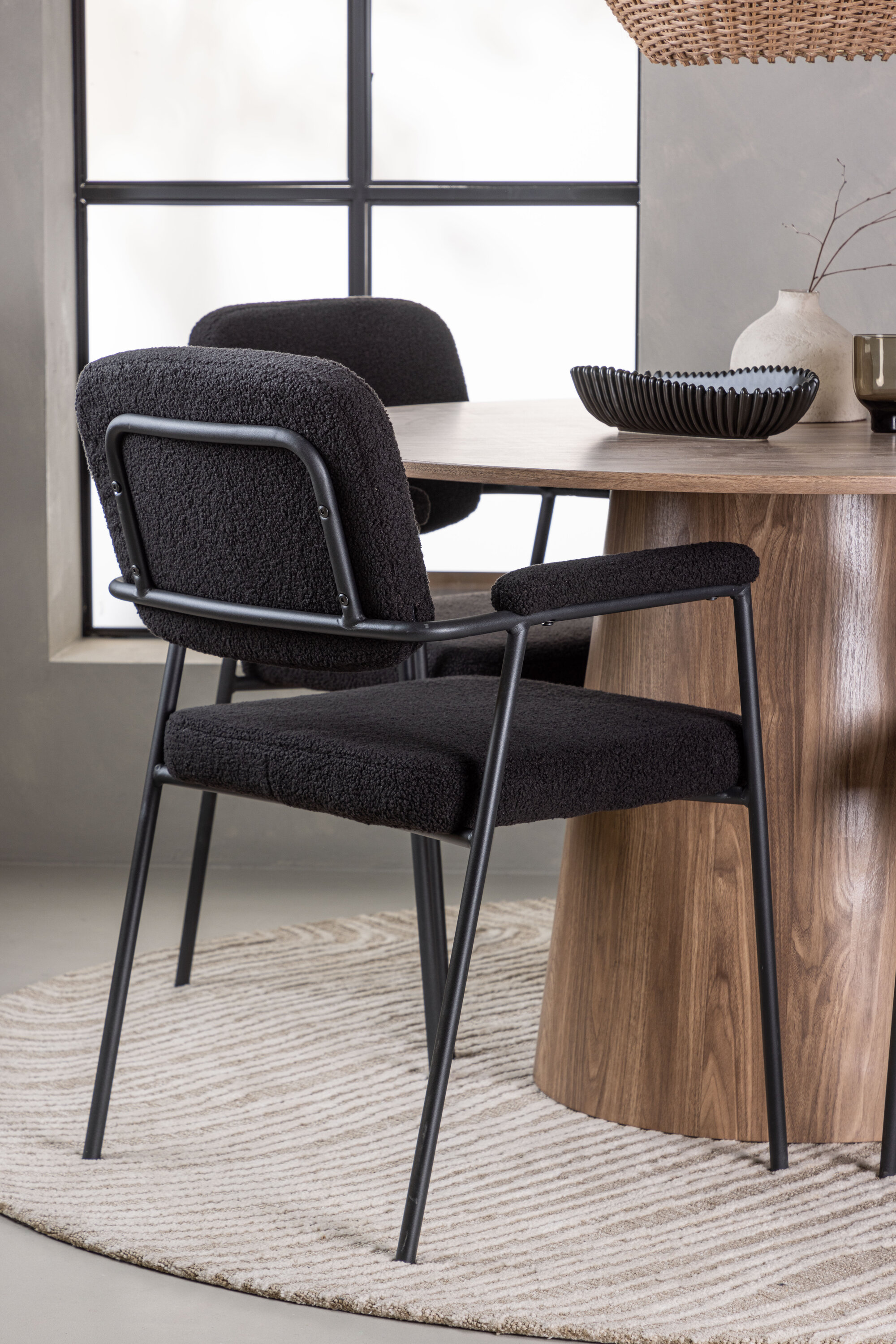 Stiilse söögilaua täiendamiseks kombineerime seda Yesterday sarja mustade söögitoolidega. Need trendikad ja mugavad söögitoolid peavad ajaproovile vastu. Tooli iste on täielikult polsterdatud mustast bouclé-kangast, mis annab elegantse ja luksusliku tunde. Õhukesed mustad metallist jalad ei taga mitte ainult stabiilsust, vaid integreeritud käetoed pakuvad ka täiendavat mugavust ja tuge.