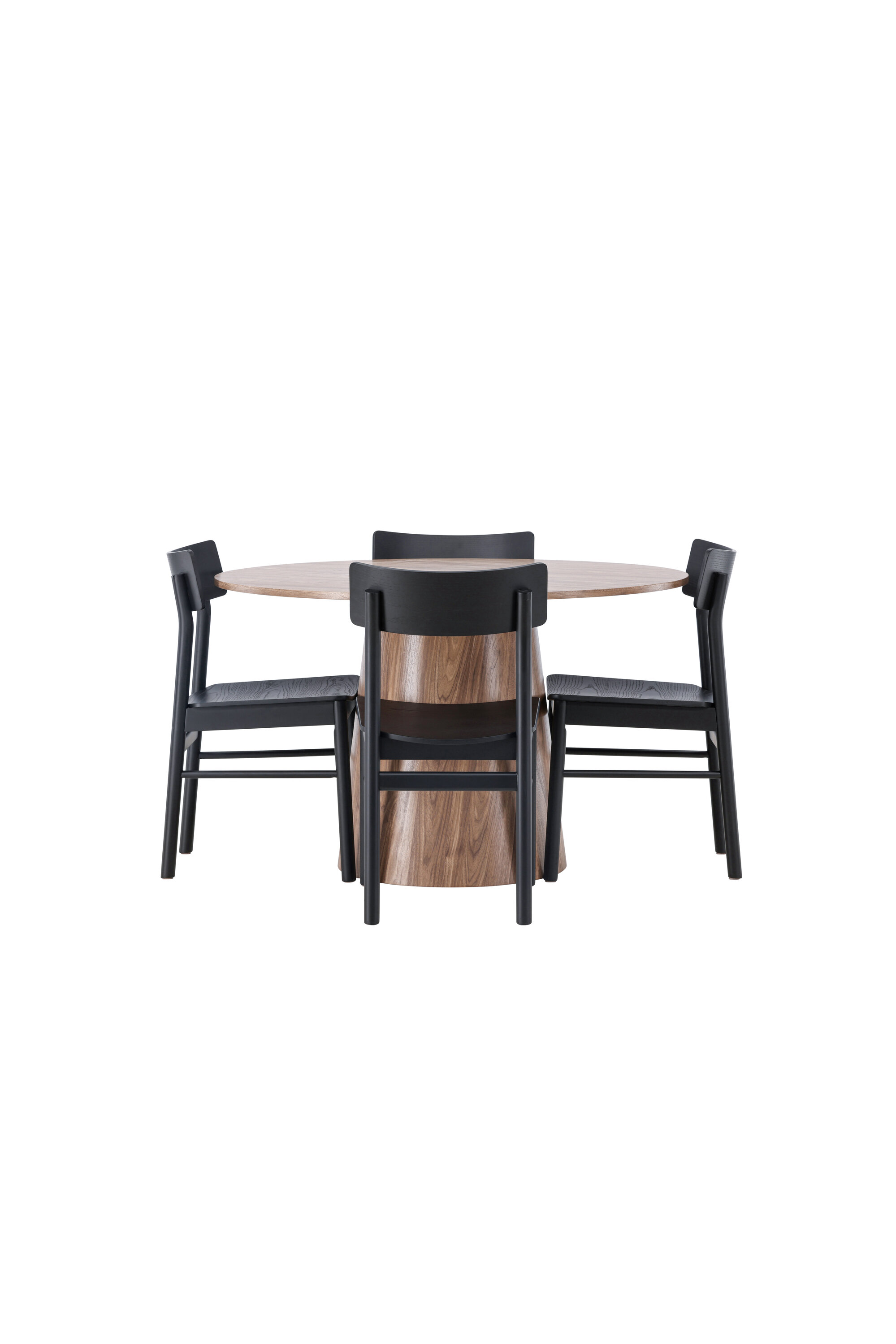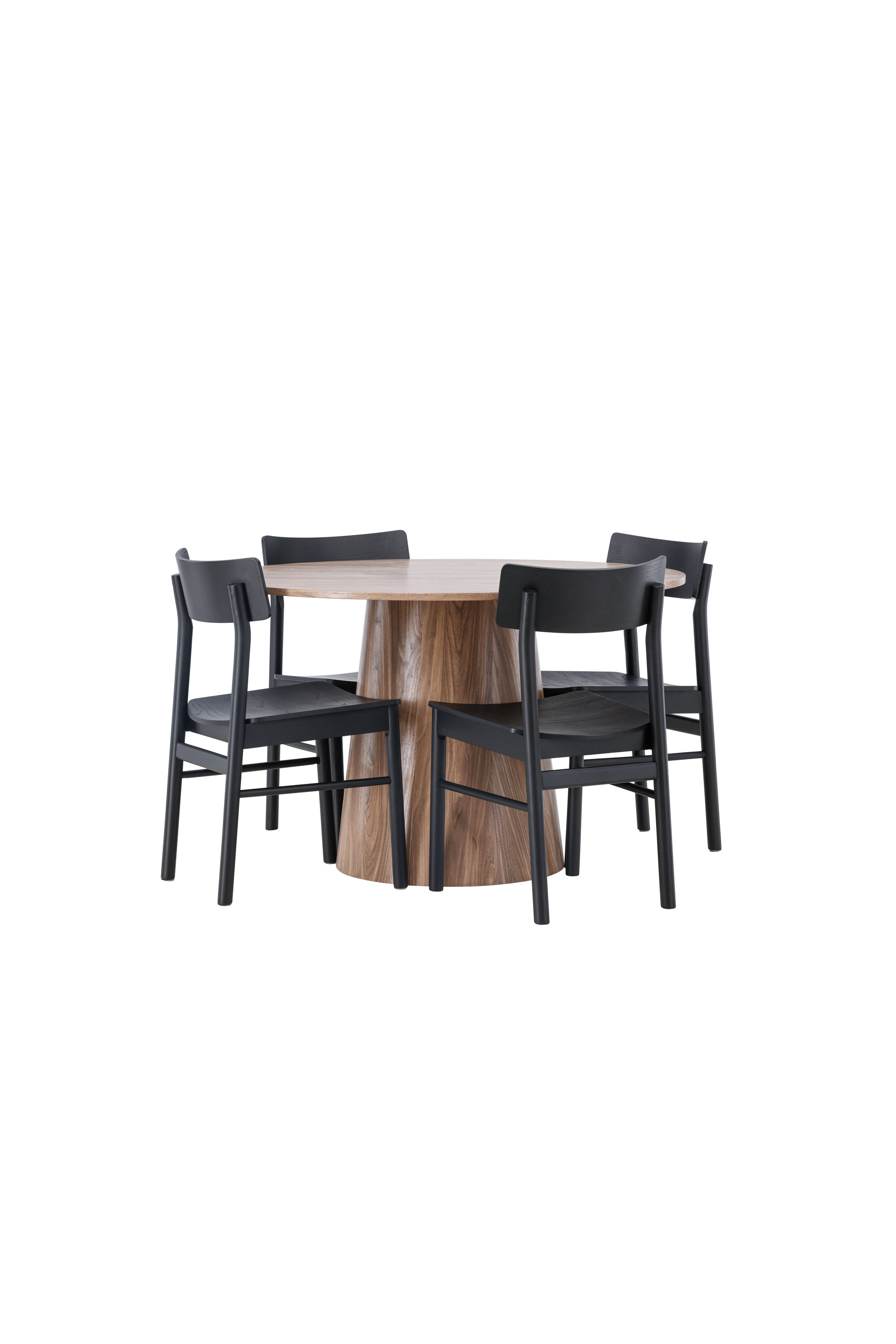 Stiilsed sirged vormid ei lähe kunagi moest välja! Meie imeline ümmargune söögilaud Lanzo on tervikliku MDF-disainiga, õhukese ülaosaga ja keeratud silindrilise raamiga, mis on tsentreeritud laua keskosa alla. Värvus on maalähedane ja teeb materjali mustri nähtavaks. Siin maitsekas kombinatsioonis Montros seeria moodsate söögitoolidega. Toolil on klassikaline ja nostalgiline sirgete põhjamaiste vormidega disain, mis on läbivalt mustast kummipuidust. Armas matš! Laua läbimõõt: 120 cm.