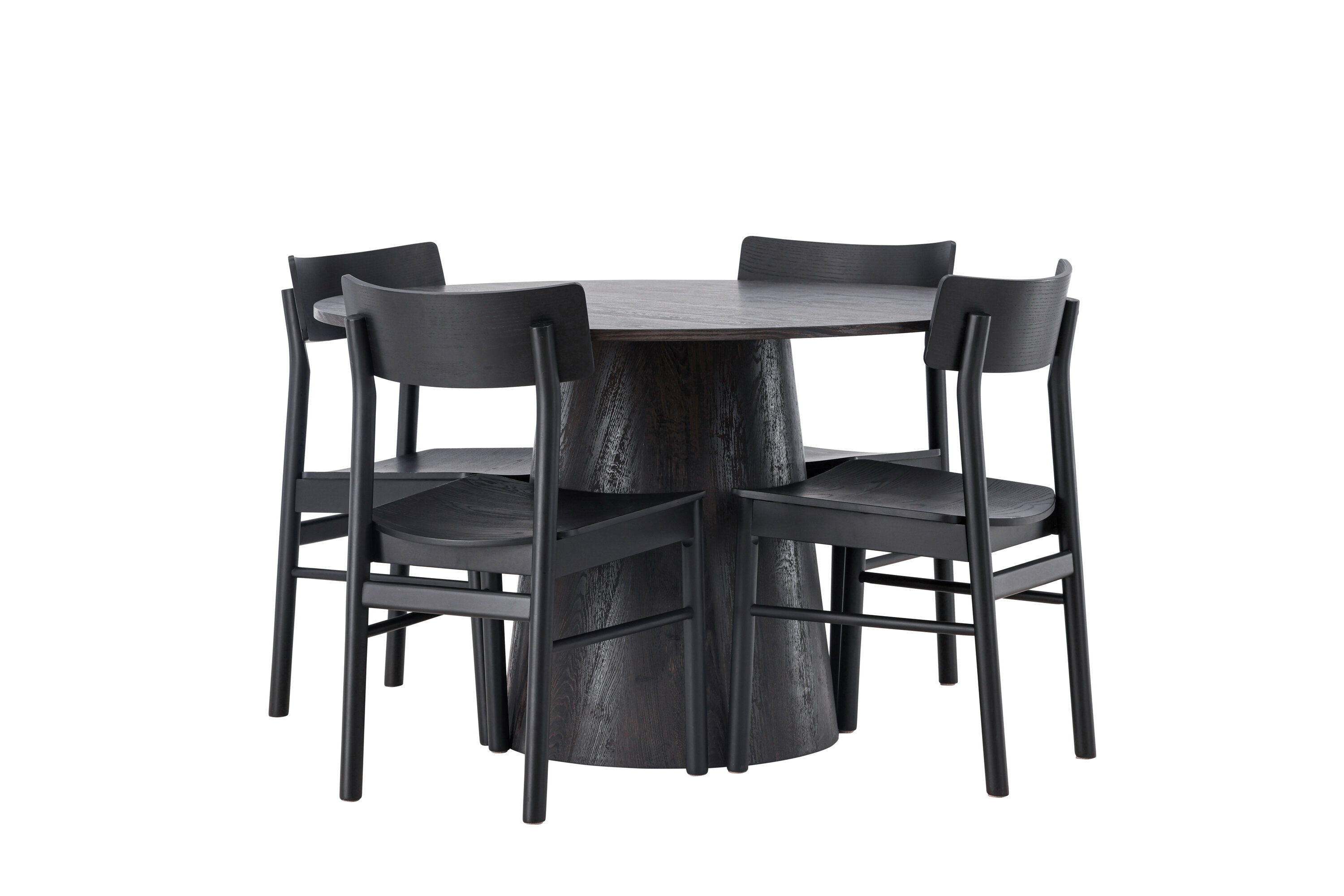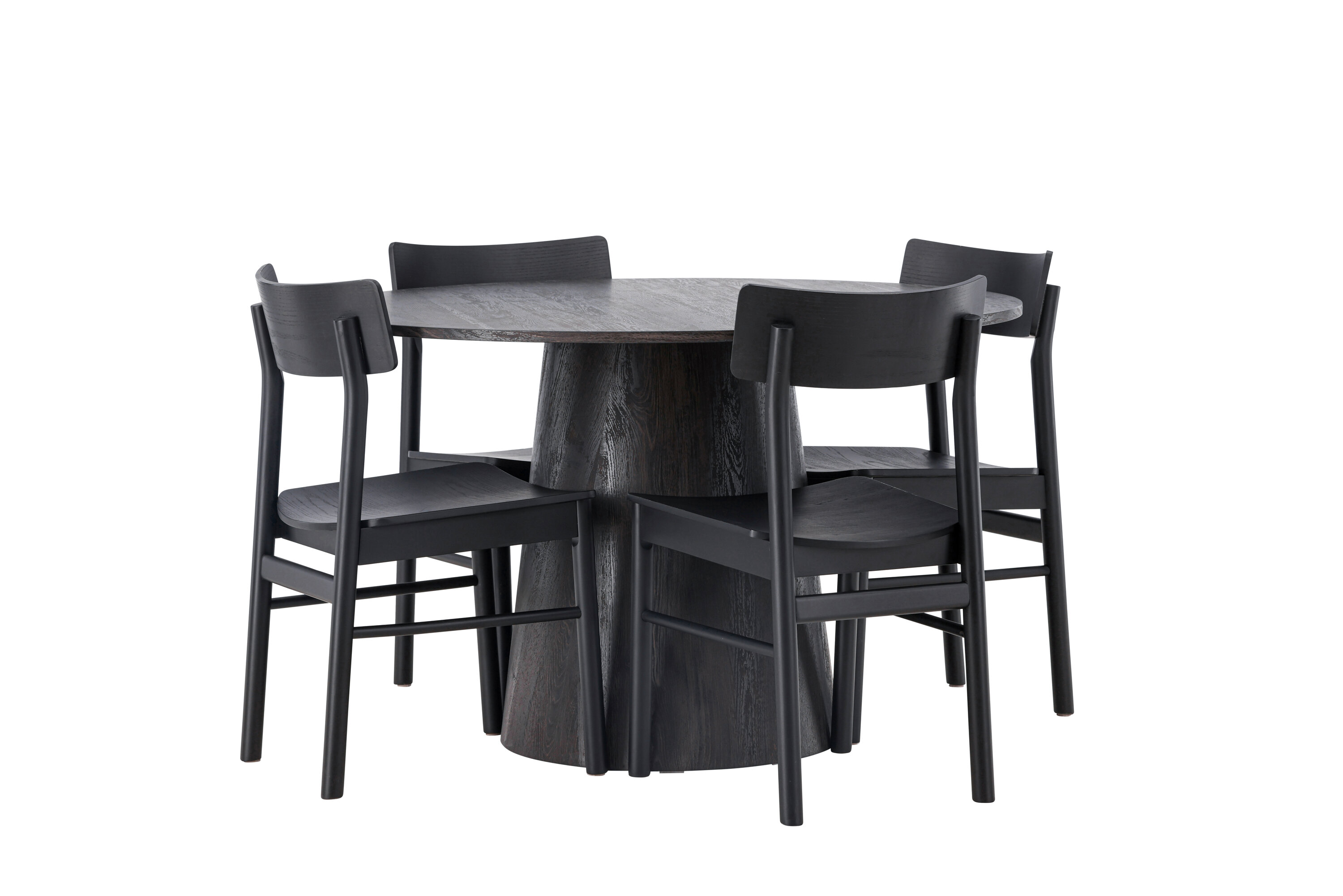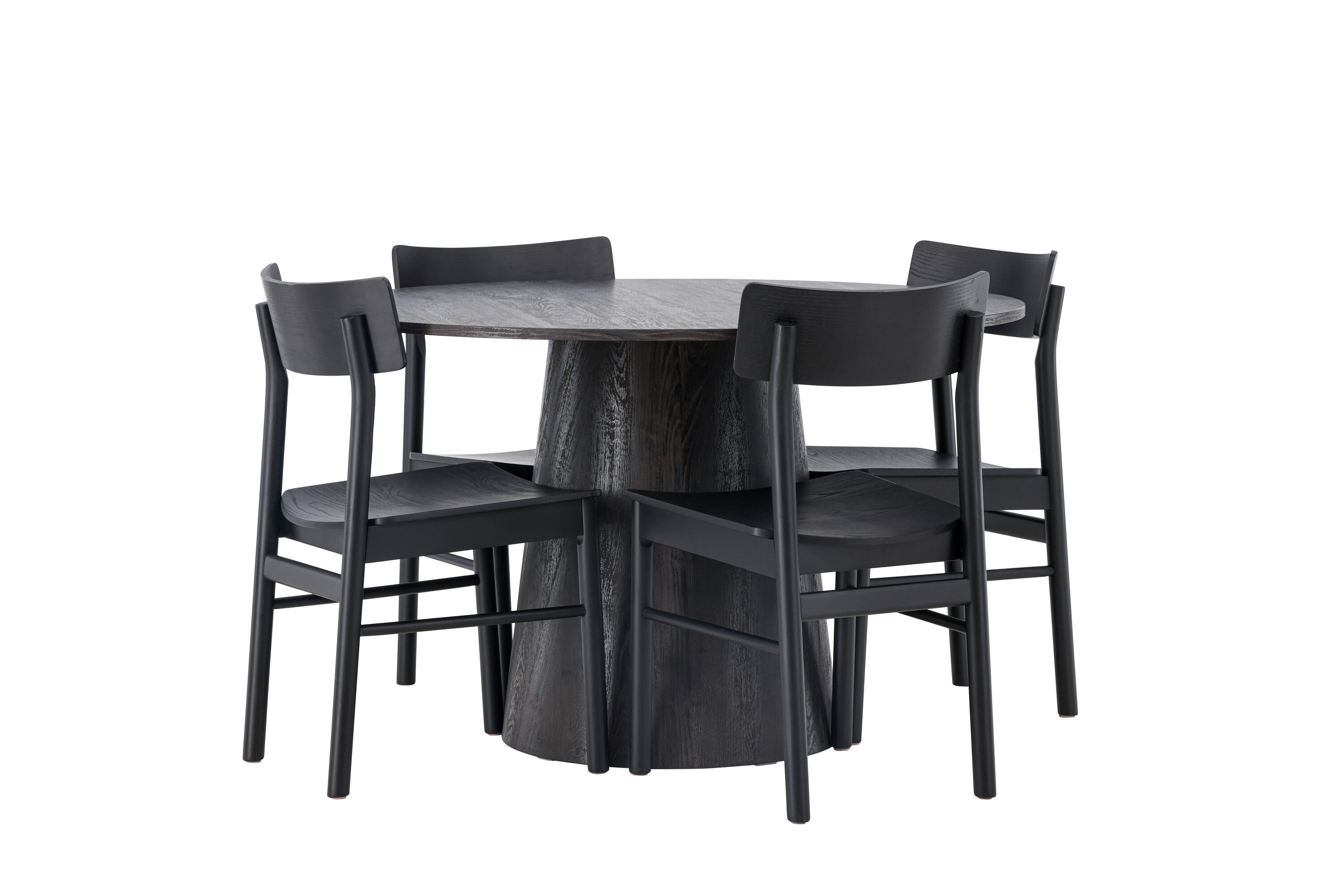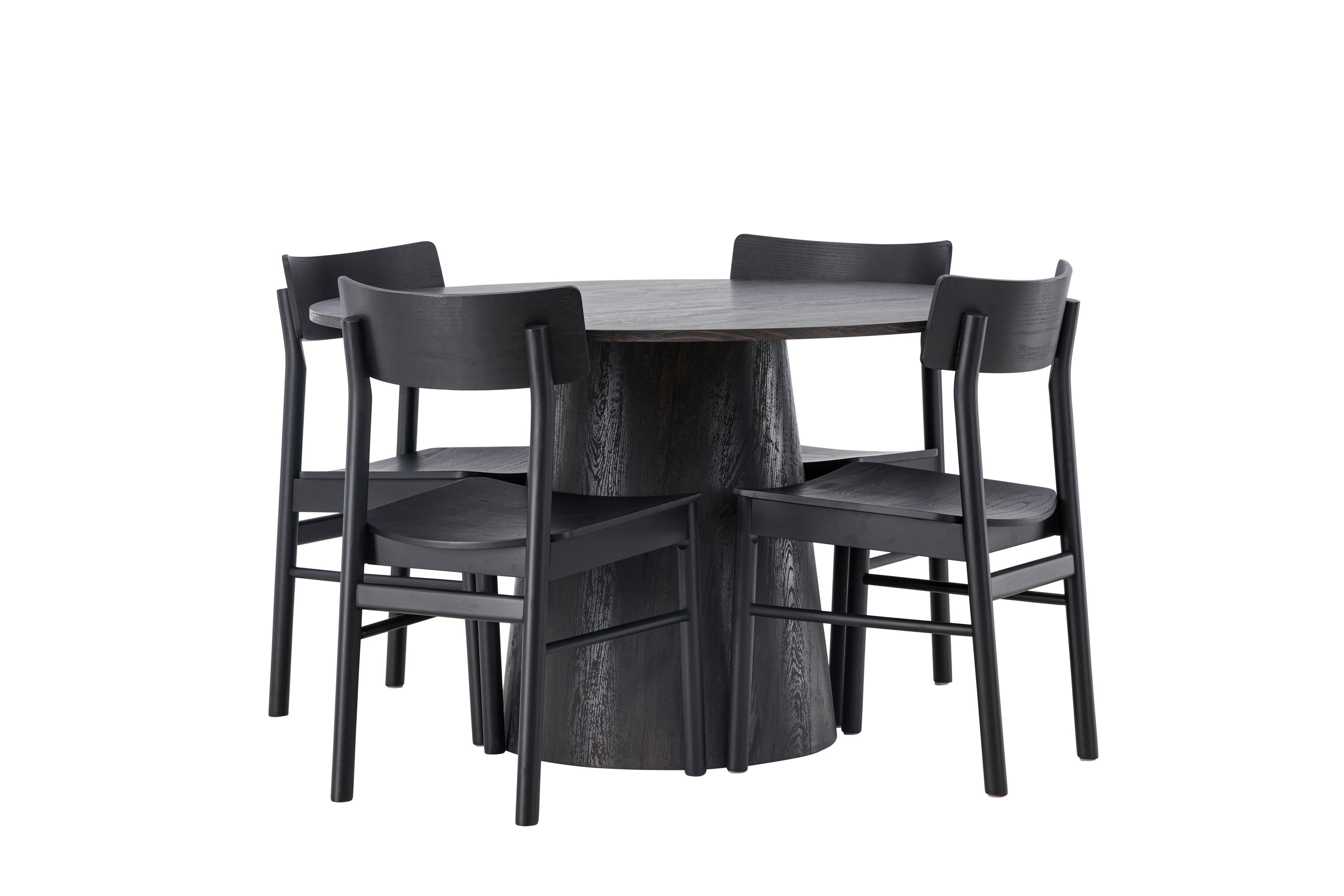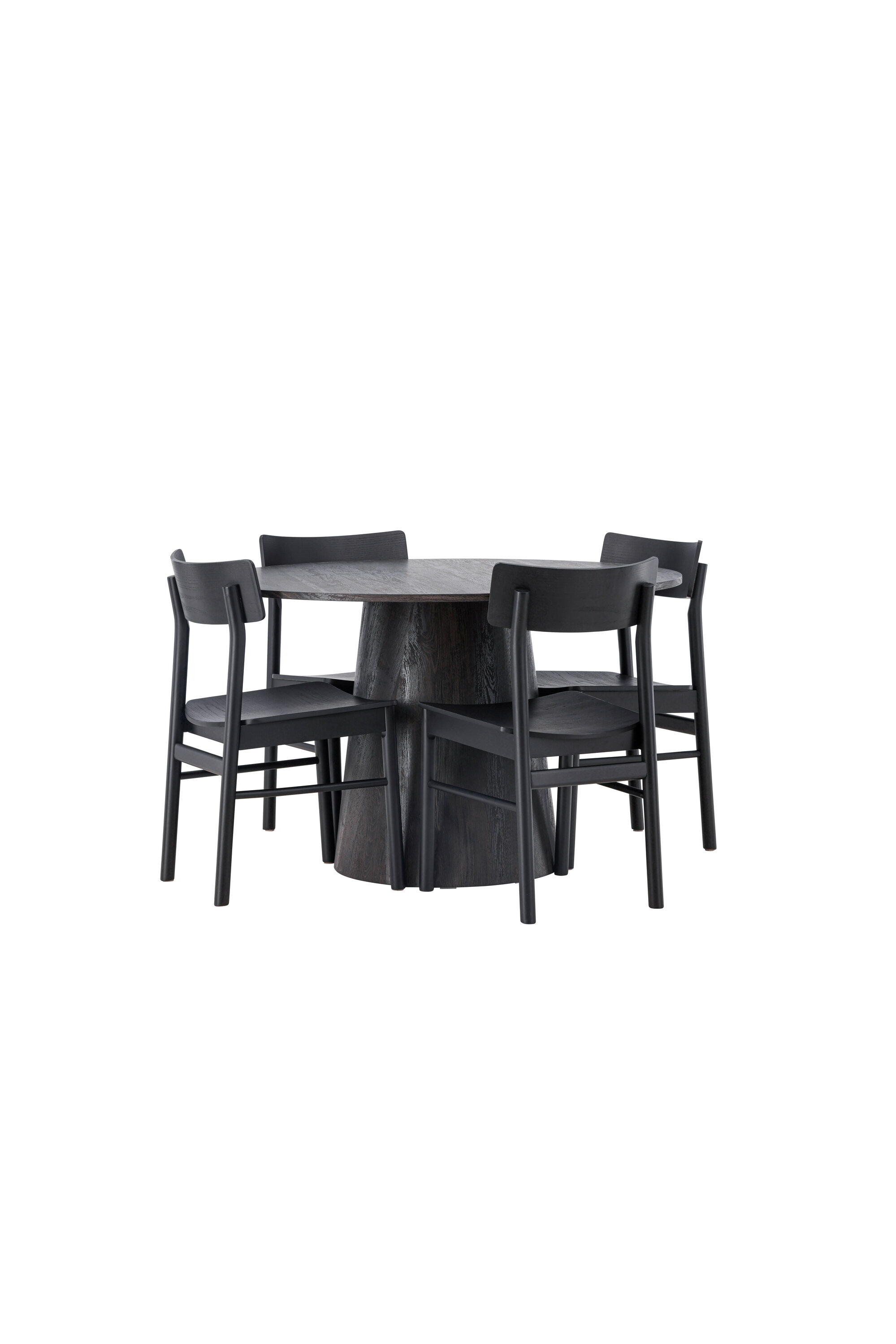 Skandinaavia disain selle parimal kujul! Meie imeline ümmargune söögilaud Lanzo on pruunist MDF-plaadist üldise disainiga õhukese pealispinnaga ja keeratud silindrilise raamiga, mis asub laua all. Siin maitsekas kombinatsioonis Montros seeria moodsate söögitoolidega. Toolil on klassikaline ja nostalgiline sirgete põhjamaiste vormidega disain, mis on läbivalt mustast kummipuidust. Lihtsalt, ideaalne sobivus! Laua läbimõõt: 120 cm.