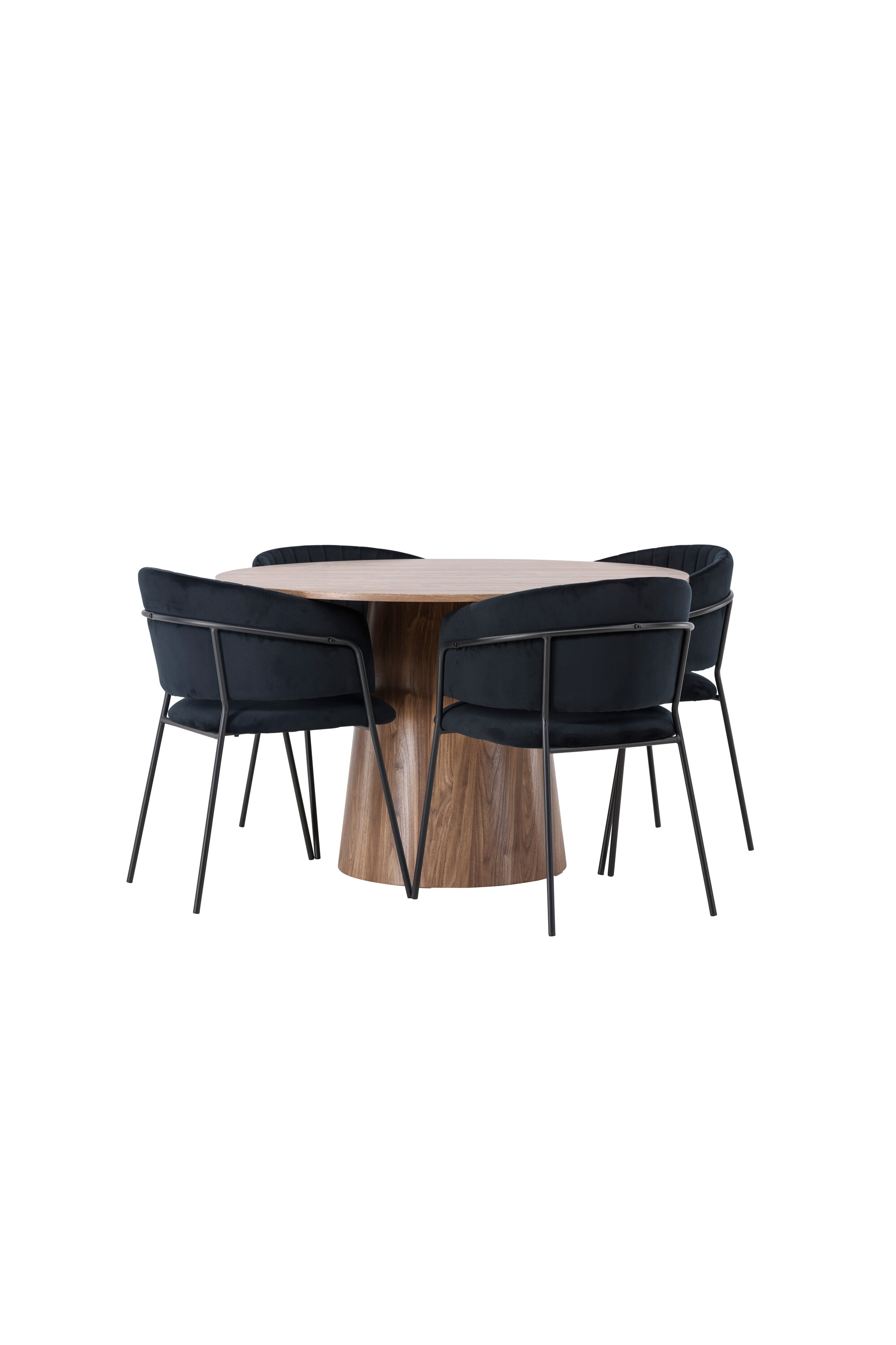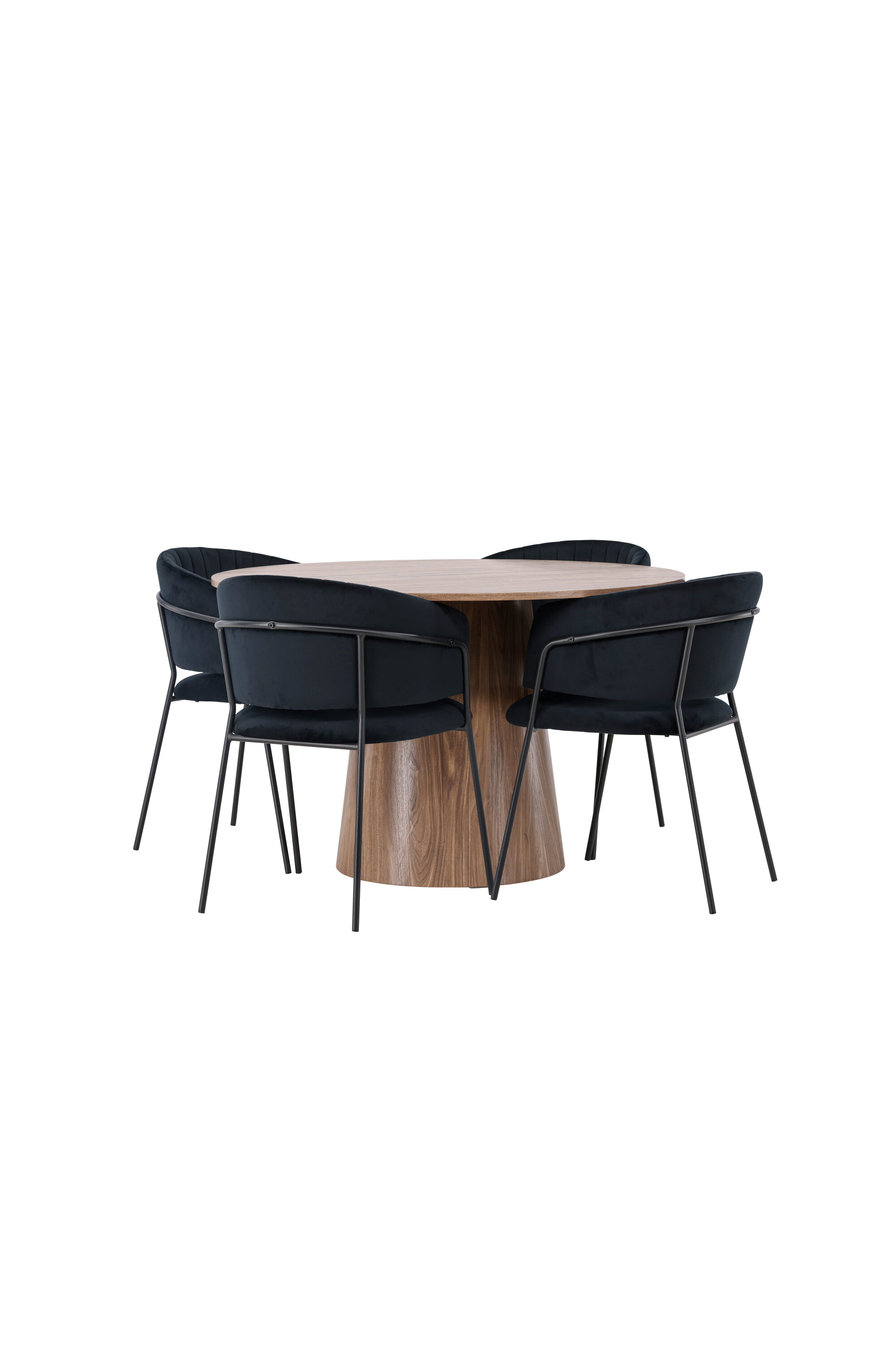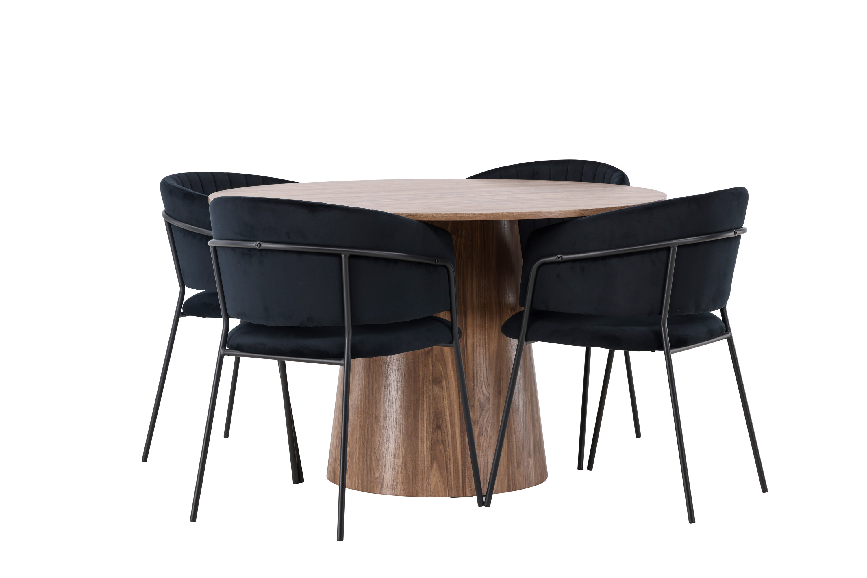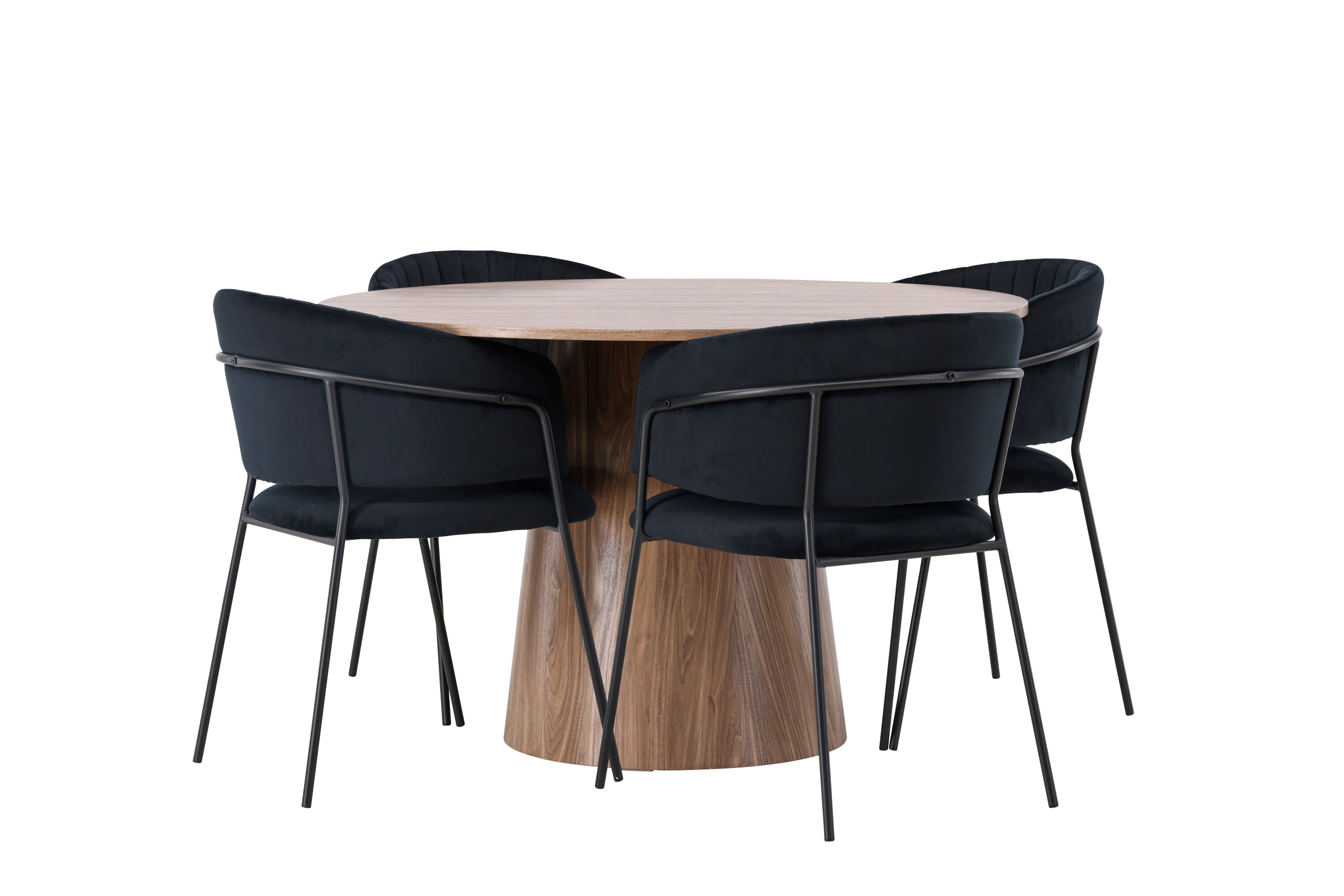 Koos ümmarguse söögilaua Lanzoga pakume oma samettoolid Selma sarjast. Toolide täielikult polsterdatud disain koos ümara seljaosa ja luksusliku sametkangaga istmetel tagab täiusliku mugavuse. Stiilsed dekoratiivsed õmblused lisavad elegantsi ja loovad luksuse tunde. Mustad terasest toolijalad annavad oma panuse maitsekale minimalismile, mis on kaunilt kontrastiks laua vastupidavusega.