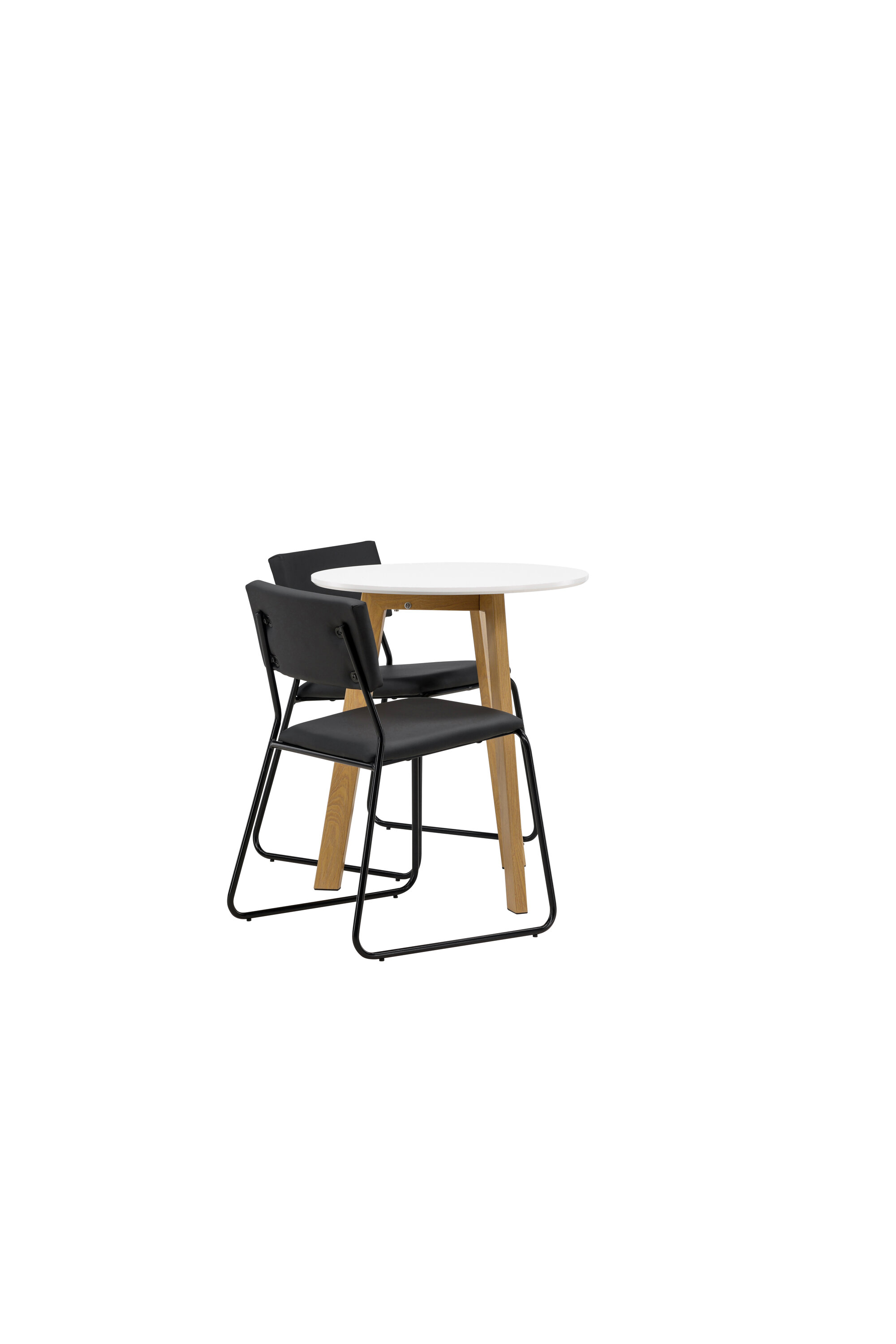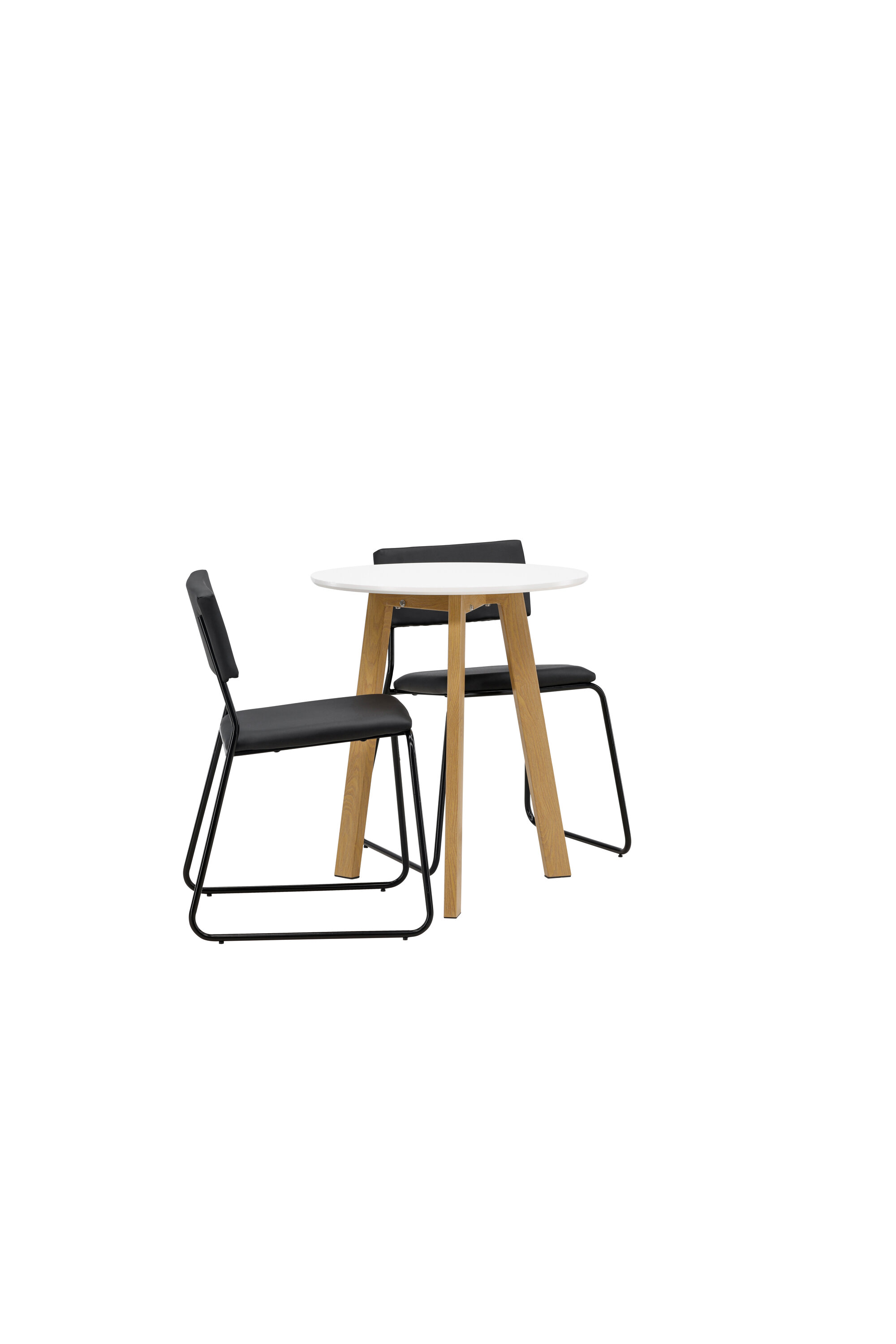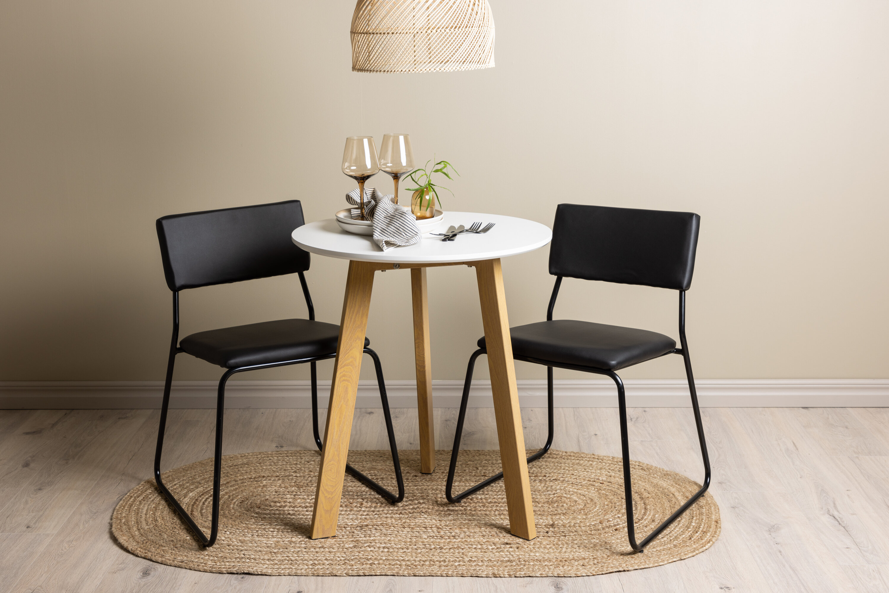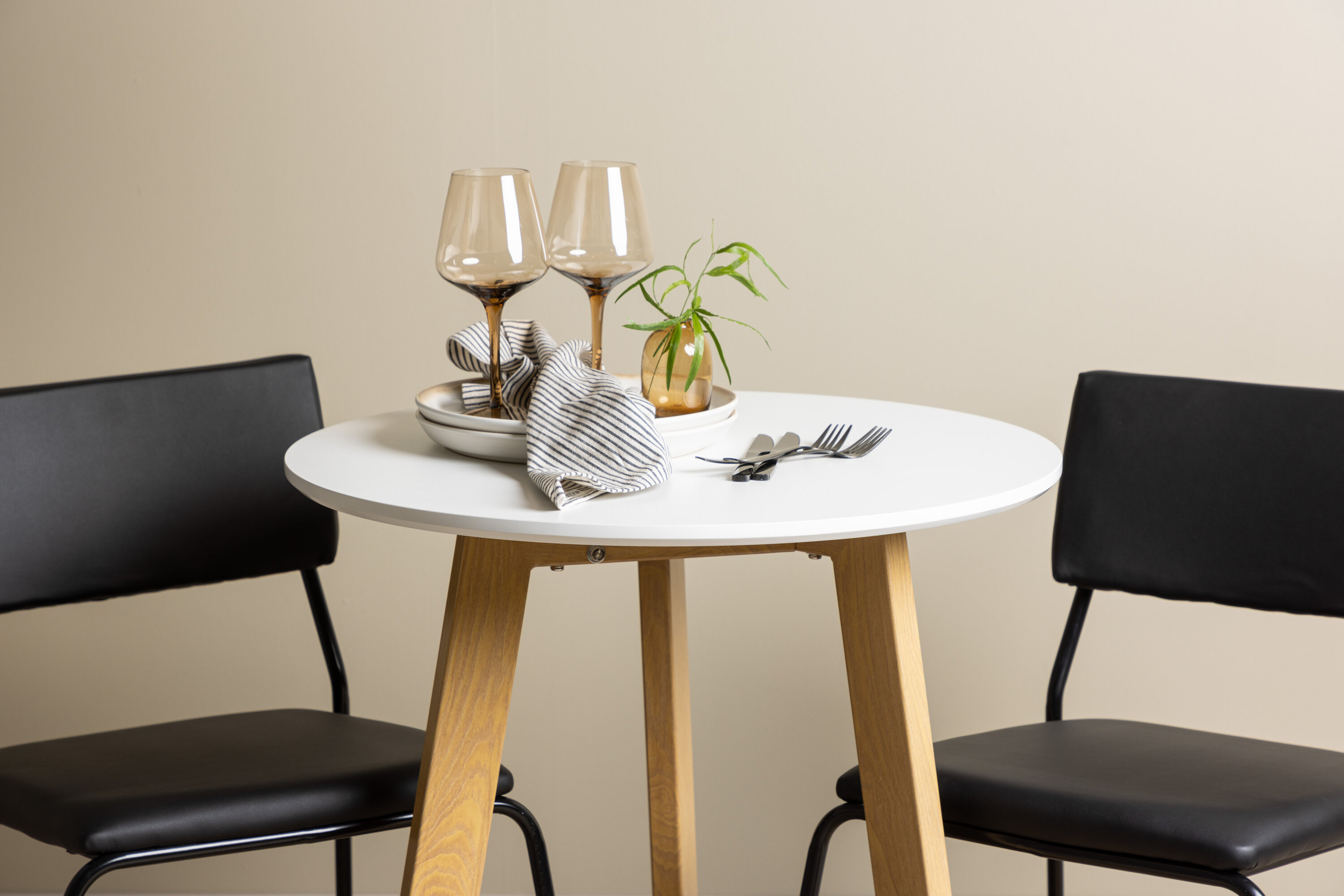 Imeline kombinatsioon minimalistlikust ja klassikalisest disainist! Ümmargusel söögilaual Leonora on ümmargune valgest MDF-plaadist plaat ja kolme jalaga armsas tammepuidust raam. See sobib ideaalselt Kenth sarja minimalistlike söögitoolidega. Toolil on mustast polüuretaannahast ja polüestrist seljatugi ja iste ning dekoratiivsed kitsad rauast jalad. Miks mitte sisustada nii nutikalt kui stiilselt? Laua läbimõõt: 65 cm.