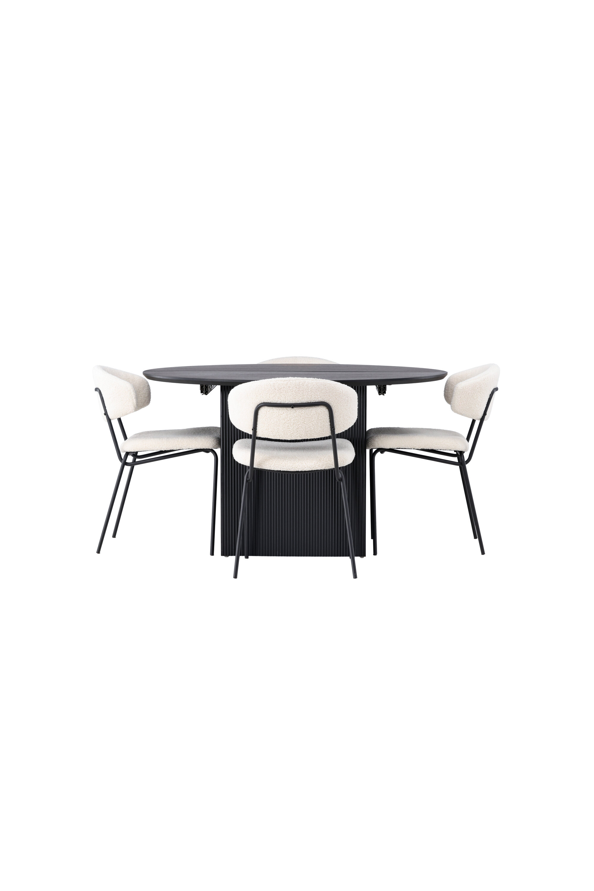 Andke oma elutoale värskendust, mida see väärib musta söögilaua Matilda ja moodsate toolidega Chico!