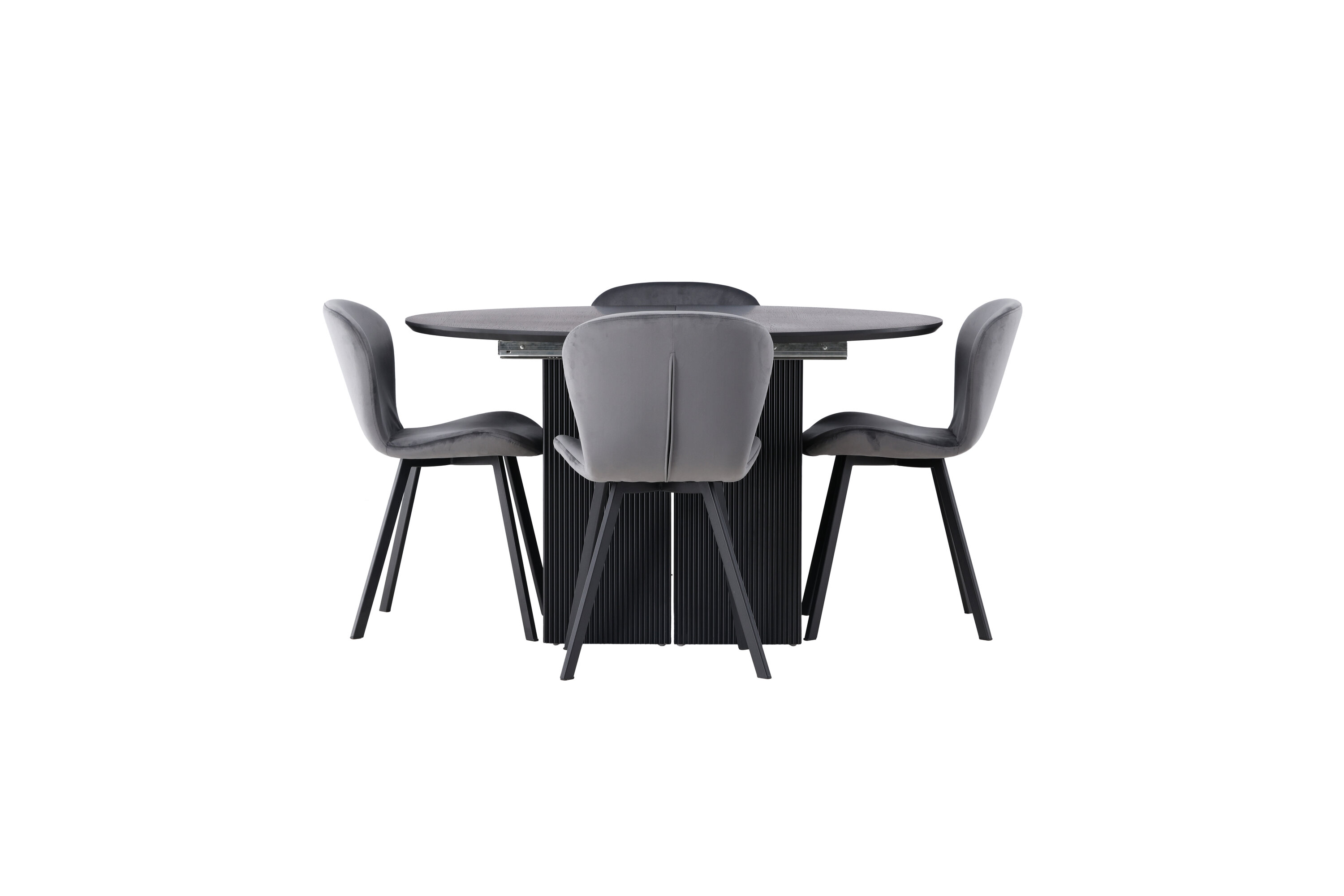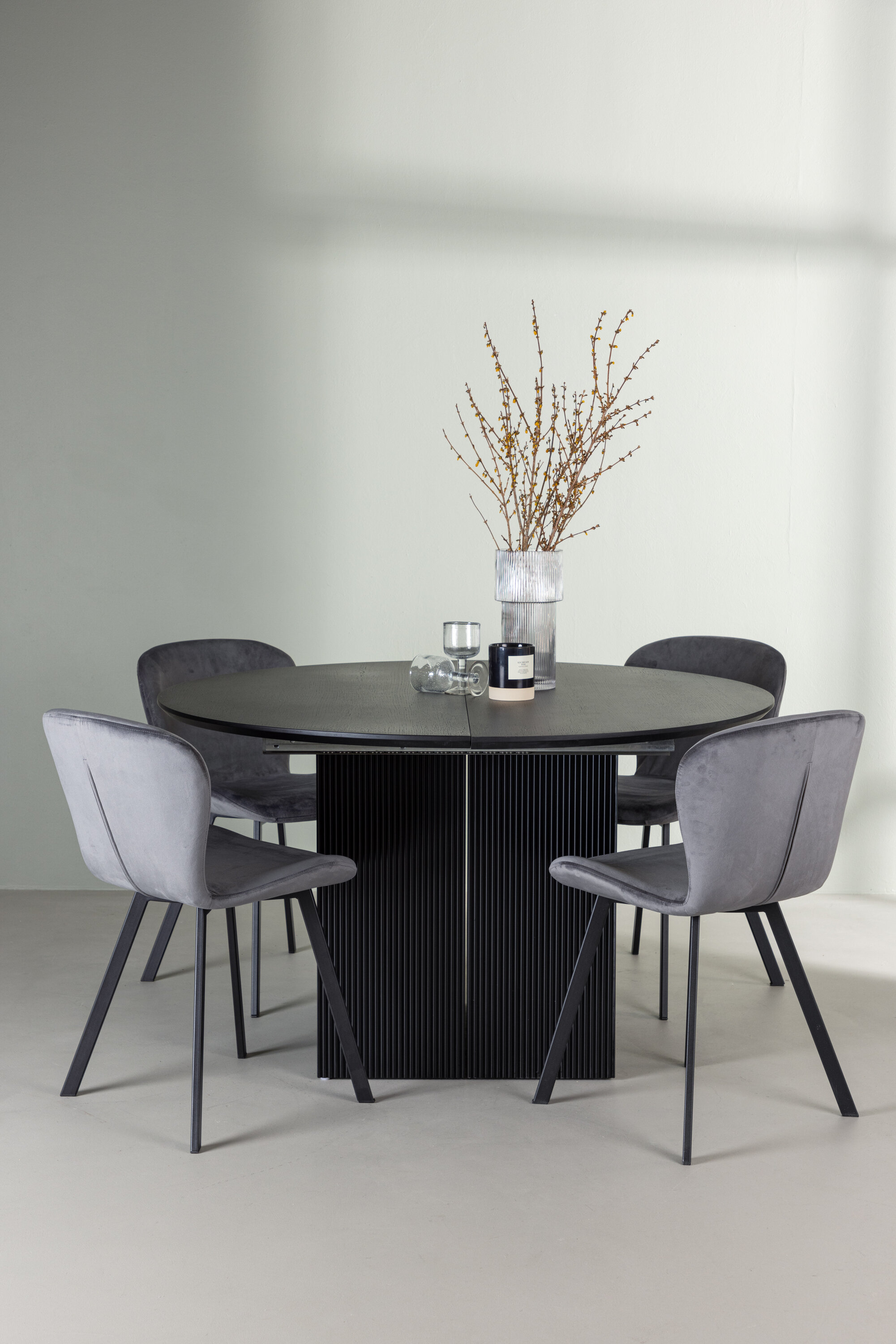 Täieliku söögikomplekti loomiseks oleme söögilaua sidunud Lilja sarja elegantsete toolidega. Oma nõtke ümara kuju ja hallidest polüesterkangast istmetega pakub Lilja mugavat ja stiilset istumiskohta. Kergelt laienevad mustad metallist toolijalad lisavad üldmuljele modernset ja elegantset lihvi.