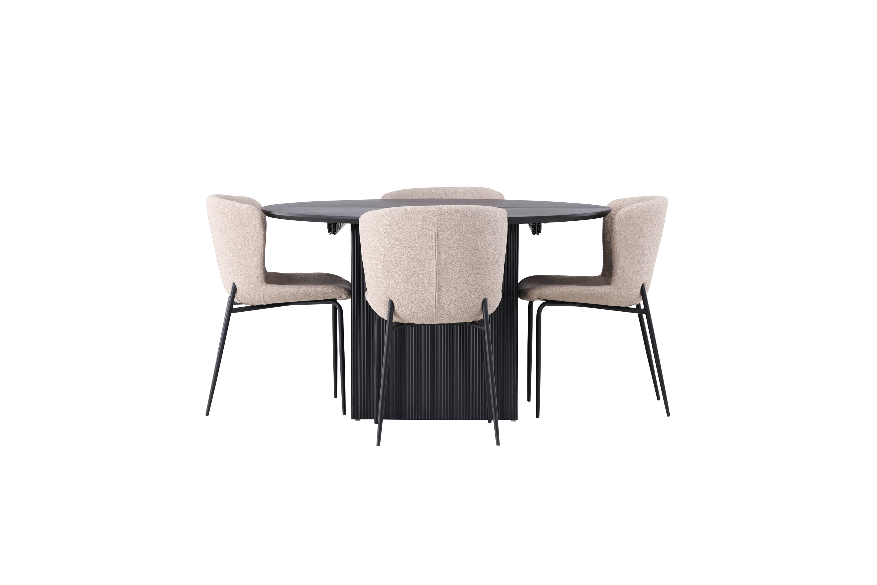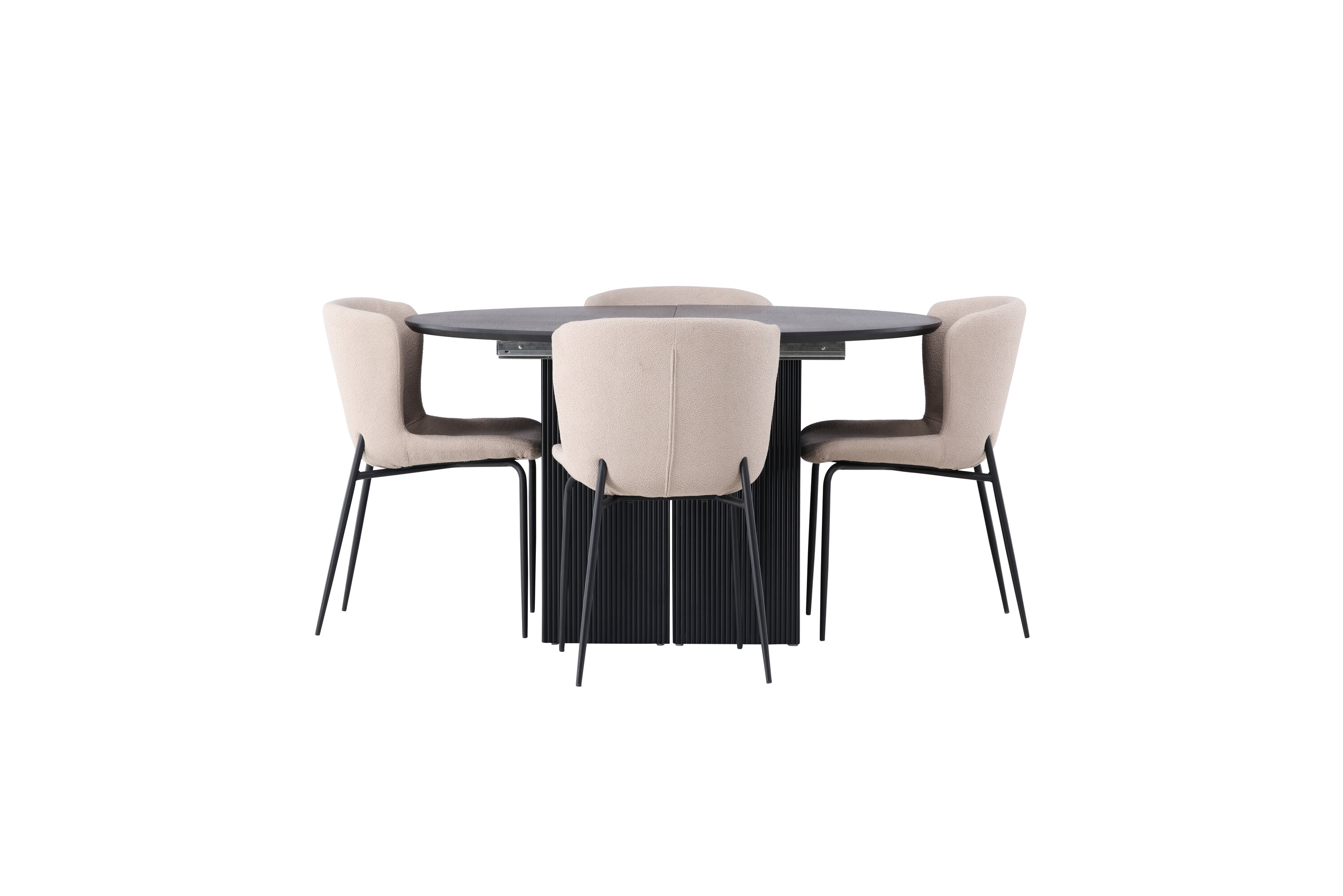Lisaks pikendatavale söögilauale Matilda pakume meie stiilseid söögitoole Modesto sarjast. See Skandinaavia inspireeritud pehmest beežist bouclé kangast ja mustadest metalljalgadest söögitool loob teie kodu südames kutsuva atmosfääri. Õrnalt ümar seljatugi ja polsterdatud istmepadi pakuvad fantastilist mugavust, võimaldades nautida pikki ja meeldivaid eineid koos sõprade ja perega! Mida veel võiks soovida? Siit saate nutika söögikomplekti, mis kohandub teie vajaduste ja eelistustega!