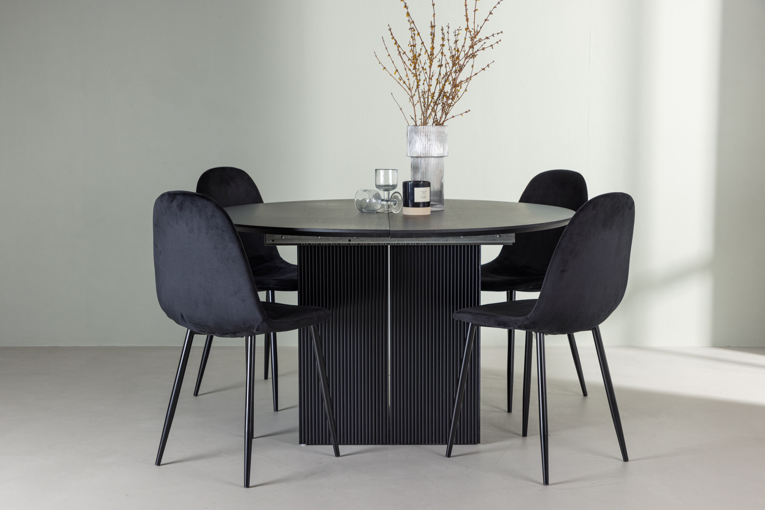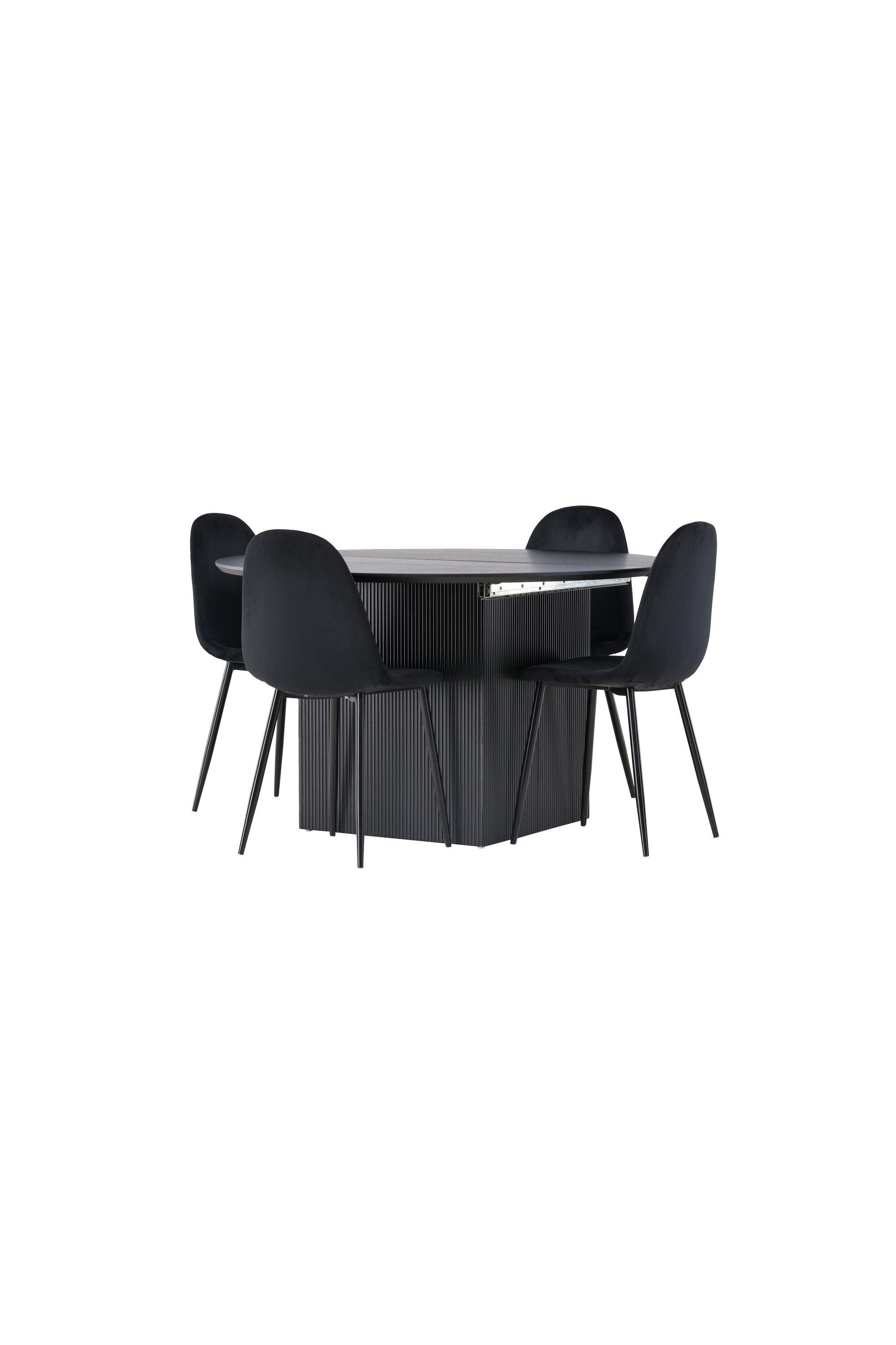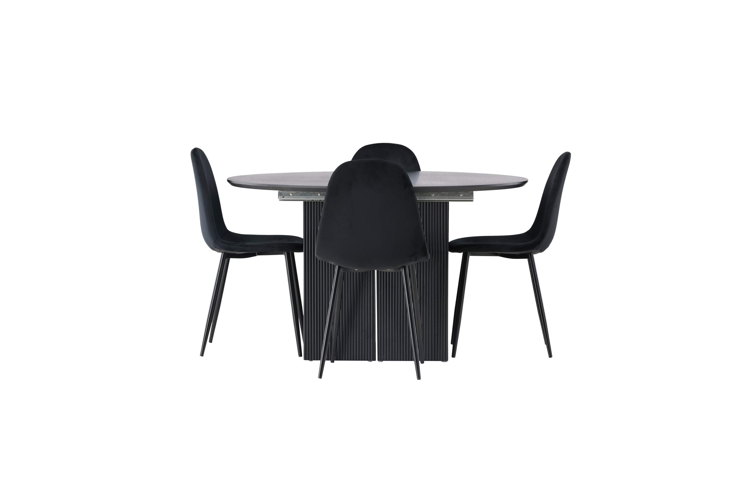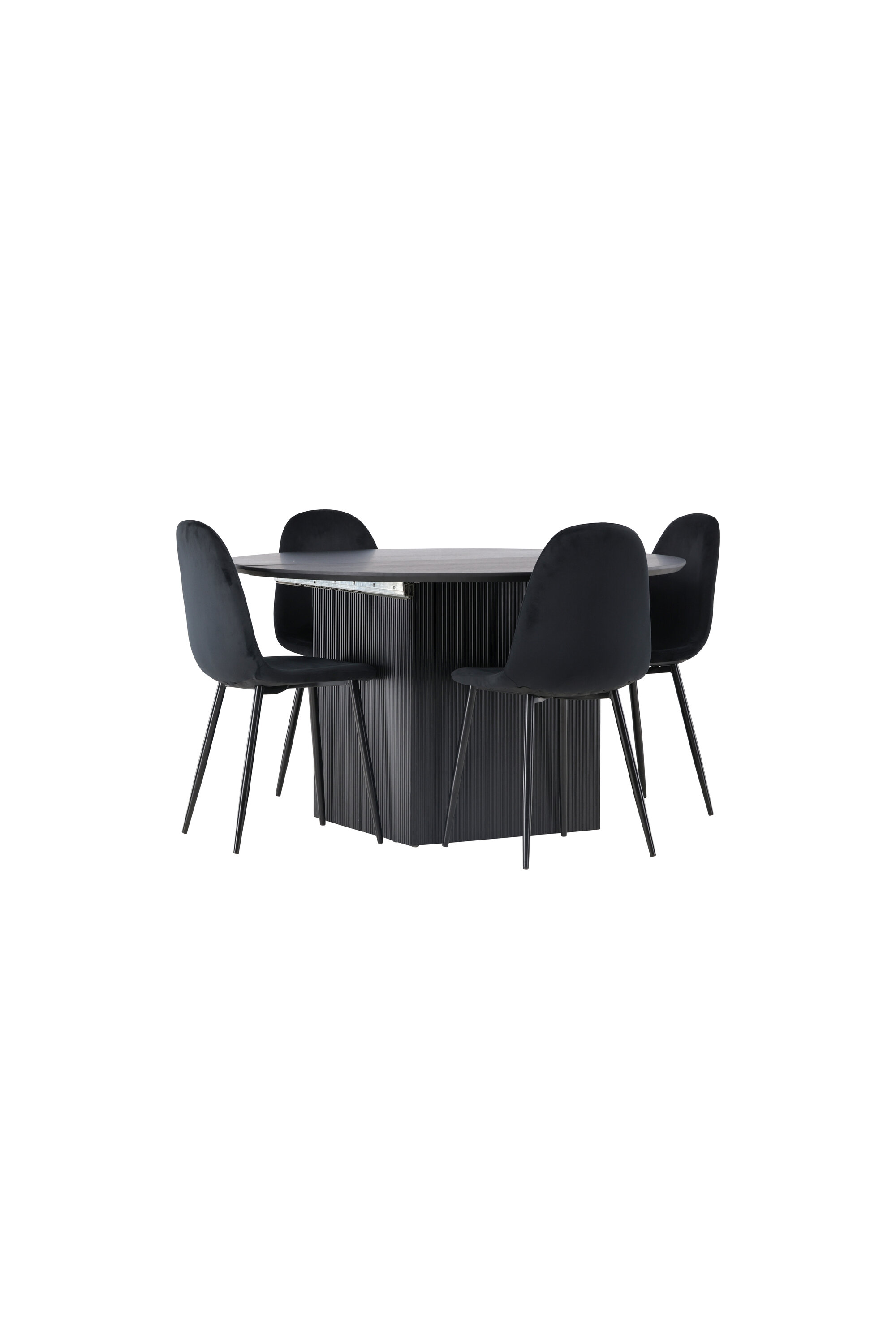 Selle söögikomplekti täiendavad meie Polari seeria samettoolid. Polari toolid avaldavad muljet oma täielikult polsterdatud disaini, klassikaliste mustade metalljalgade ja veidi kumera seljatoega lisamugavuse tagamiseks. Iste on polsterdatud sileda musta sametkangaga, mis tundub luksuslikult ja mugavalt istudes. Koju hubast sööki nautides peaks olema suurepärane tunne!