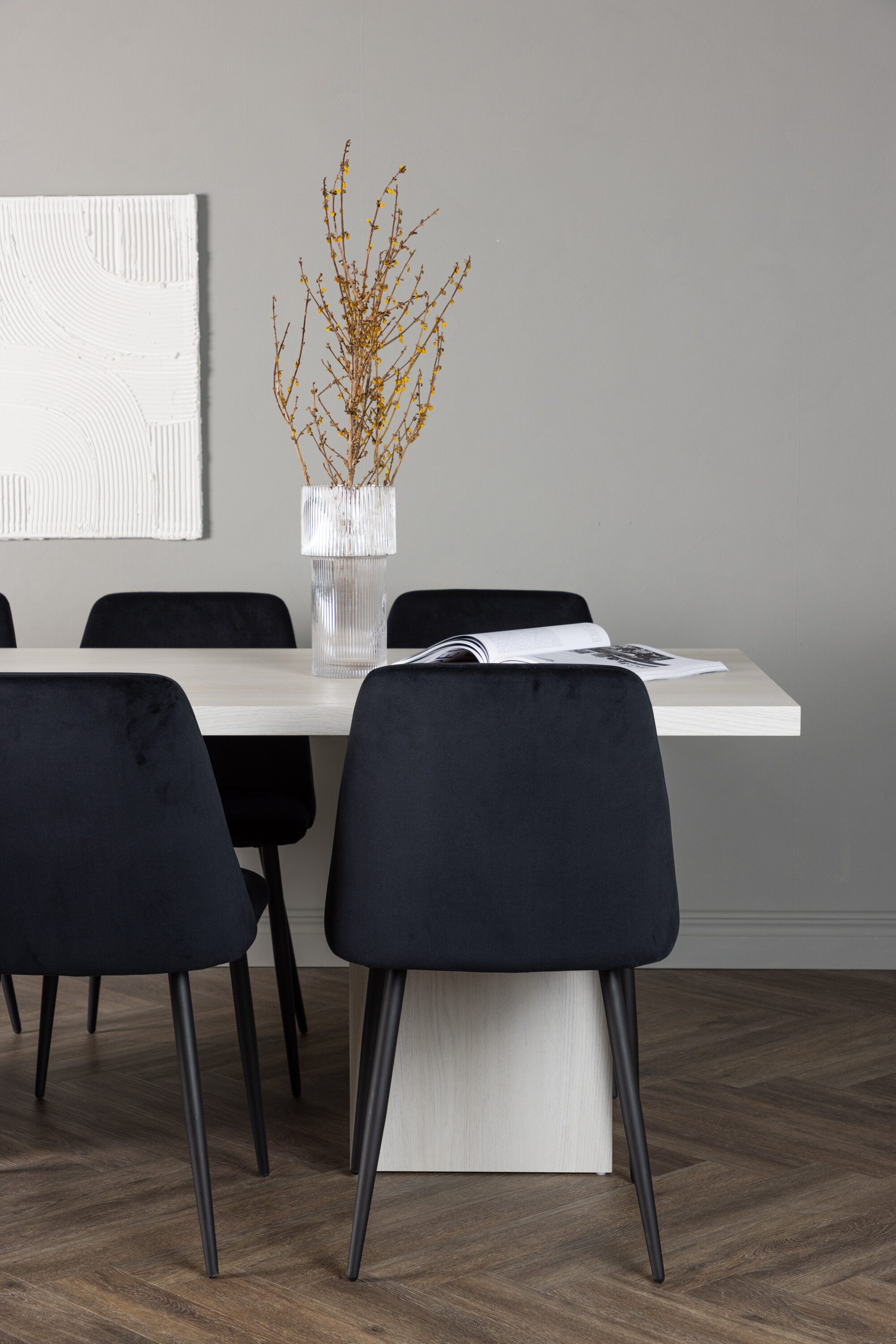 Meie mustad samettoolid sarjast Night sobivad ideaalselt valgeks lubjatud söögilauale. Täielikult polsterdatud mustast sametkangast istmega tool katab teie keha luksuslikult ja mugavalt. Sobivad mustad toolijalad on elegantsed ja loovad koos Olga söögilauaga ühtse esteetika.