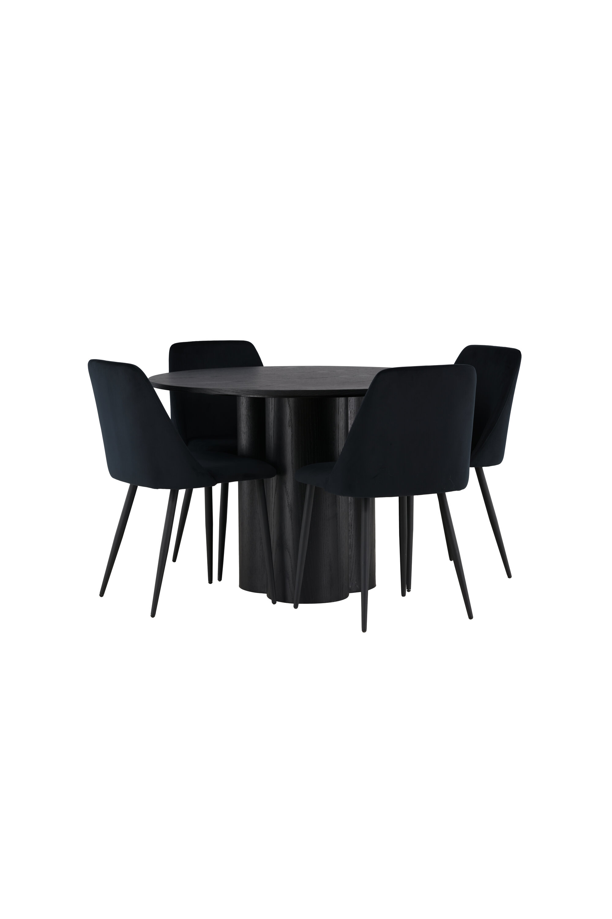 Siin täiendavad lauda meie mustad söögitoolid sarjast Night. Täielikult polsterdatud mustast sametkangast istmete ja sobivate mustade toolijalgadega pakuvad need söögitoolid kohest mugavust ja luksust. Iga tool loob kutsuva atmosfääri ja loob särava sära, mis annab tooni õhtusöögile sõprade ja perega.