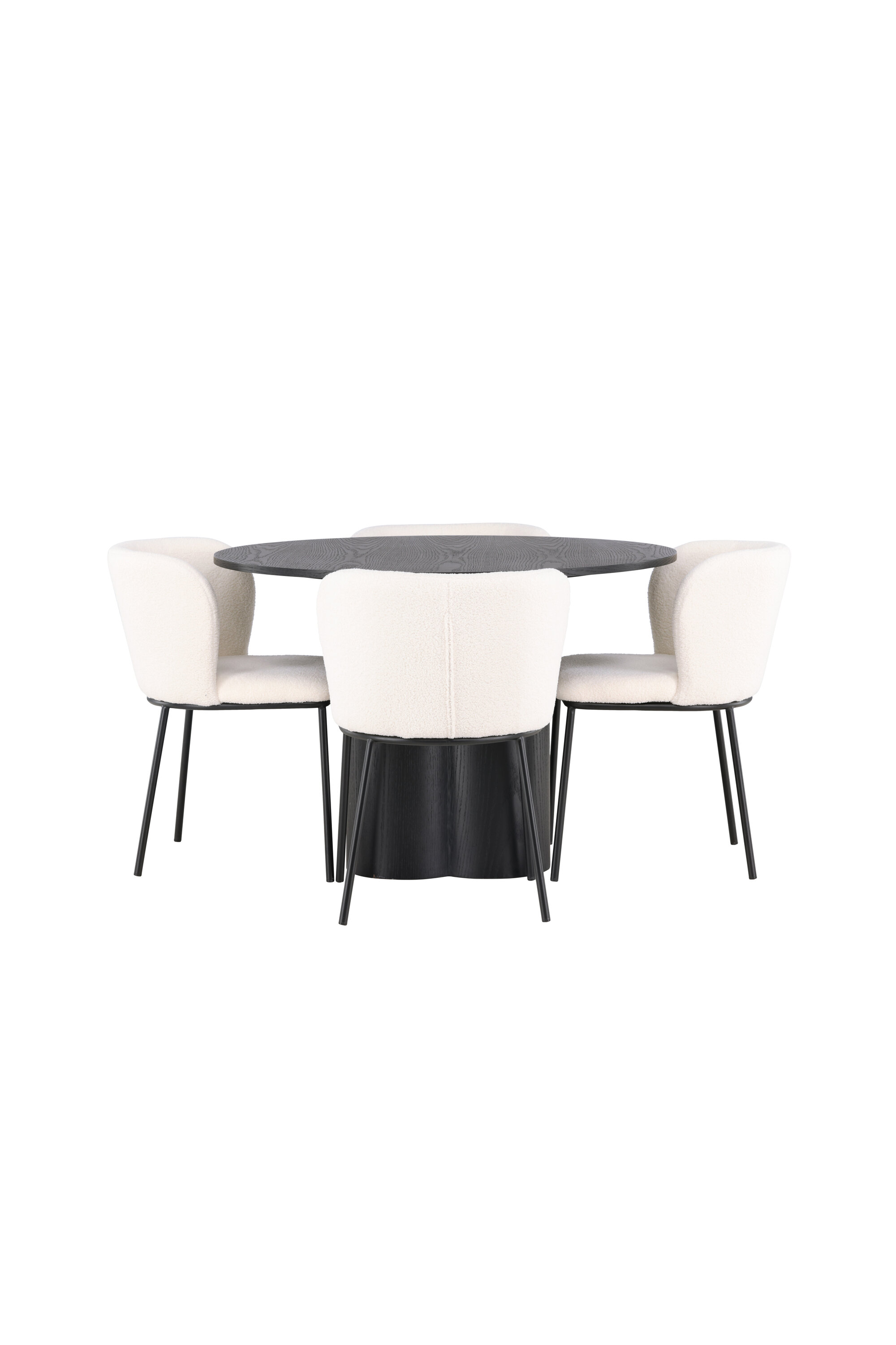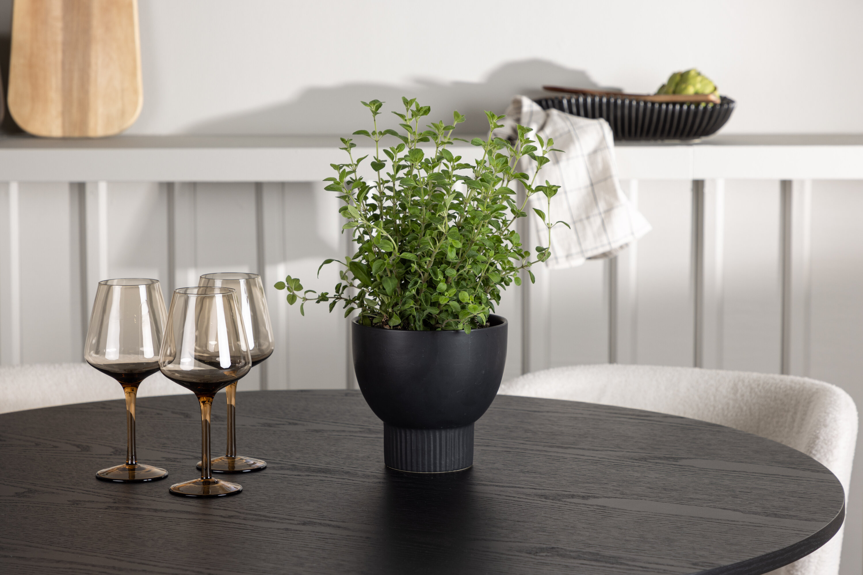 Meie ümmargune söögilaud Olivia avaldab muljet oma ainulaadse disainiga. Laual on õhuke lauaplaat ja see on valmistatud musta spooniga MDF-ist, mille kergelt tekstureeritud pind tõstab esile materjali kauni mustri. Kolm silindrikujulist jalga, mis on koondatud laua keskele, loovad stabiilse vundamendi, lisades samal ajal disainile moodsa hõngu. Laua mõõdud: 110 cm.