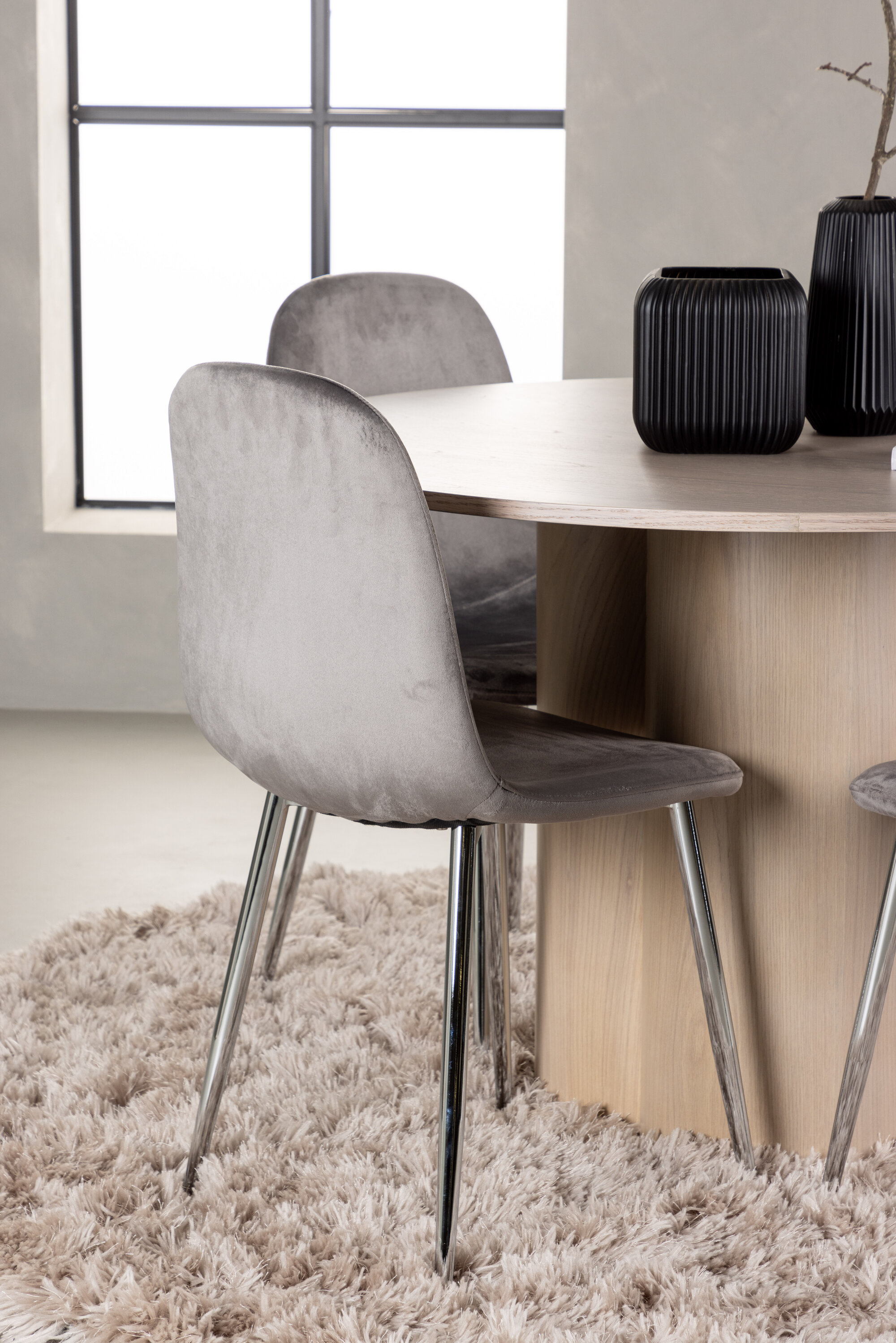 Siin on täiuslikus kombinatsioonis meie hallid söögitoolid sarjast Eva. Need toolid on nii mugavad kui ka pilkupüüdvad. Täielikult polsterdatud disaini, õrnalt ümarate seljatugede ja sametisest kangast istmed annavad luksuse ja mugavuse tunde. Hõbedased metalljalad täiendavad toolide elegantset välimust ja lisavad kogu ansamblile modernset hõngu.