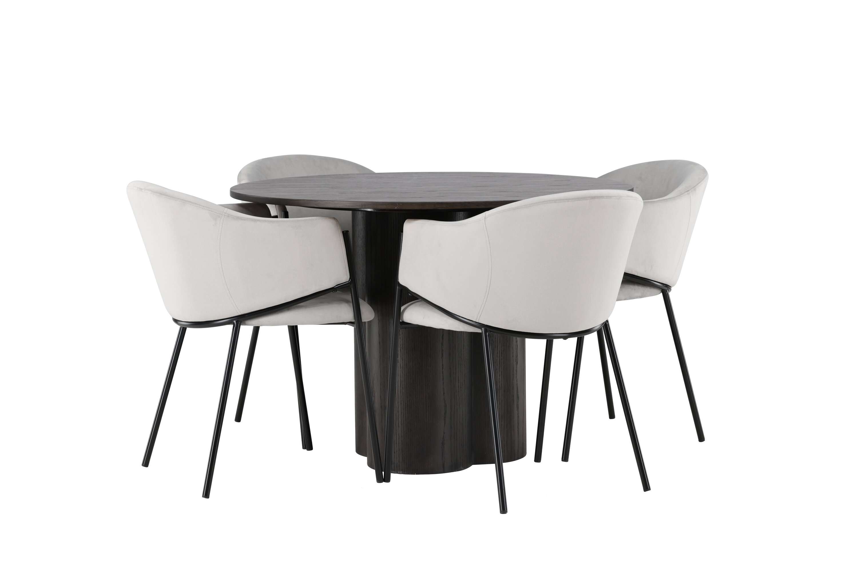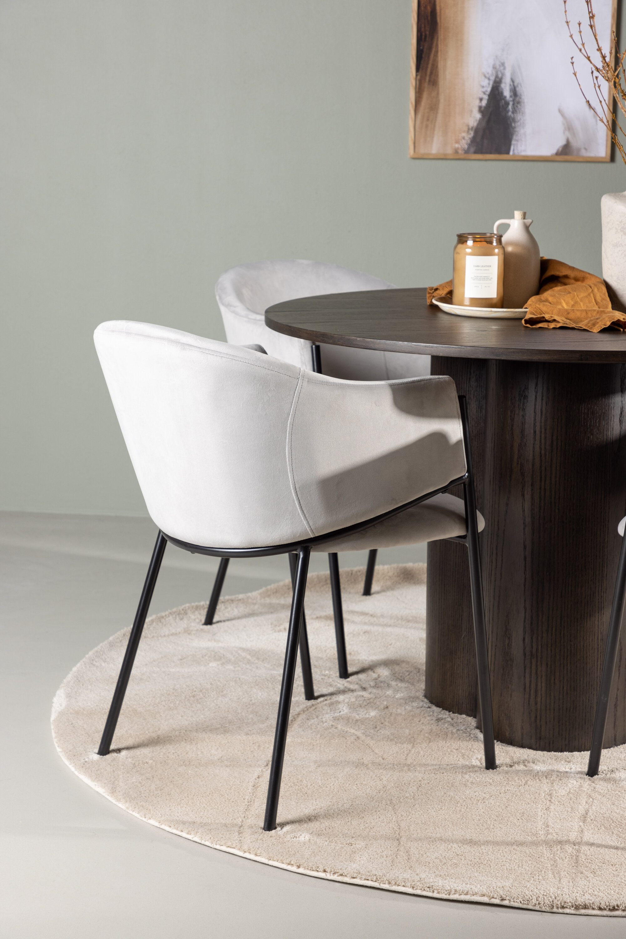 Selle tumepruuni söögilaua täienduseks on meil helehallid söögitoolid Evelina. Kaasaegse esteetika ja mugava disainiga tool muutub kiiresti lemmikuks igas kodus. Täielikult polsterdatud helehalli sametkangaga iste pakub luksuslikku ja kutsuvat tunnet, samas kui ümar seljatugi lisab mugavust ja tuge. Must terasraam, disainilt minimalistlik ja dekoratiivne, lisab toolidele veidi lisapuudust.