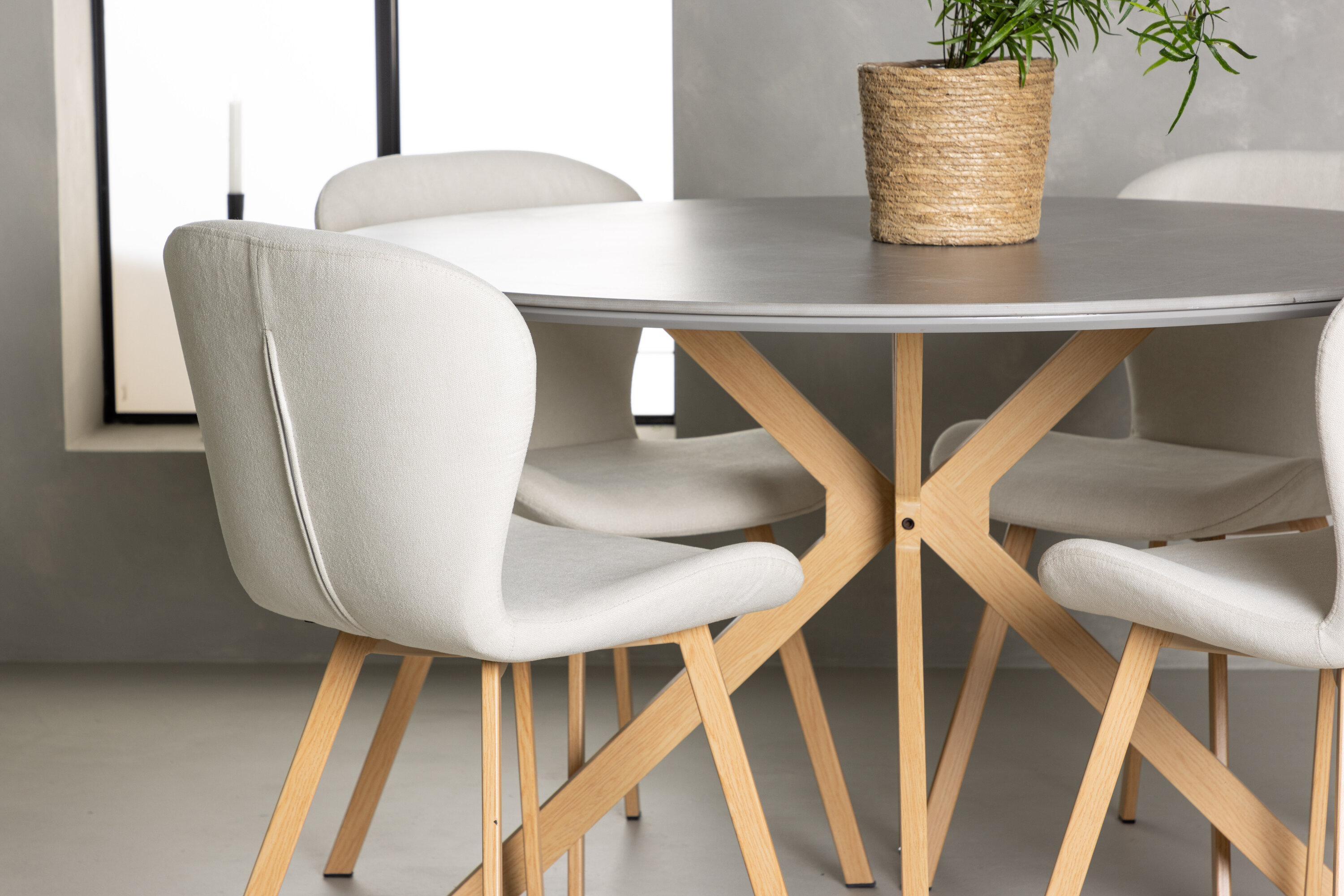 Kuid mitte ainult laud ei avalda muljet – meie Lilja sarja beežid söögitoolid viivad interjööri täiesti uuele tasemele. Need heledates toonides unistuste toolid loovad teie söögituppa stiilse ja värske atmosfääri. Beežist polüesterkangast täielikult polsterdatud istmed loovad mugava ja kutsuva tunde. Lamedad ja kergelt laienevad tammepuidust jalad sobivad ideaalselt ka söögilauaga.