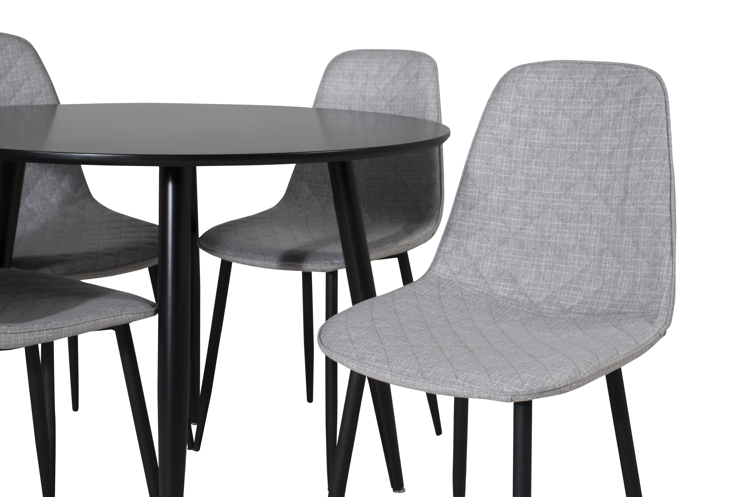 Meie ümmargune söögilaud Plaza sobib oma elegantse musta lauaplaadiga suurepäraselt nii argipäevaks kui ka peole! Siin koos meie istumissõbralike söögitoolidega Polar maitsvates halltoonides.