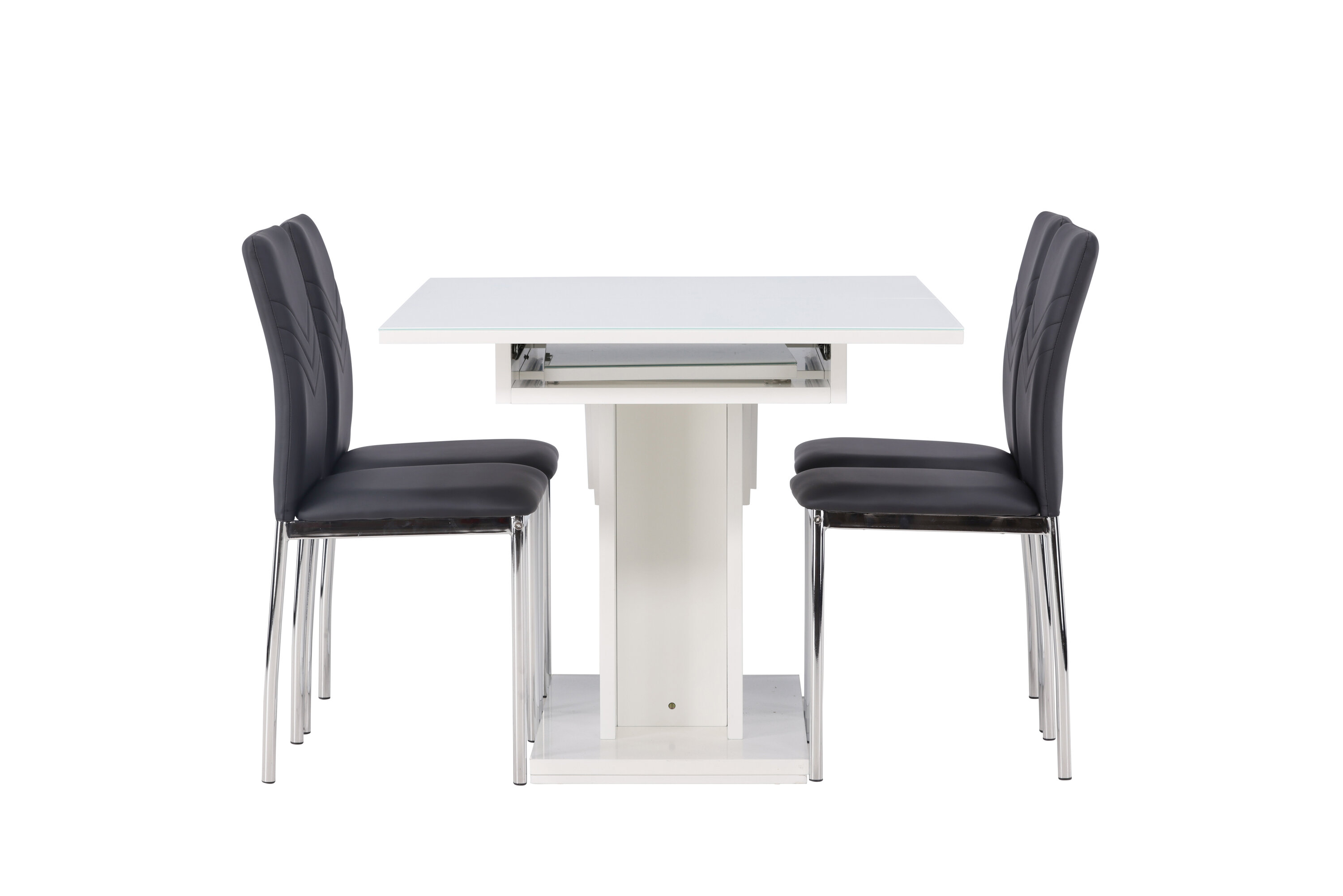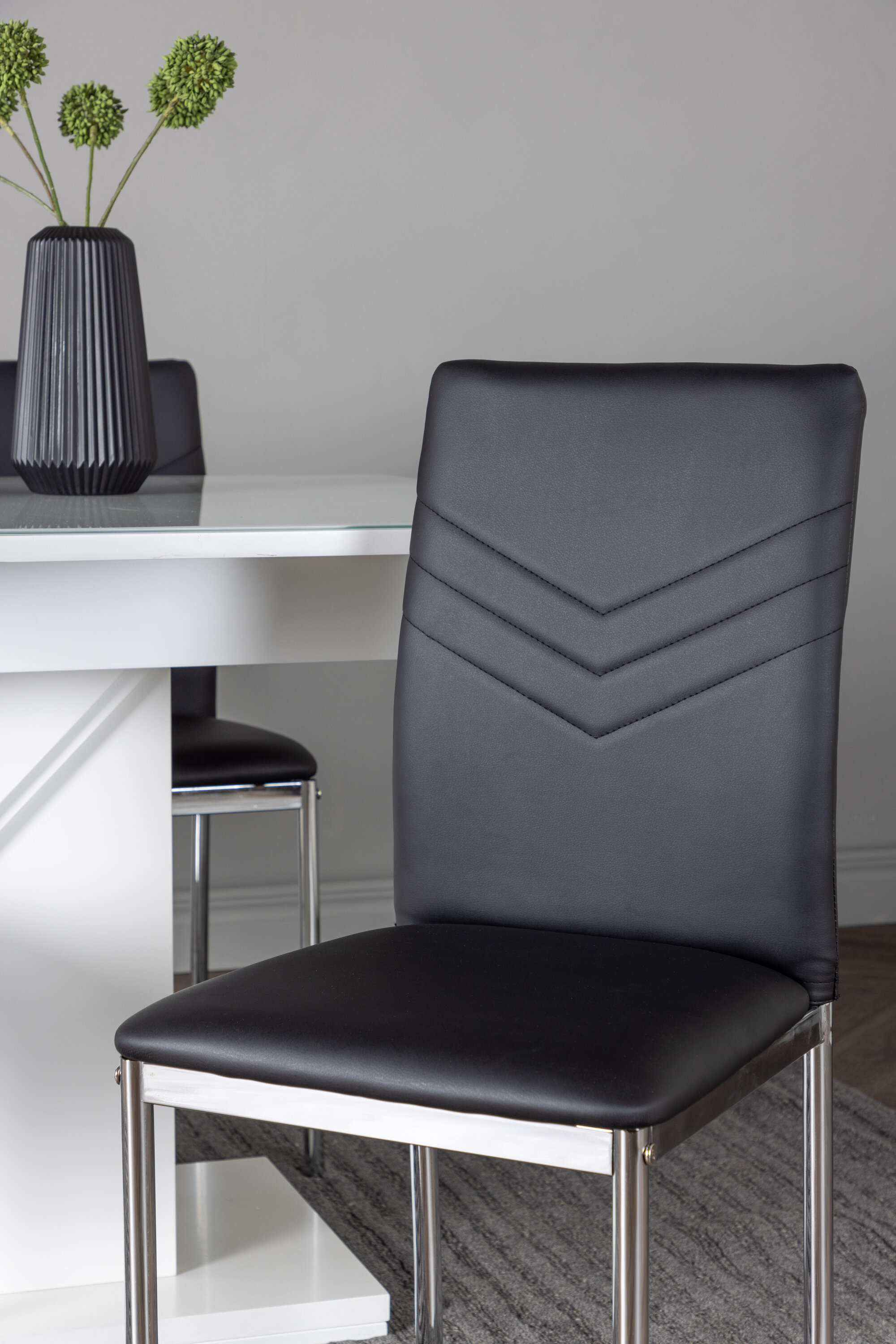 Koos valge söögilauaga Pluto pakume meie Lily sarja musti söögitoole, millel on skandinaavialik disain ja ajatud põhjamaised vormid. Need toolid on lihtsad, kuid uskumatult ilusad. Must kunstnahast polster lisab julge tunde, kroomitud toolijalad pakuvad aga tööstuslikku hõngu. Dekoratiivsed õmblused piki seljatuge lisavad stiilse detaili – siit saad nii muljetavaldava söögikomplekti kui ka mugava istumisvõimaluse tulevasteks söögikordadeks!