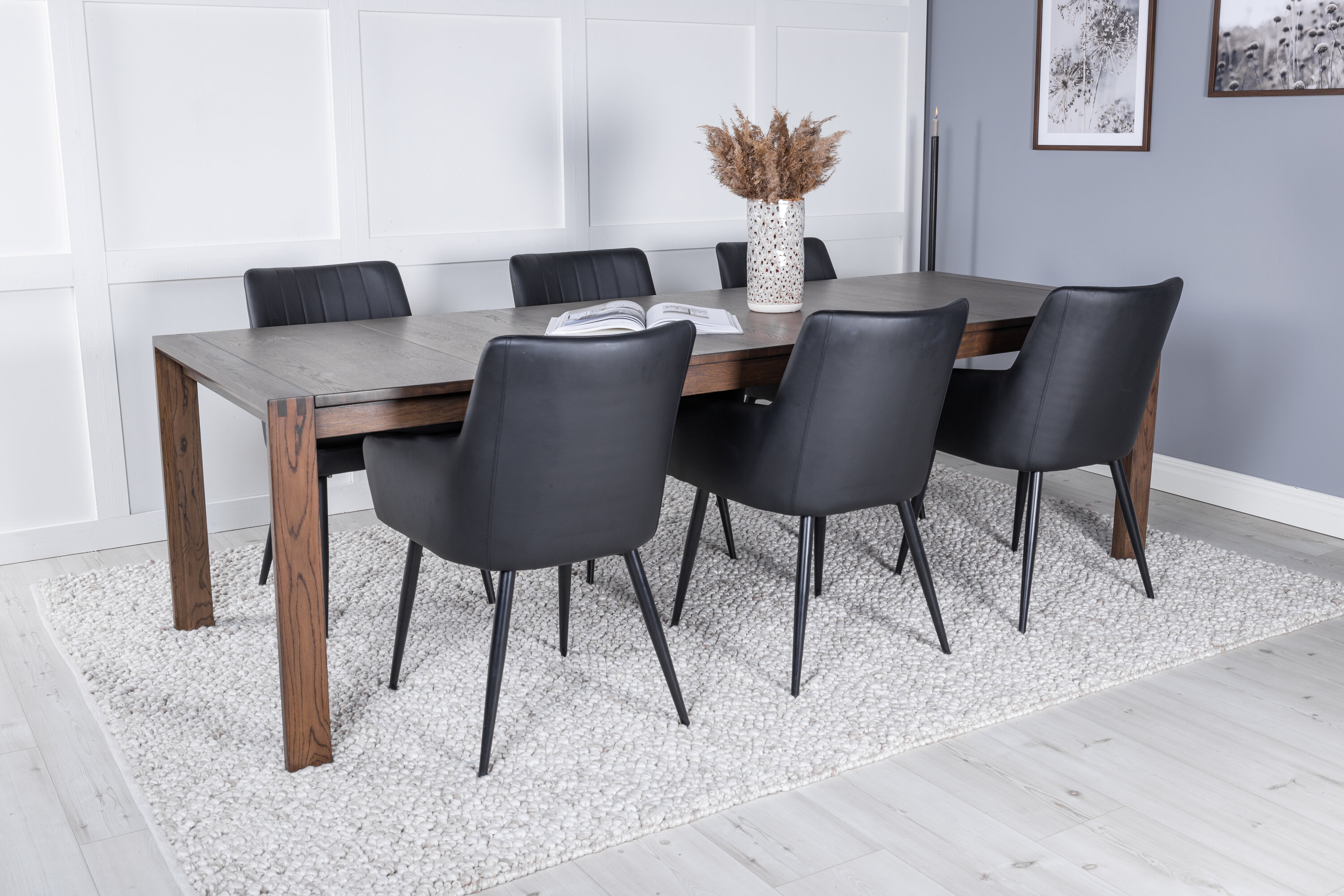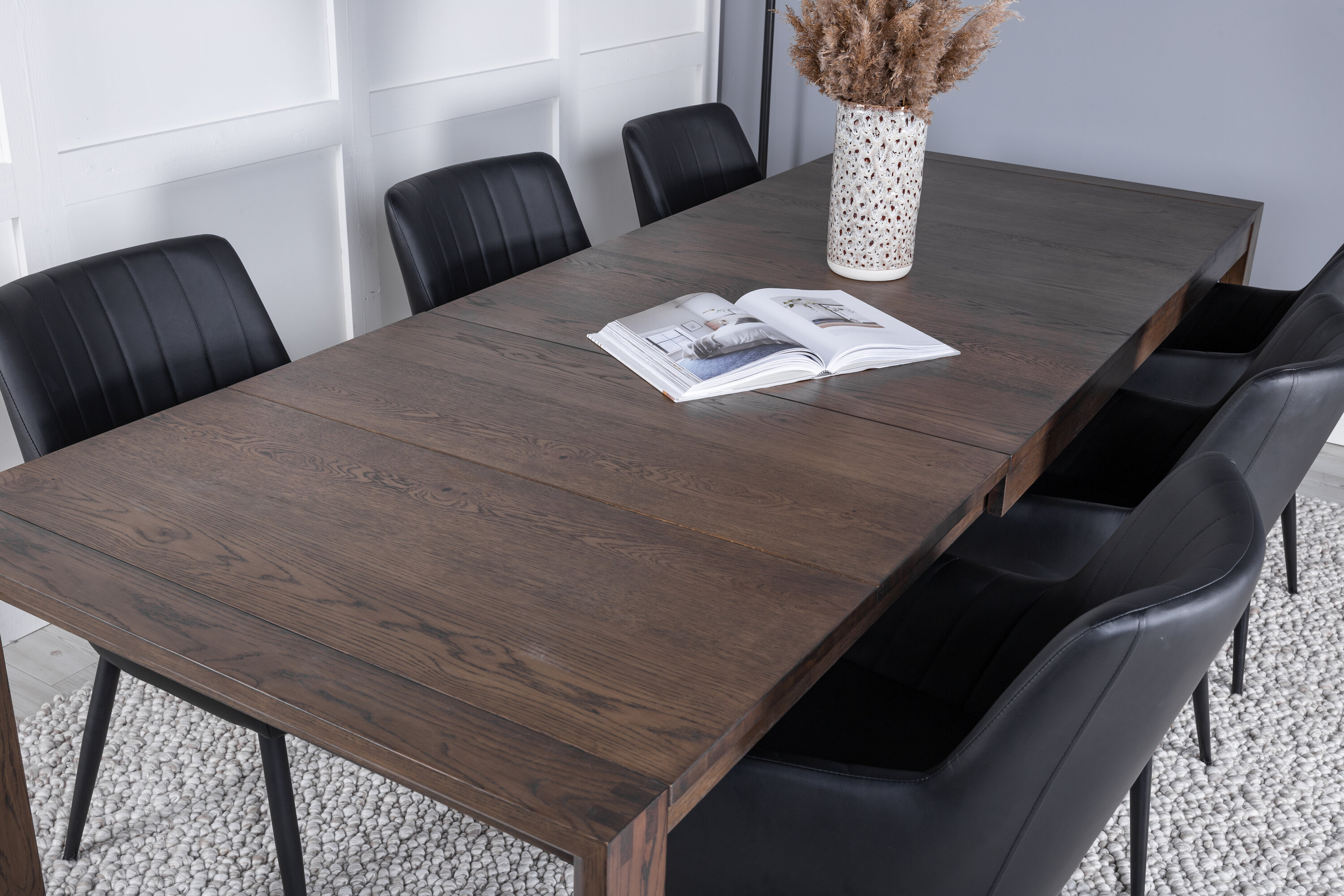 Mugavus, meie tugevad ja hästi kasvanud söögitoolid. Siin on kombineeritud söögilaua liuguriga stiilne tammepuidust välimus. Toidugrupp, mis töötab hästi nii väikestel kui suurtel pidudel!