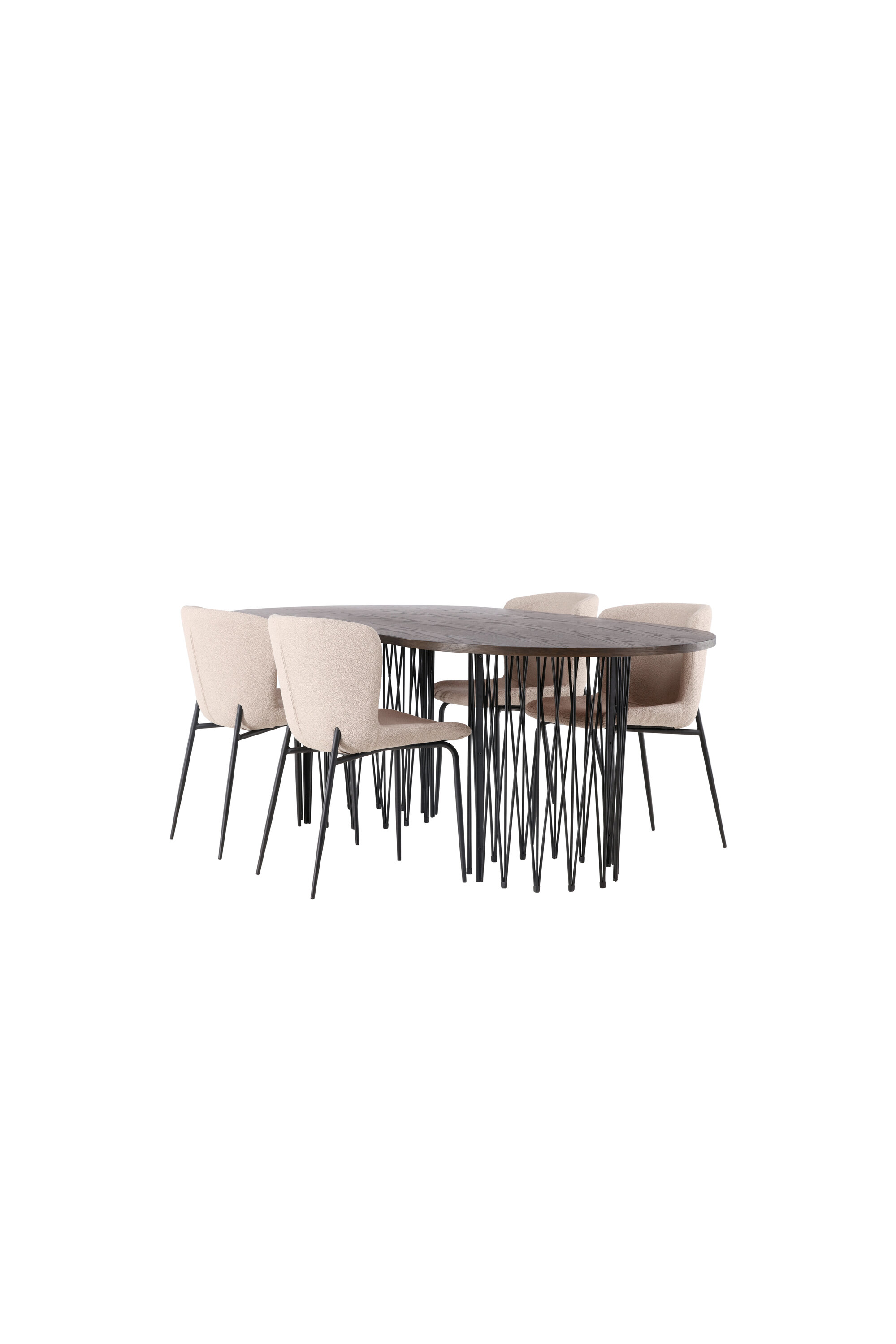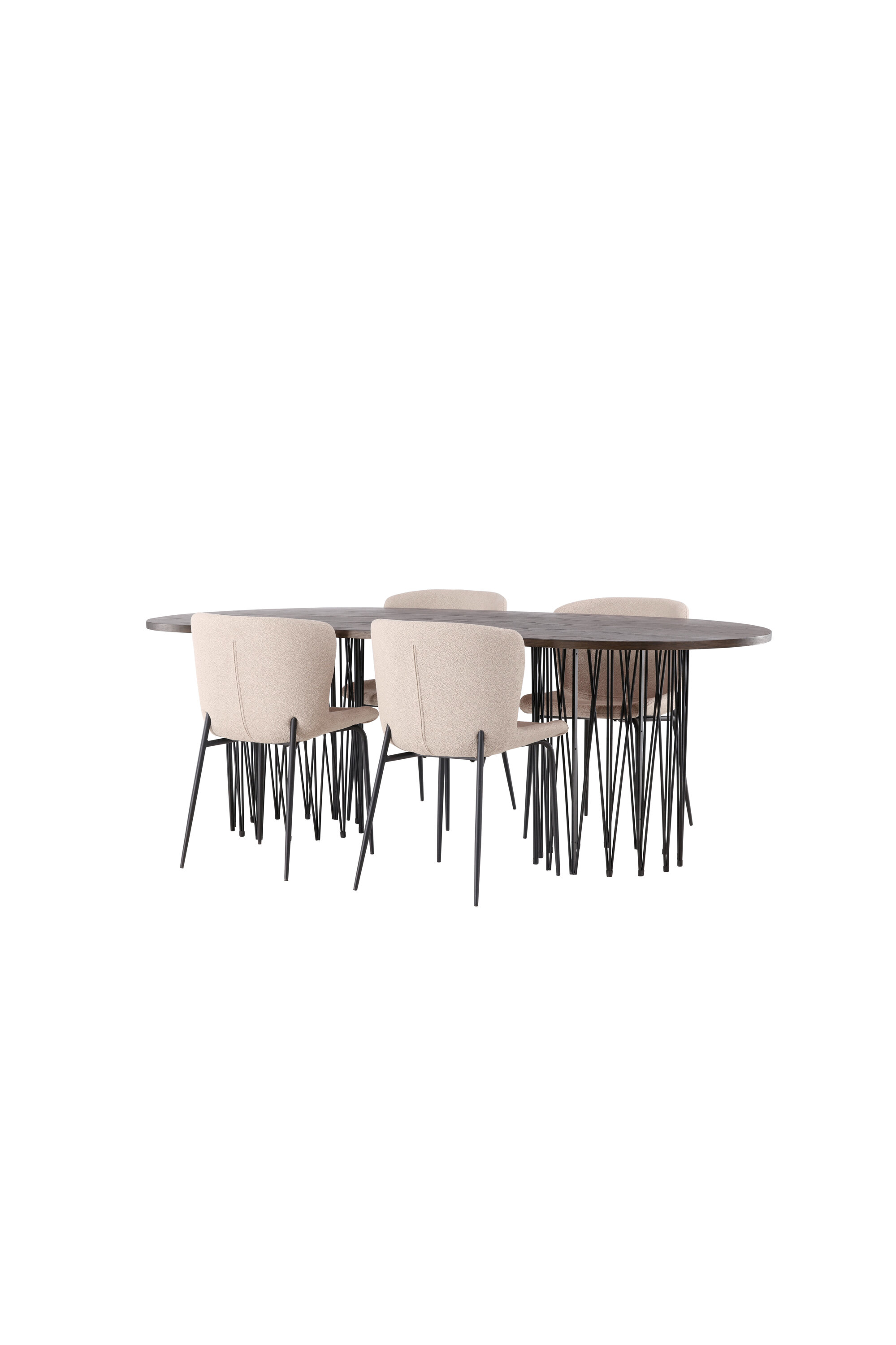Tere tulemast koju võluvasse keskpunkti! Meie ovaalne söögilaud Stone avaldab muljet oma moeteadliku disainiga. Laual on ilus pruuni värvi spooniga MDF lauaplaat ja kaks mustast metallist dekoratiivset silindrilist raami. Siin koos Modesto sarja moeteadlike söögitoolidega. Tool on täielikult polsterdatud halli karvakangaga ja stiilsed kitsad mustast metallist toolijalad. Kergelt ümar seljatugi ja polsterdatud istmepadi pakuvad lisamugavust ja pikendavad söögilaua ümber mõnusaid eineid. Istuge mugavalt koos sõprade ja perega! Laua mõõdud: 220x100cm.