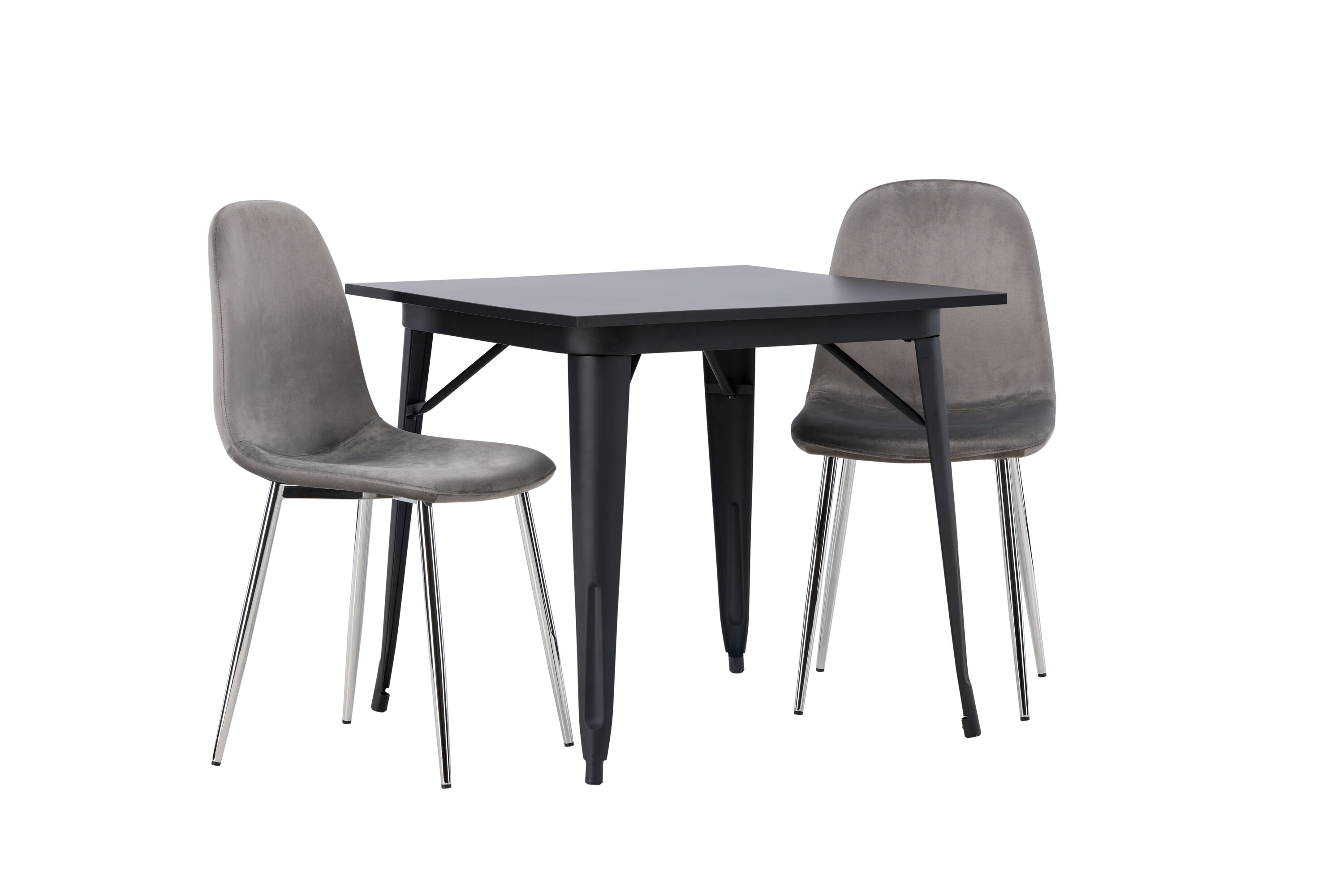 Sisusta meeldivates värvides! Meie kandiline söögilaud Tempe on kena suuruse ja trendika skandinaavialiku disainiga. Valmistatud mustast MDF-ist lauaplaadiga ja mustast metallist lauajalad. Siin moodsas kombinatsioonis Eva sarja hallide söögitoolidega. Toolil on täielikult polsterdatud kroommetallist jalad, kergelt ümardatud seljatugi ja siledast hallist sametkangast iste ning pehme polsterdus lisamugavuse tagamiseks. Siit saate sametise pilgupüüdja! Laua mõõdud: 80x80cm.