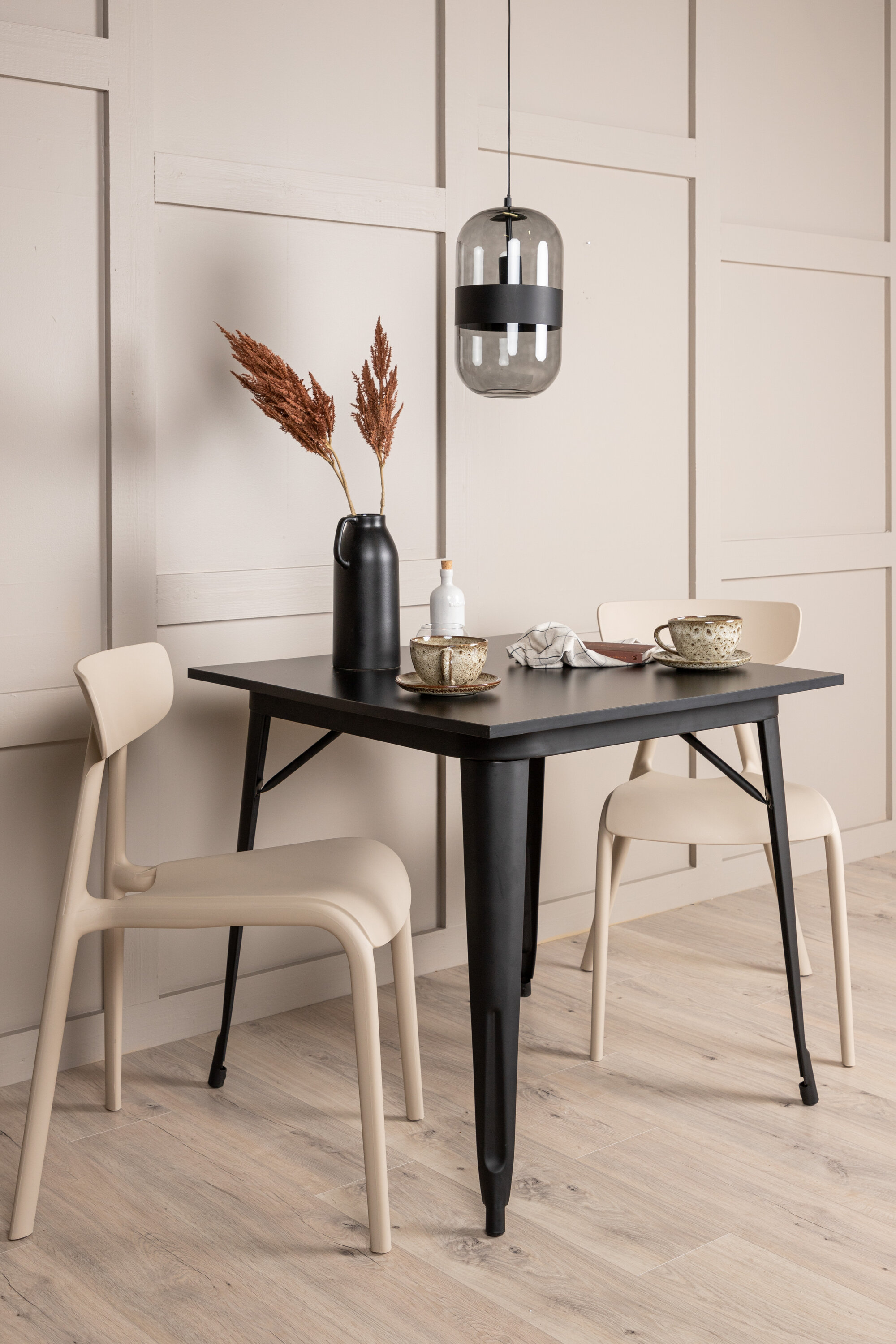Sisusta elutuba nutikalt ja kutsuvalt koos trendika söögigrupiga! Tempe söögilaual on skandinaavialik disain sirgete põhjamaiste kujunditega, mis peavad vastu ajaproovile. Valmistatud mustast MDF-st kandilise lauaplaadiga ja mustast metallist jalad. Siin koos 2 söögitooliga Ursholmen sarjast. Valmistatud pehme beeži värvi vastupidavast plastikust, mida on lihtne muu sisustusega sobitada. Toolil on korralik seljatugi, veidi sügavam iste ja veidi laienevad Skandinaavia disainiga jalad. Ideaalne söögigrupp väiksemasse kööki!