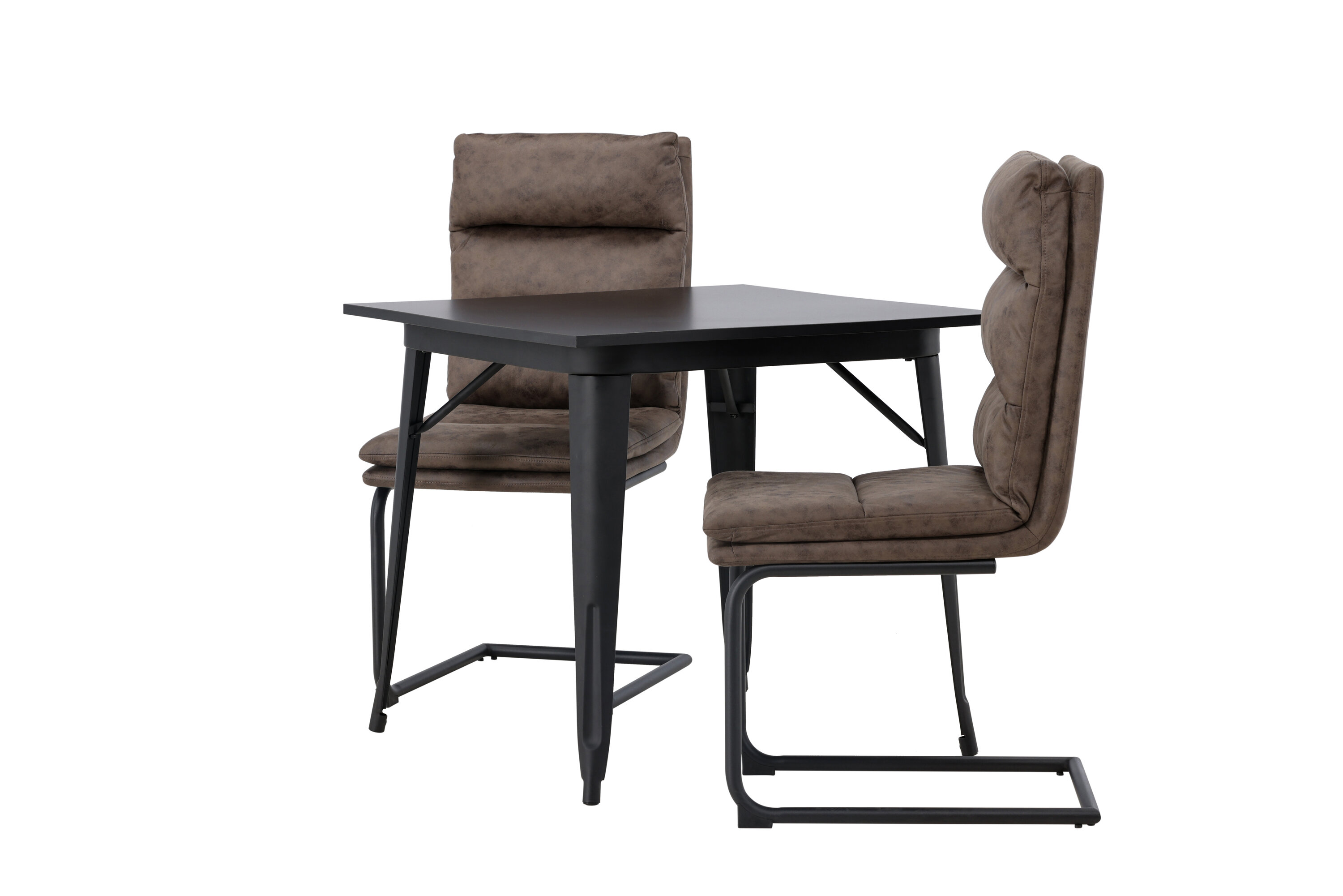 Siin tahad lihtsalt tundide kaupa mugavalt istuda! Meie kandiline söögilaud Tempe on kena suuruse ja trendika skandinaavialiku disainiga. Valmistatud mustast MDF-ist lauaplaadiga ja mustast metallist lauajalad. Siin koos meie uskumatult mugavate pruunide söögitoolidega Zizo seeriast. Sellel toolil on täielikult polsterdatud pruun mikrokiust iste, mis on täiendava mugavuse tagamiseks polsterdatud pehmete patjadega. Toolijalad on mustast metallist minimalistlikud. Vältige kompromisse stiili ja mugavuse vahel! Laua mõõdud: 80x80cm.