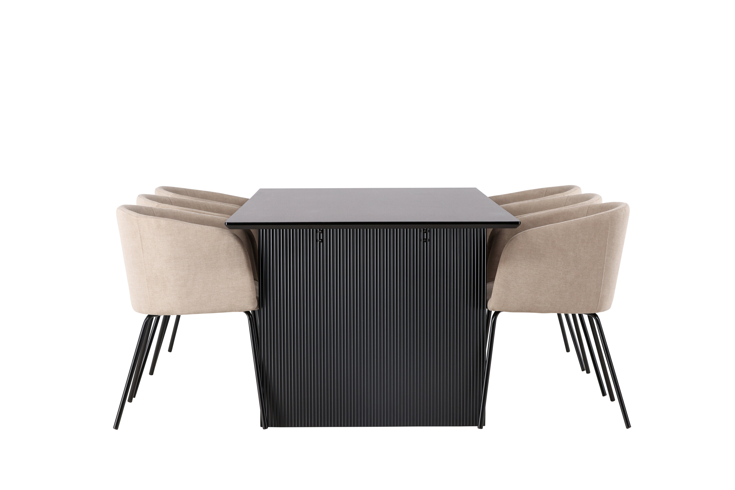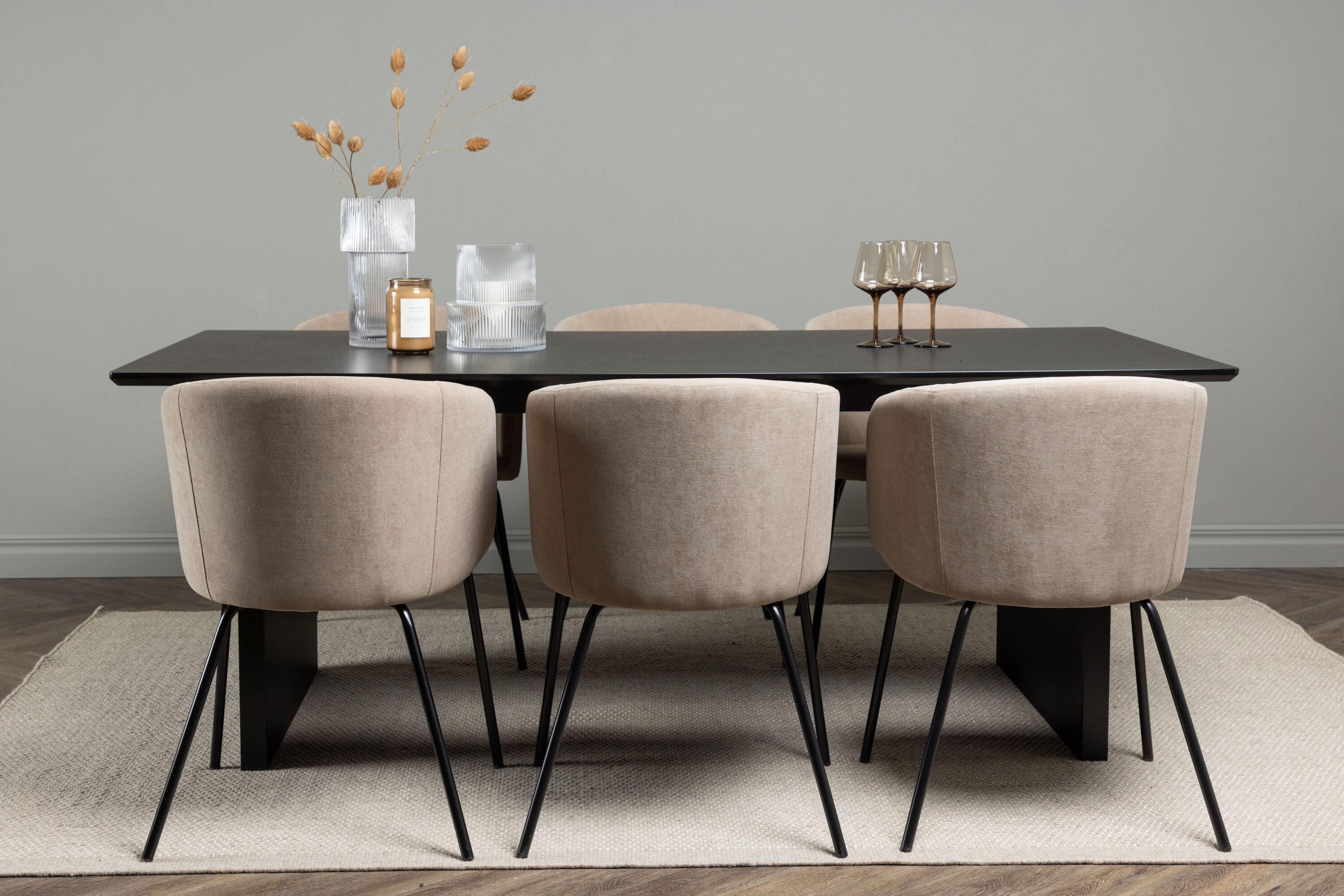 Fantastiline söögigrupp kõigi õigete funktsioonidega! Ristkülikukujuline söögilaud Vail on sirgete põhjamaiste vormidega ja valmistatud vastupidavast tahmast musta värvi MDF-ist. Lauaplaat on õhuke ristkülikukujulise disainiga ja balansseerib kahe tugeva puitlauaga, mis moodustavad aluse. Siin koos meie mugavate söögitoolidega Berit. Toolil on täielikult polsterdatud disain, kergelt ümardatud seljatoe ja istmega polüsterlinast ning kitsad mustast rauast jalad. Siit saate luksusliku ja kutsuva söögigrupi! Laua mõõdud: 200x100cm.