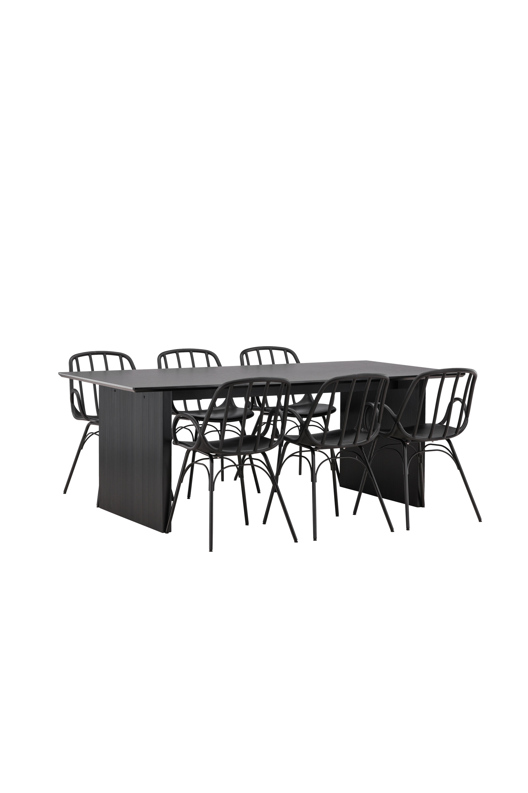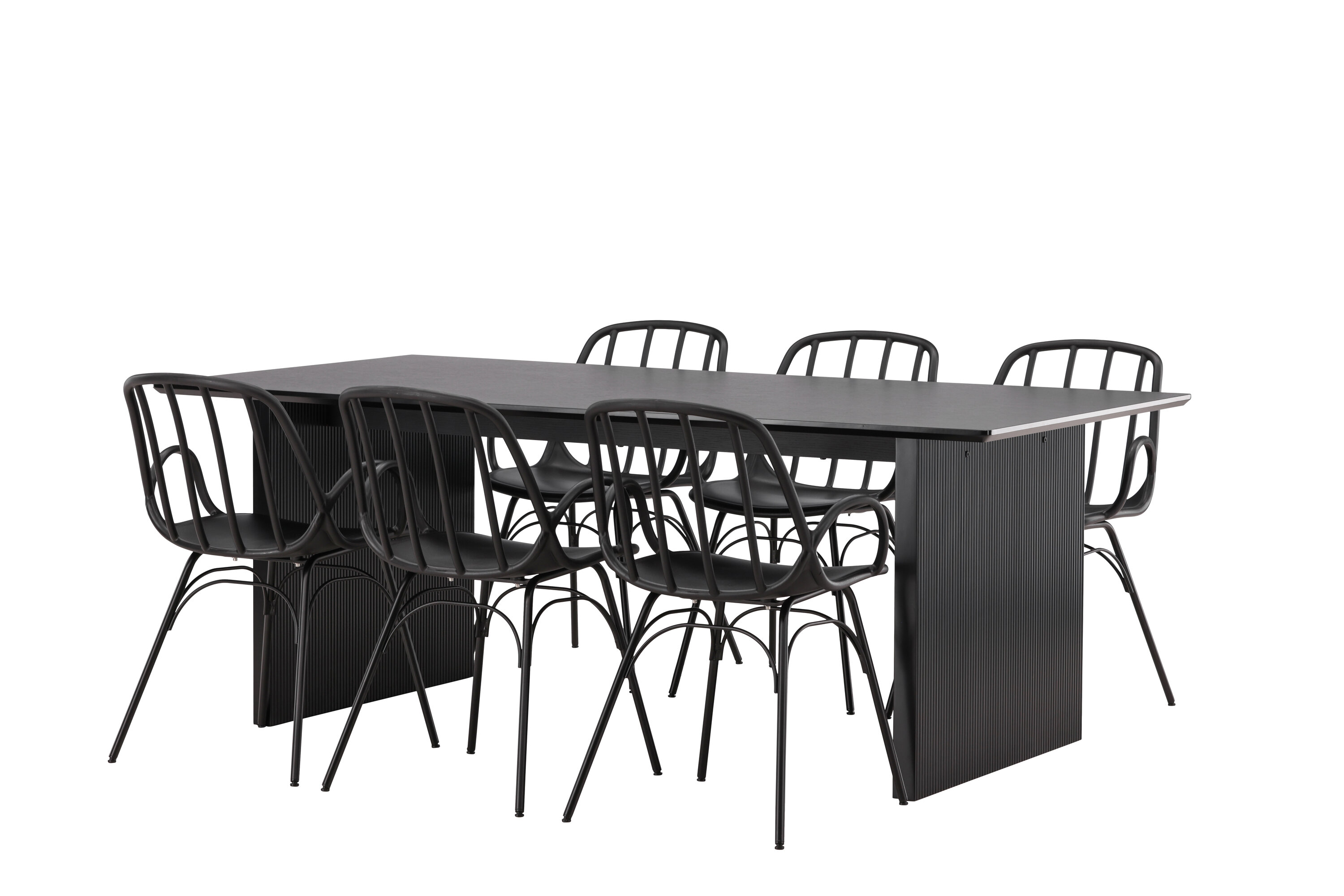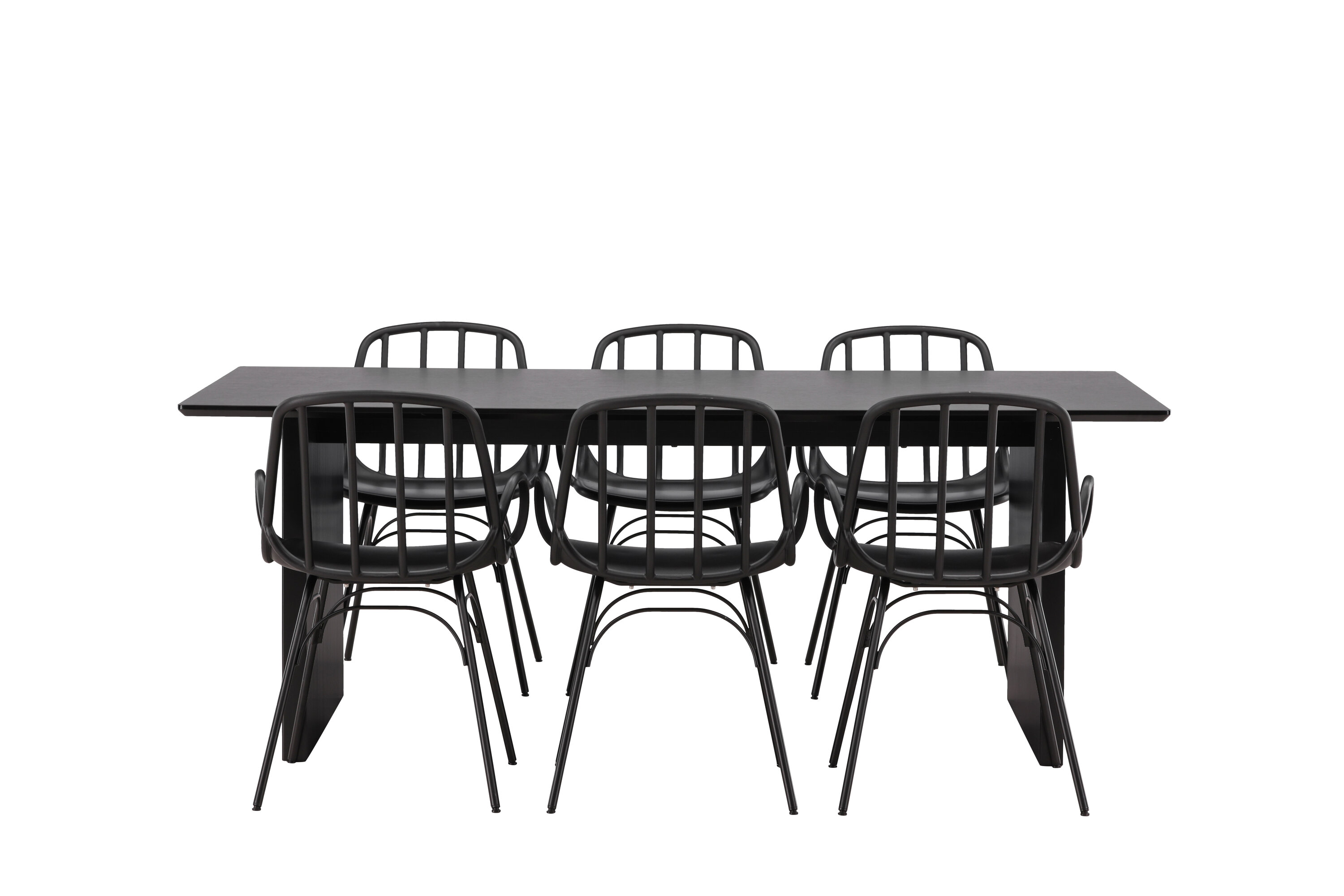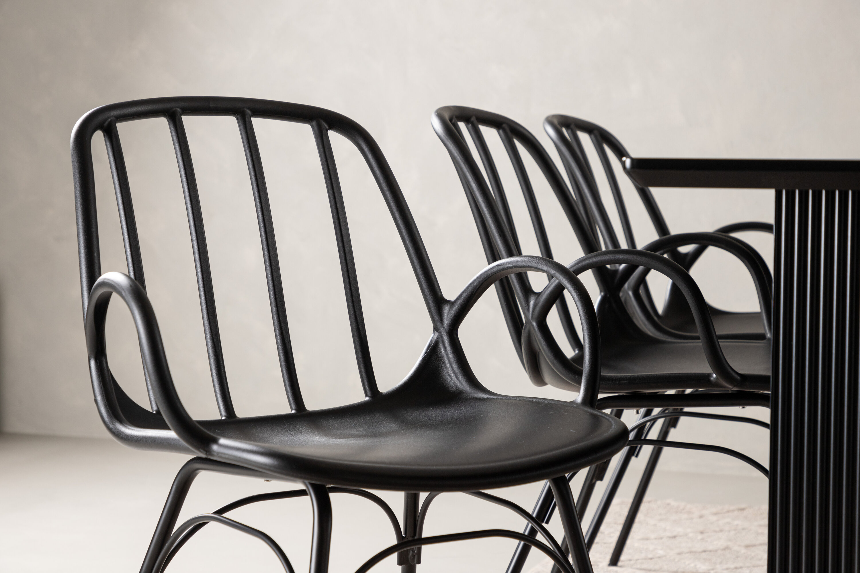 Kõik koos mustanahaline söögigrupp, mis peab ajaproovile vastu! Vail söögilauad on sirgete põhjamaiste vormidega ja valmistatud vastupidavast mustast MDF-ist – nii stiilne kui praktiline. Lauaplaat on õhuke ristkülikukujulise disainiga ja balansseerib kahe tugeva puitlauaga, mis moodustavad veermiku. See sobib ideaalselt meie kaasaegsete Dyrön seeria söögitoolidega. Tool on nii stiilne kui ka praktiline, valmistatud mustast plastikust ja terasest. Toolil on integreeritud käetoed ja kergelt ümardatud seljatoe soonik. Kutsuge oma lähedased külla mitmeks seltskondlikuks hetkeks!