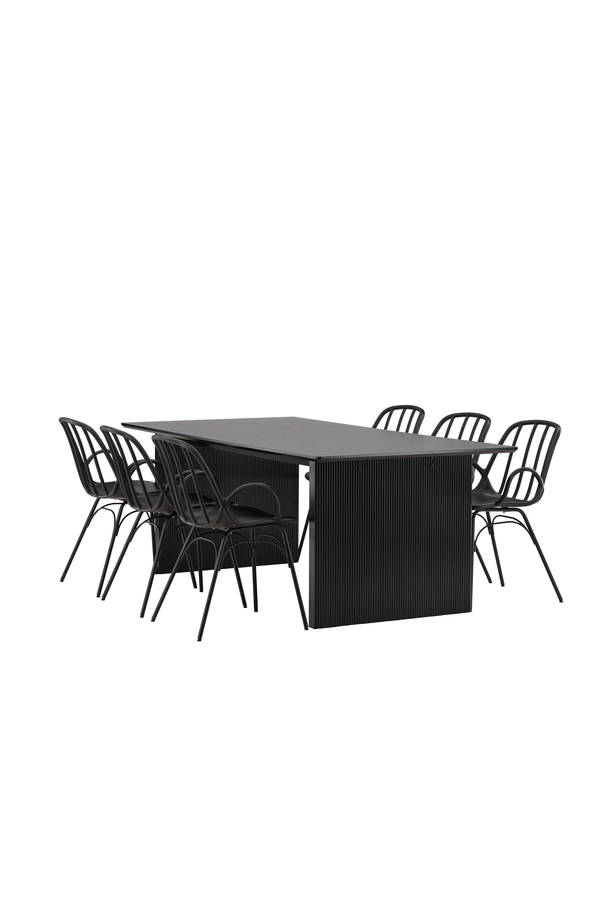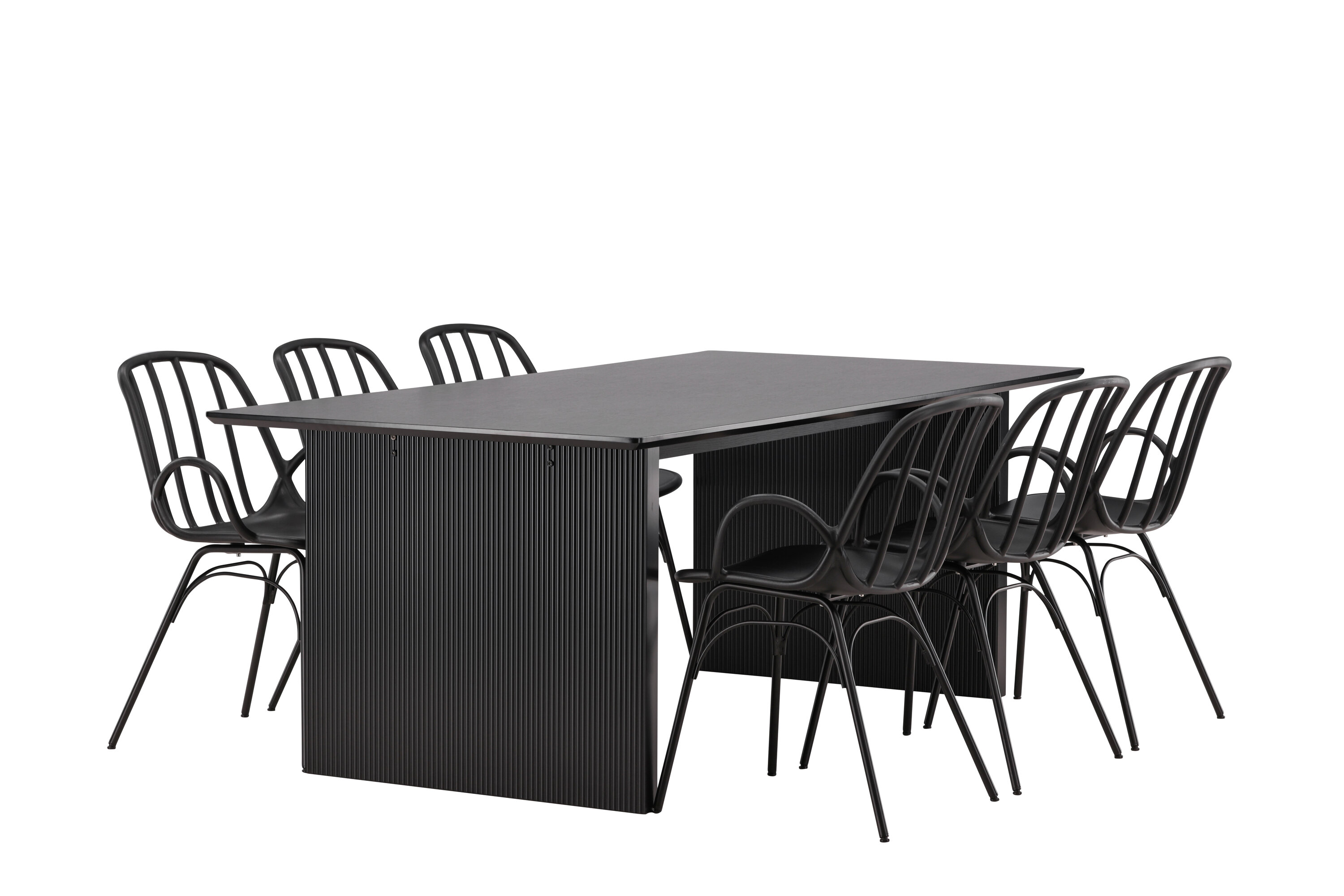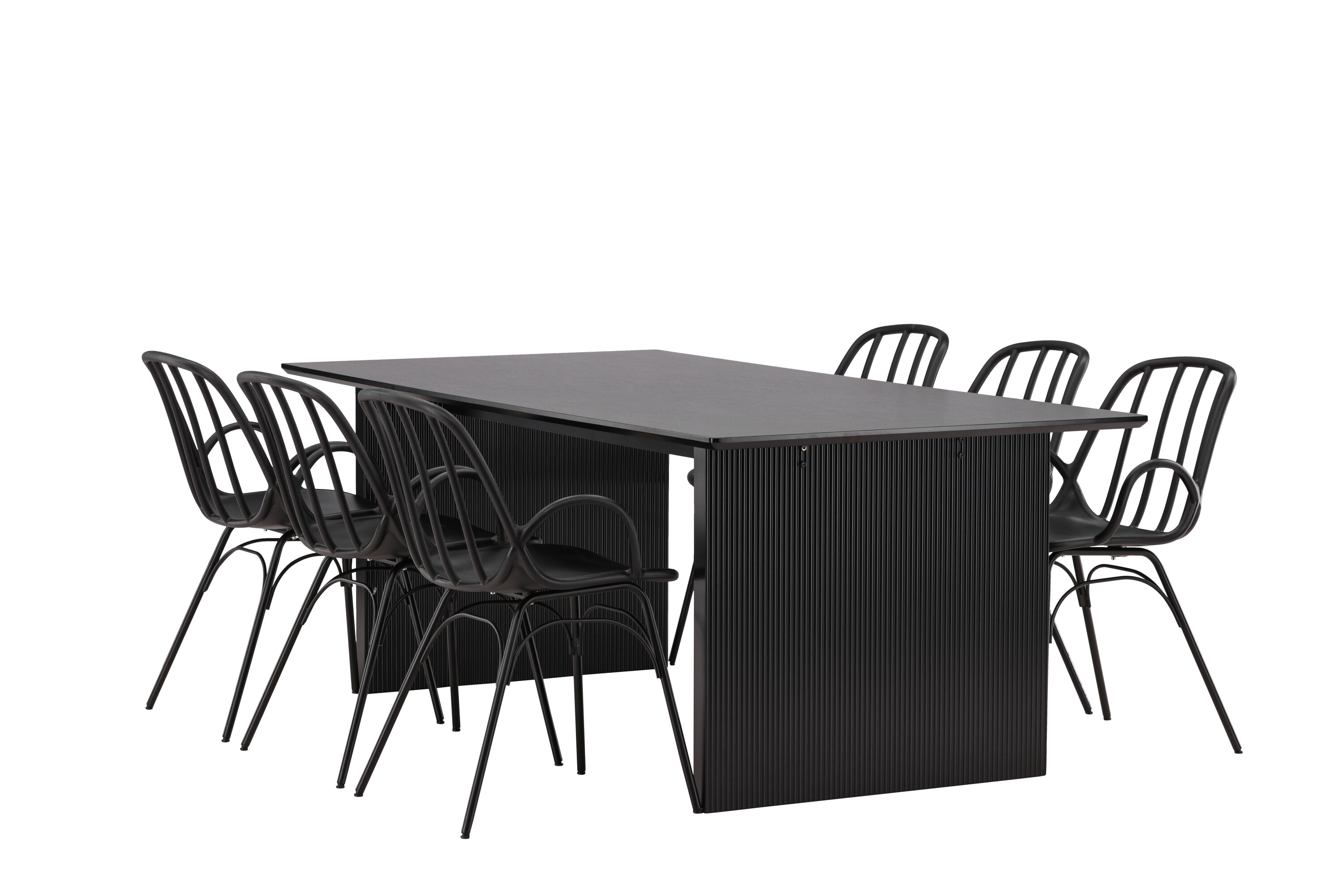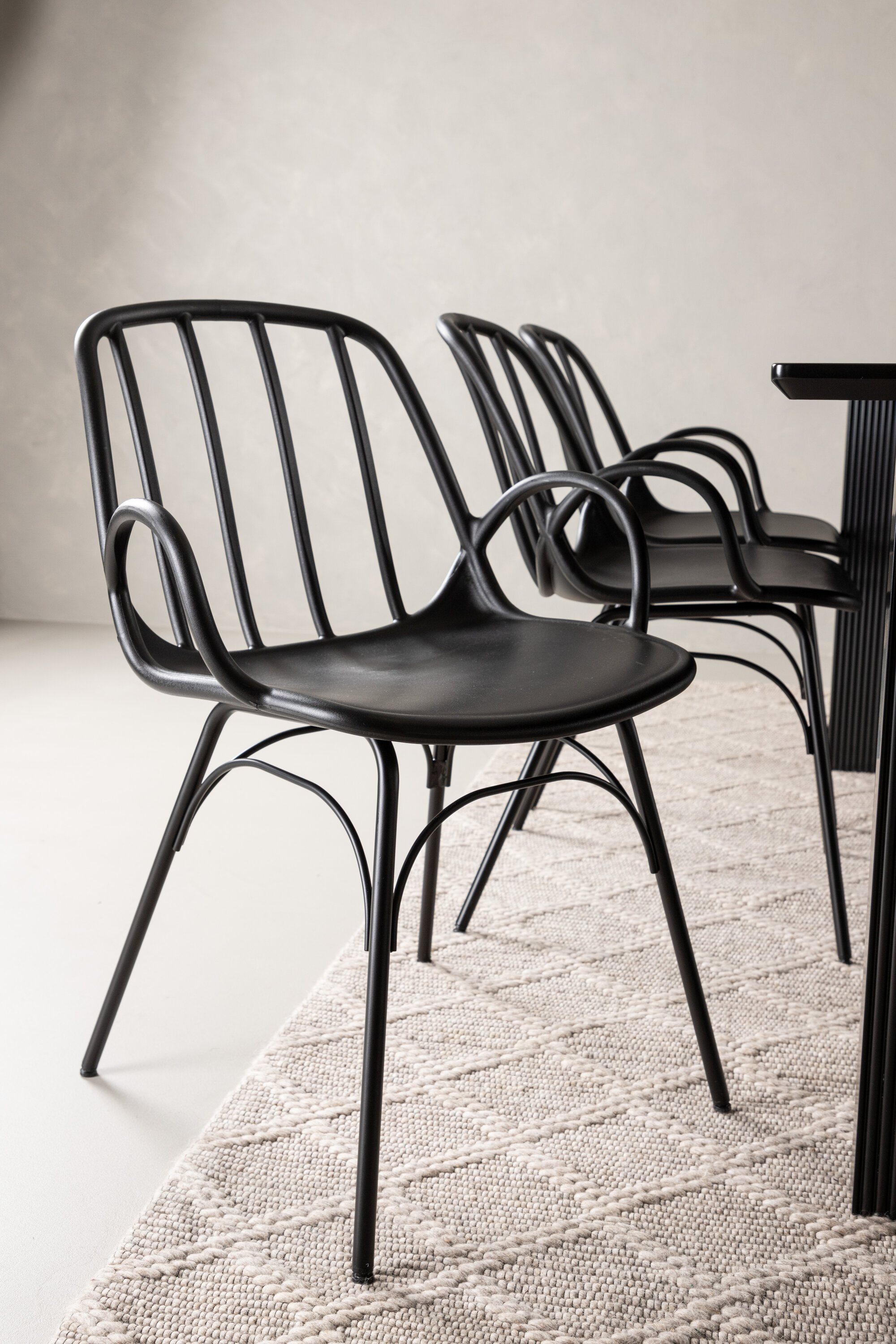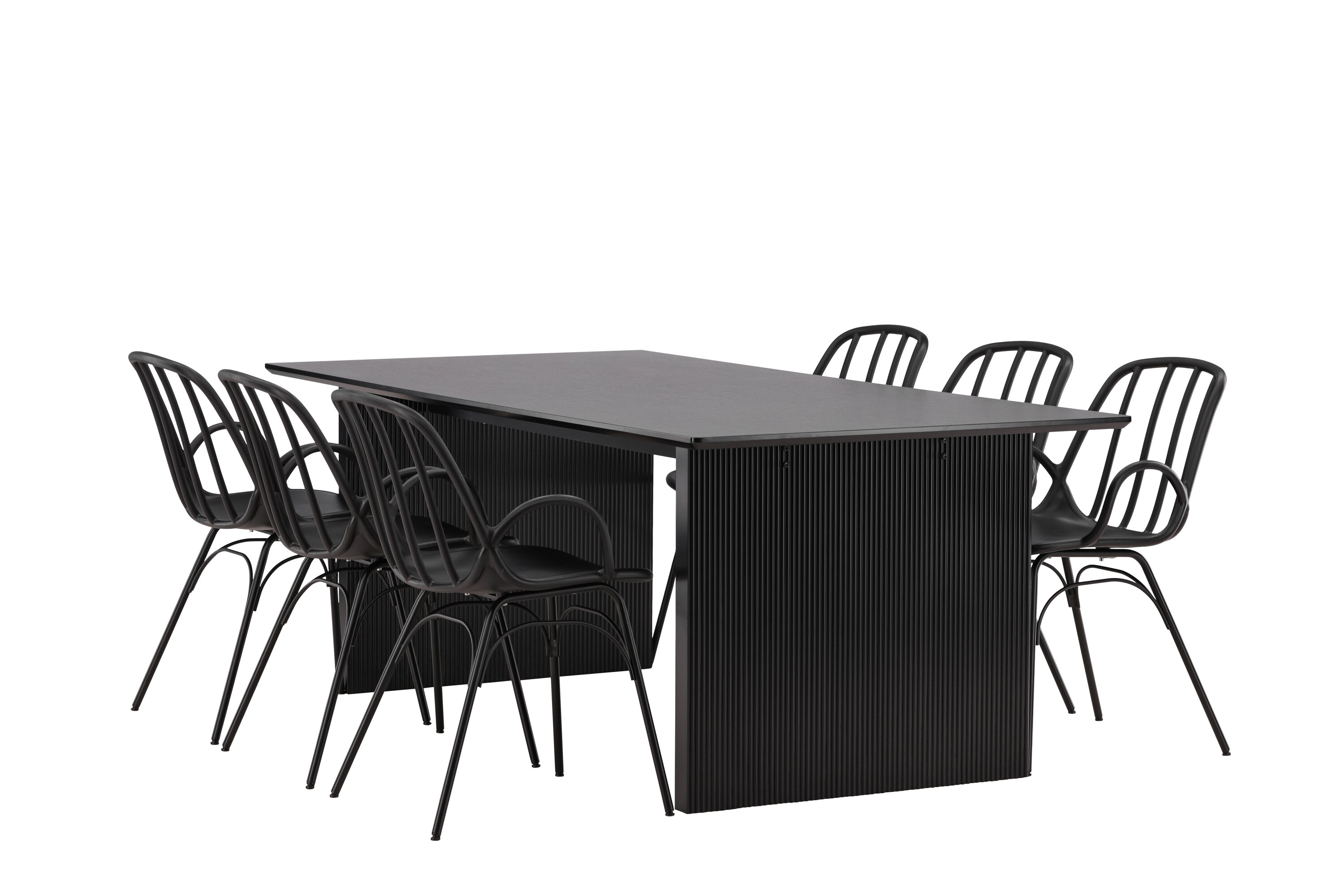Kõik koos mustanahaline söögigrupp, mis peab ajaproovile vastu! Vail söögilauad on sirgete põhjamaiste vormidega ja valmistatud vastupidavast mustast MDF-ist – nii stiilne kui praktiline. Lauaplaat on õhuke ristkülikukujulise disainiga ja balansseerib kahe tugeva puitlauaga, mis moodustavad veermiku. See sobib ideaalselt meie kaasaegsete Dyrön seeria söögitoolidega. Tool on nii stiilne kui ka praktiline, valmistatud mustast plastikust ja terasest. Toolil on integreeritud käetoed ja kergelt ümardatud seljatoe soonik. Kutsuge oma lähedased külla mitmeks seltskondlikuks hetkeks!