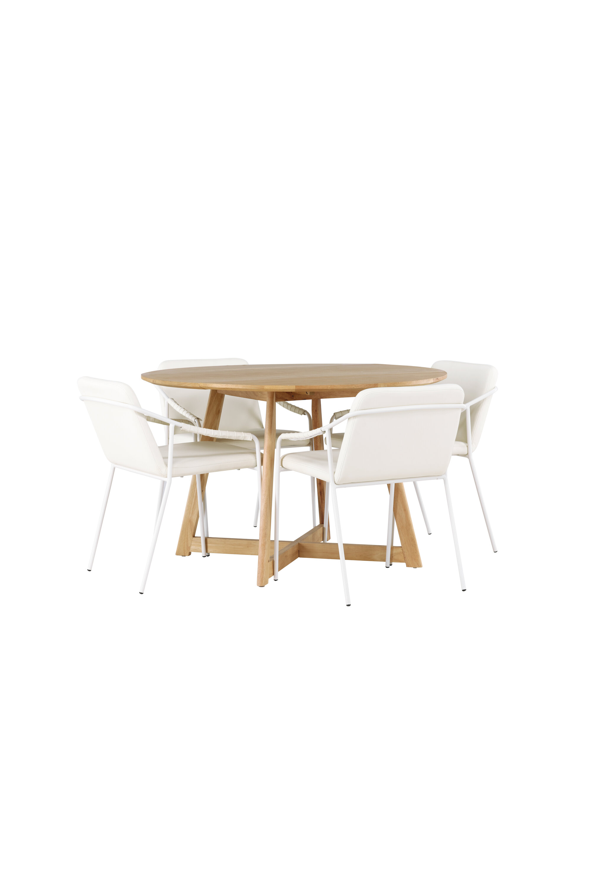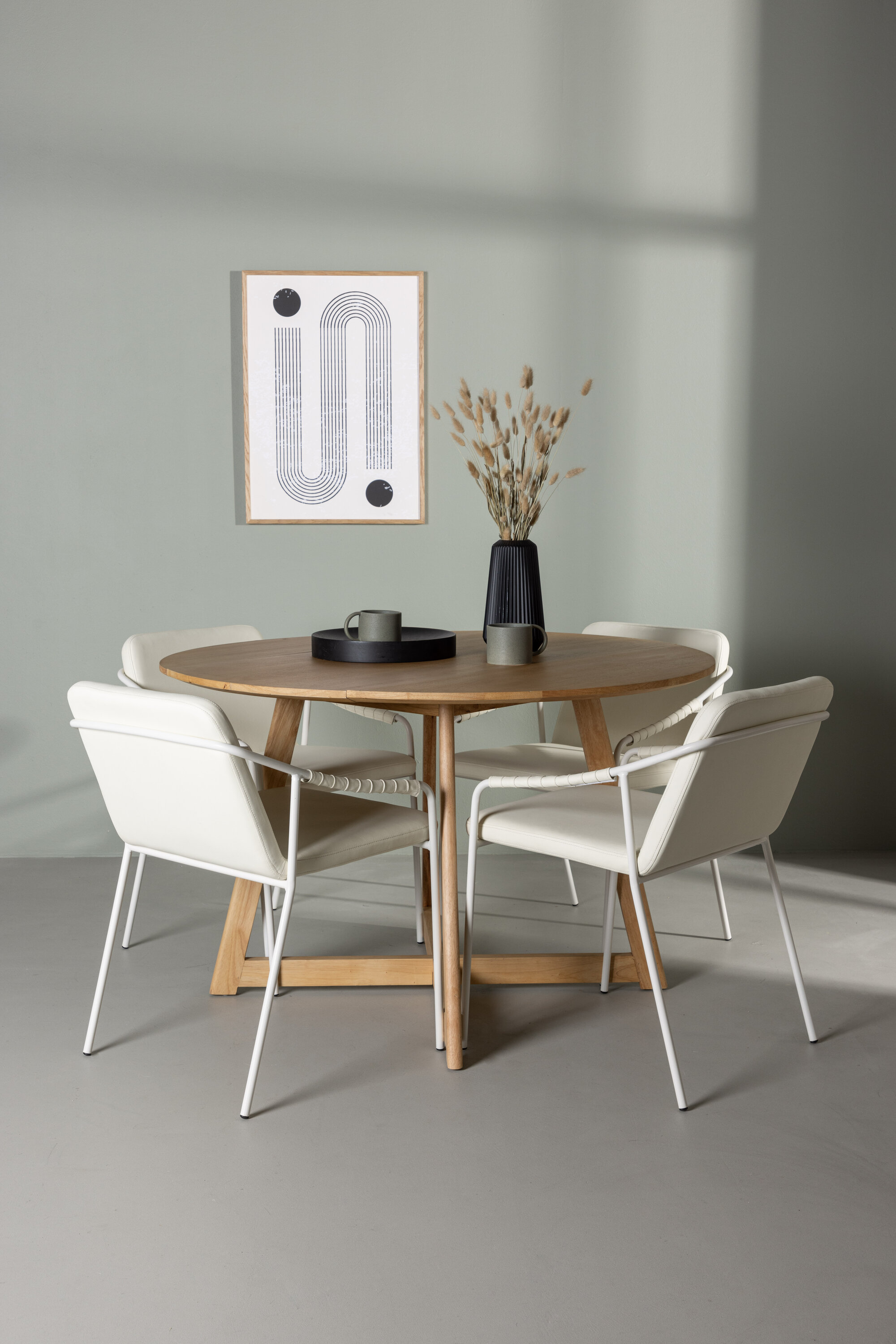 Elegantse kuju ja nutika lauaplaadiga ümmargune söögilaud Yakidon saab kiiresti kodu lemmikuks, mida saab kohandada vastavalt oma vajadustele. Kaks kokkupandavat otsa annavad teile paindlikkuse, et majutada rohkem külalisi või luua vajadusel lisaruumi. Selle õrnalt laienevad jalad moodustavad põrandale kauni ristmustri, andes lauale modernse ja trendika ilme. Valmistatud kvaliteetsest tammelaadse viimistlusega MDF-ist ja kummipuidust.