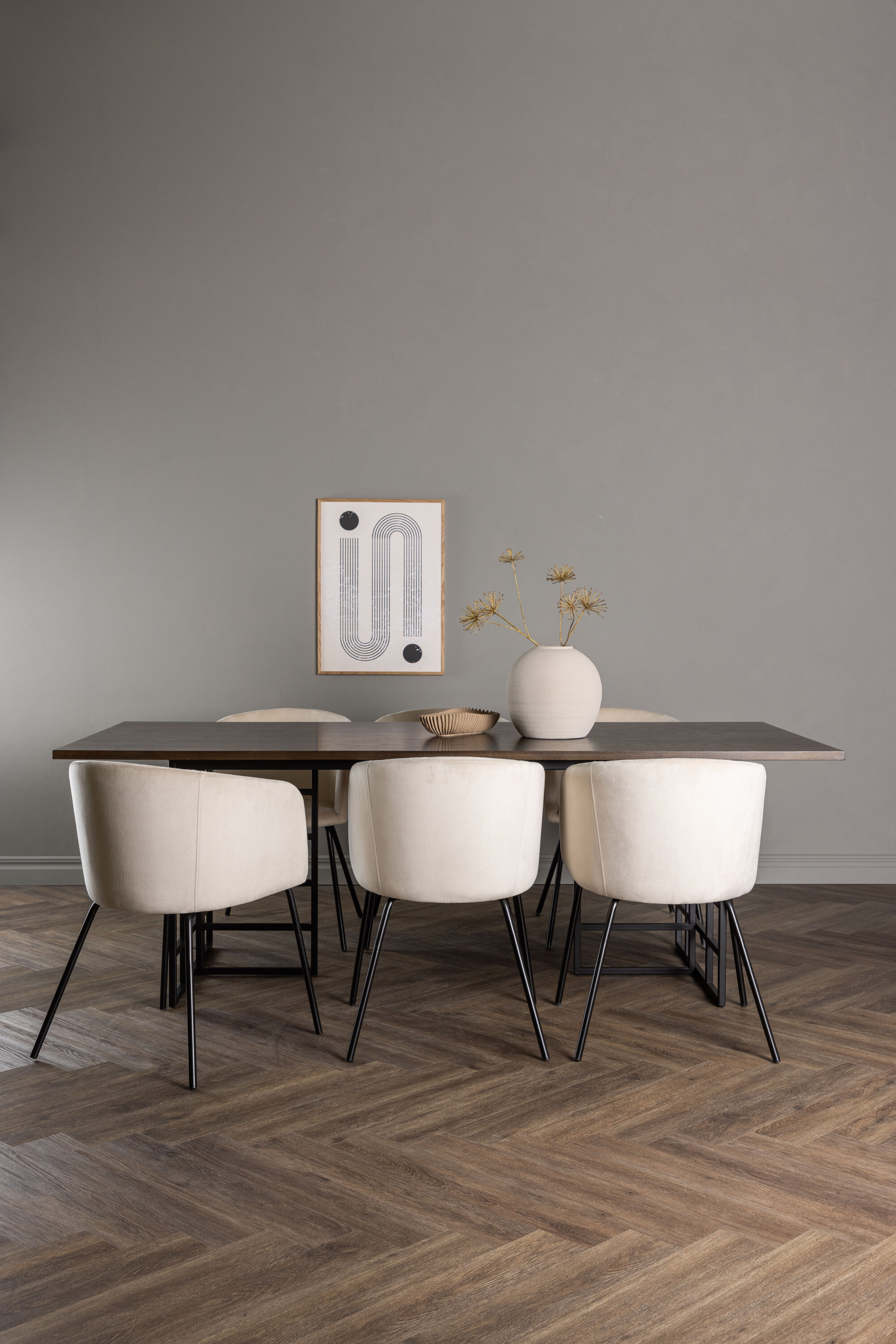 Koos meie Beriti sarja elegantsete söögitoolidega on teie söögikomplekt terviklik. Toolil on täielikult polsterdatud disain, kergelt ümardatud seljatugi ning sametkangast ja polüesterlinast istmepadja. Õhukesed mustad rauast toolijalad lisavad elegantset puudutust ja täiendavad suurepäraselt söögilaua disaini. Mida veel võiks soovida?