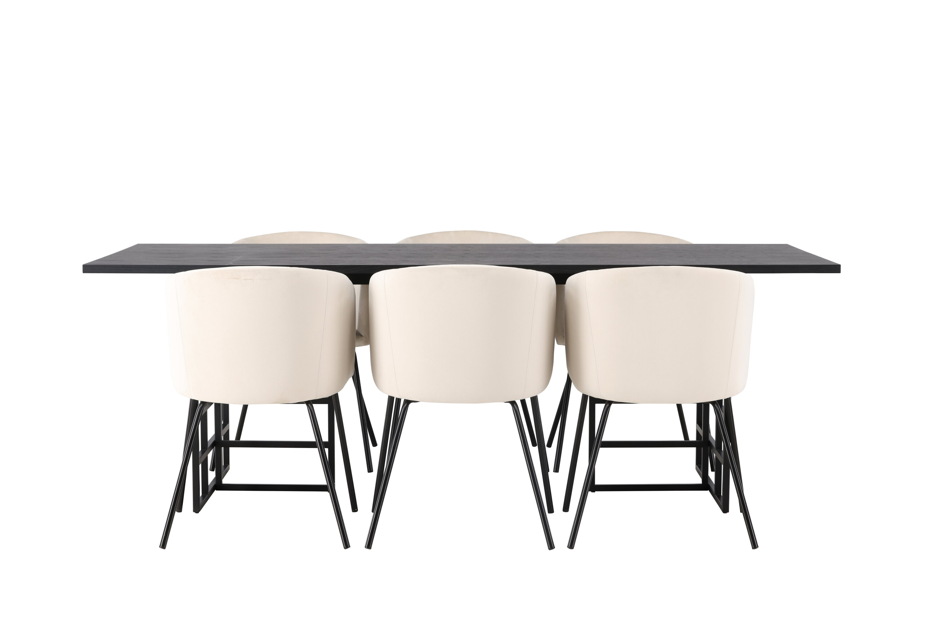 Tööstusliku söögilaua täienduseks oleme selle sidunud Beriti sarja elegantsete söögitoolidega. Nendel toolidel on täielikult polsterdatud disain, kergelt ümardatud seljatugi ning sametkangast ja polüesterlinast istmepadja. See on nagu istumine pehmel luksuse ja mugavuse pilvel. Õhukesed mustad rauast toolijalad lisavad tooli disainile modernset puudutust ja täiuslikku tasakaalu.