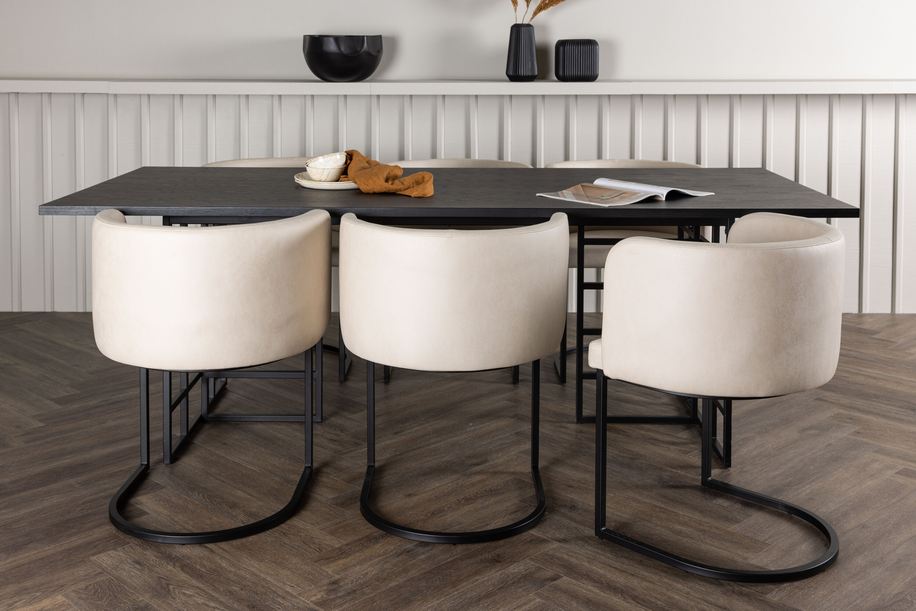 Koos ristkülikukujulise söögilauaga Ystad on meil kaasaegsed Simrishamni seeria söögitoolid. Sellel toolil on täielikult polsterdatud beežist TC-kangast iste ja ümar seljatugi, mis tagab optimaalse mugavuse söögi ajal. Tooli minimalistlik must terasraam annab stiilse kontrasti ja sobib ideaalselt lauaga.