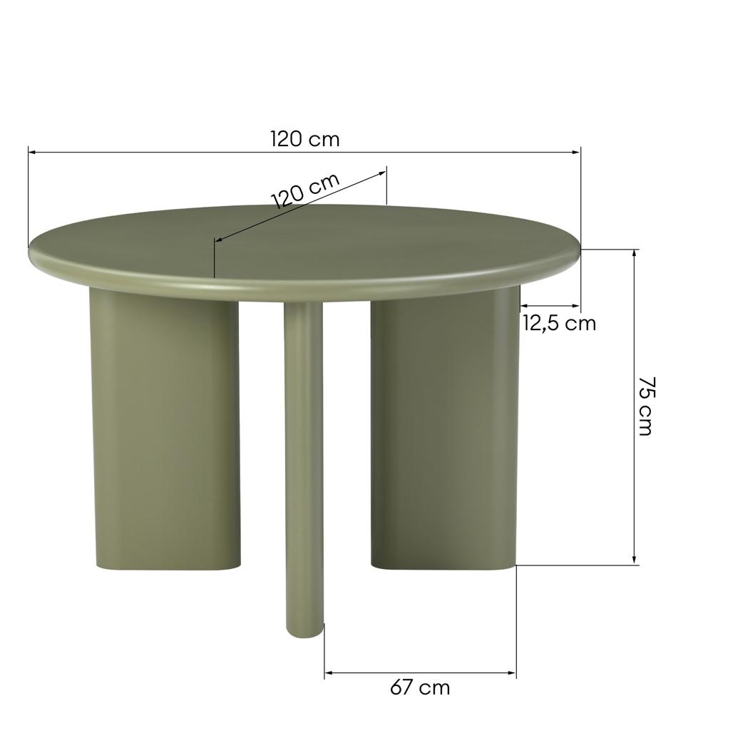 Söögilaud 120 cm MOLIQ ümmargune oliivroheline matt