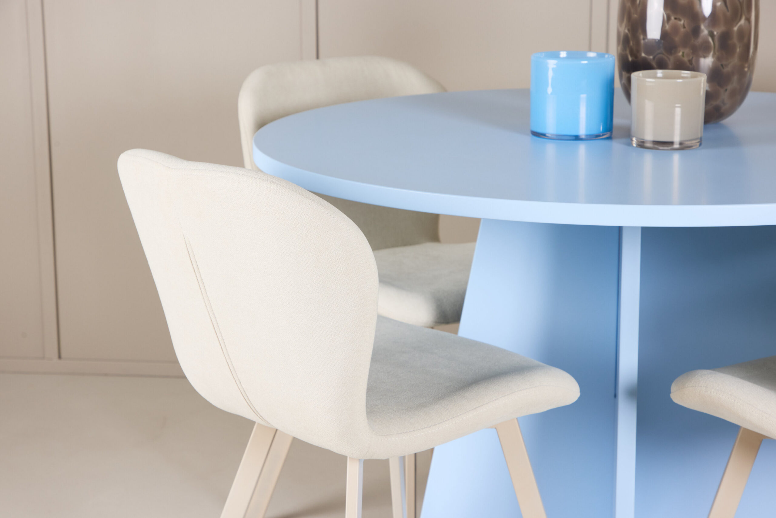 Lilja söögitool ja Bootcut söögilaud loovad koos harmoonilise tasakaalu klassikalise elegantsi ja kaasaegse mängulisuse vahel. Lilja neutraalne beež toon täiendab Bootcuti värsket beebisinist tooni, luues kutsuva ja inspireeriva keskkonna, kus stiil ja funktsioon kohtuvad. Las see kombinatsioon saab teie kodu südameks – ruumiks, kus saate nautida igat sööki ilusas ja harmoonilises õhkkonnas.