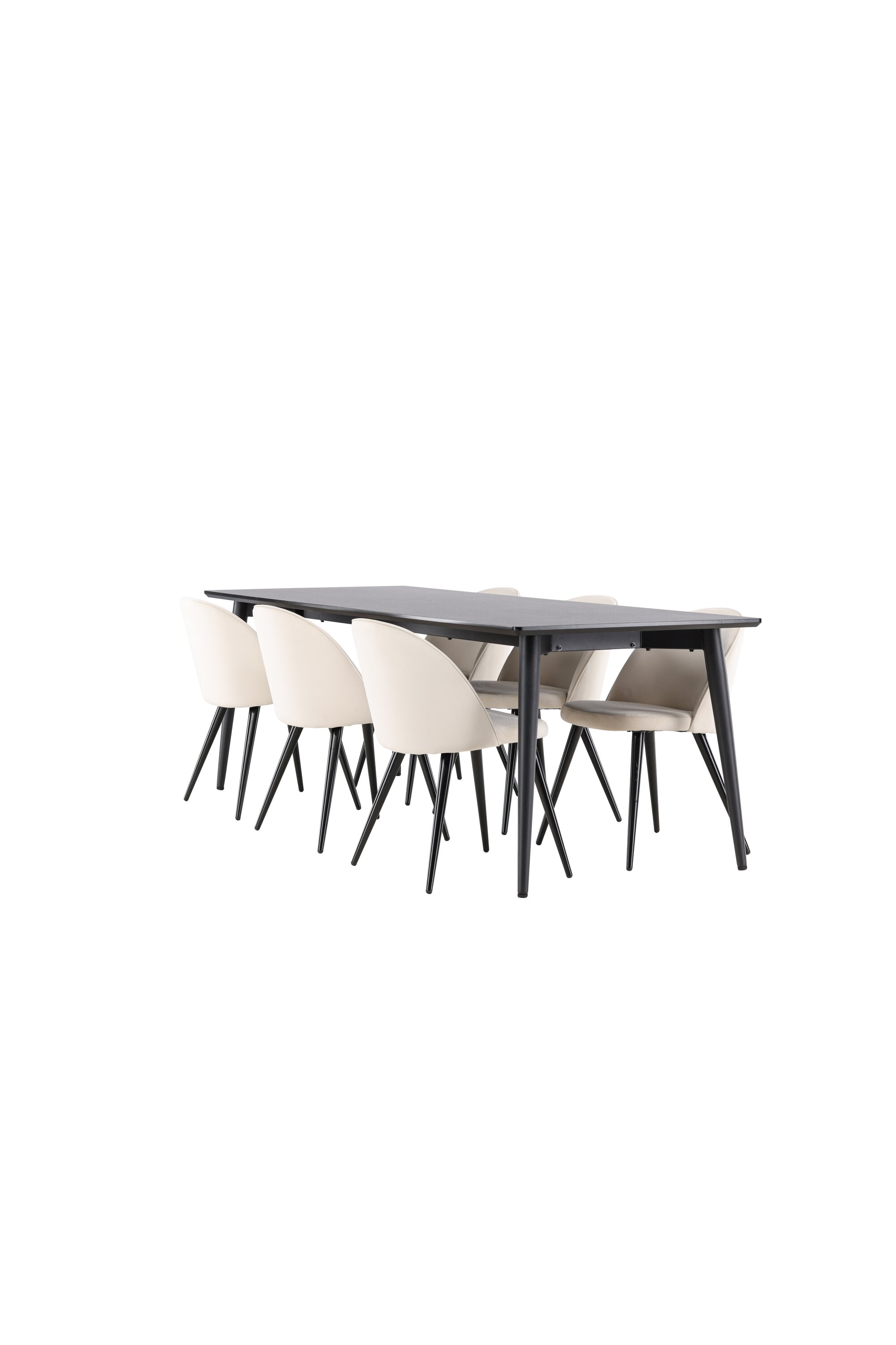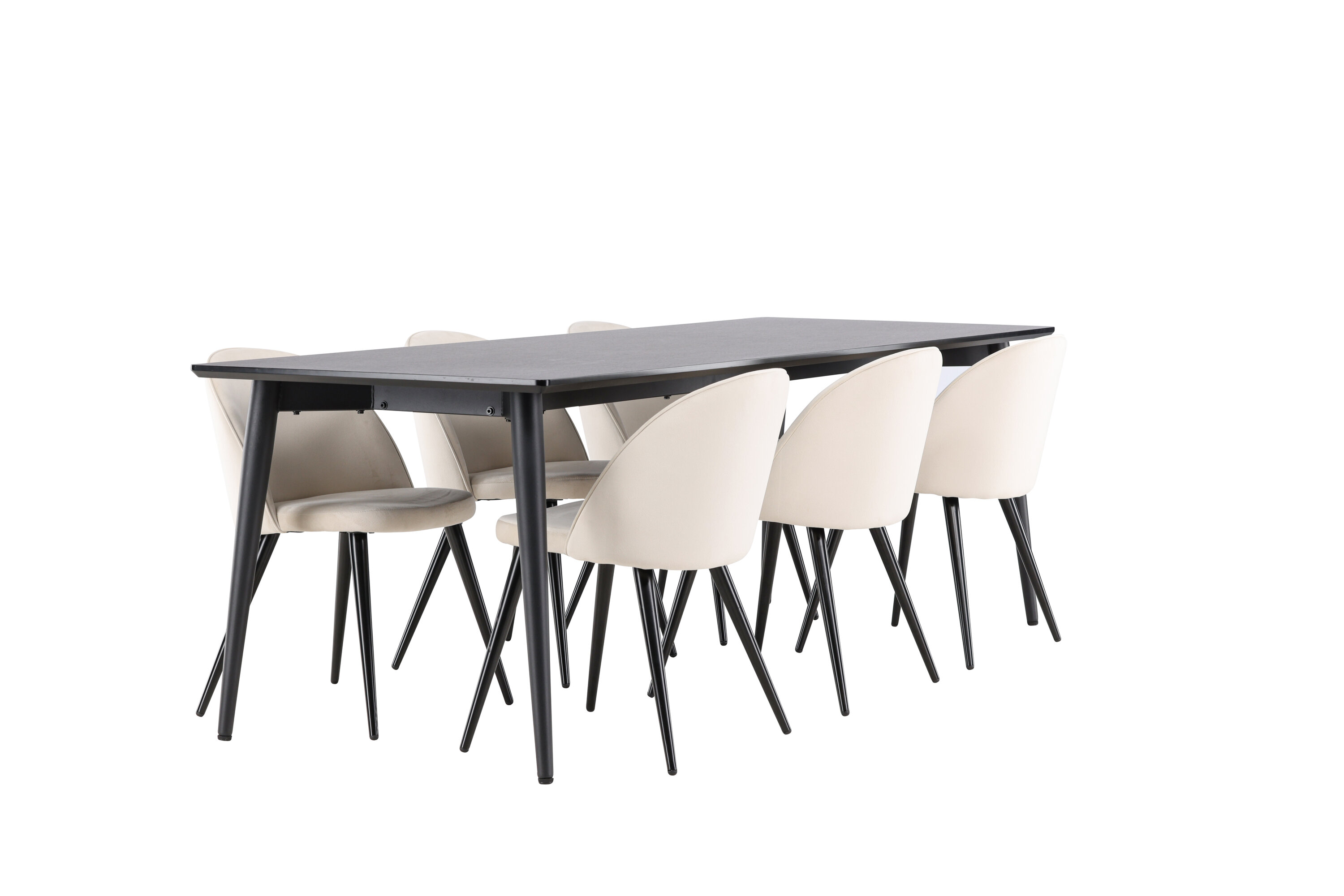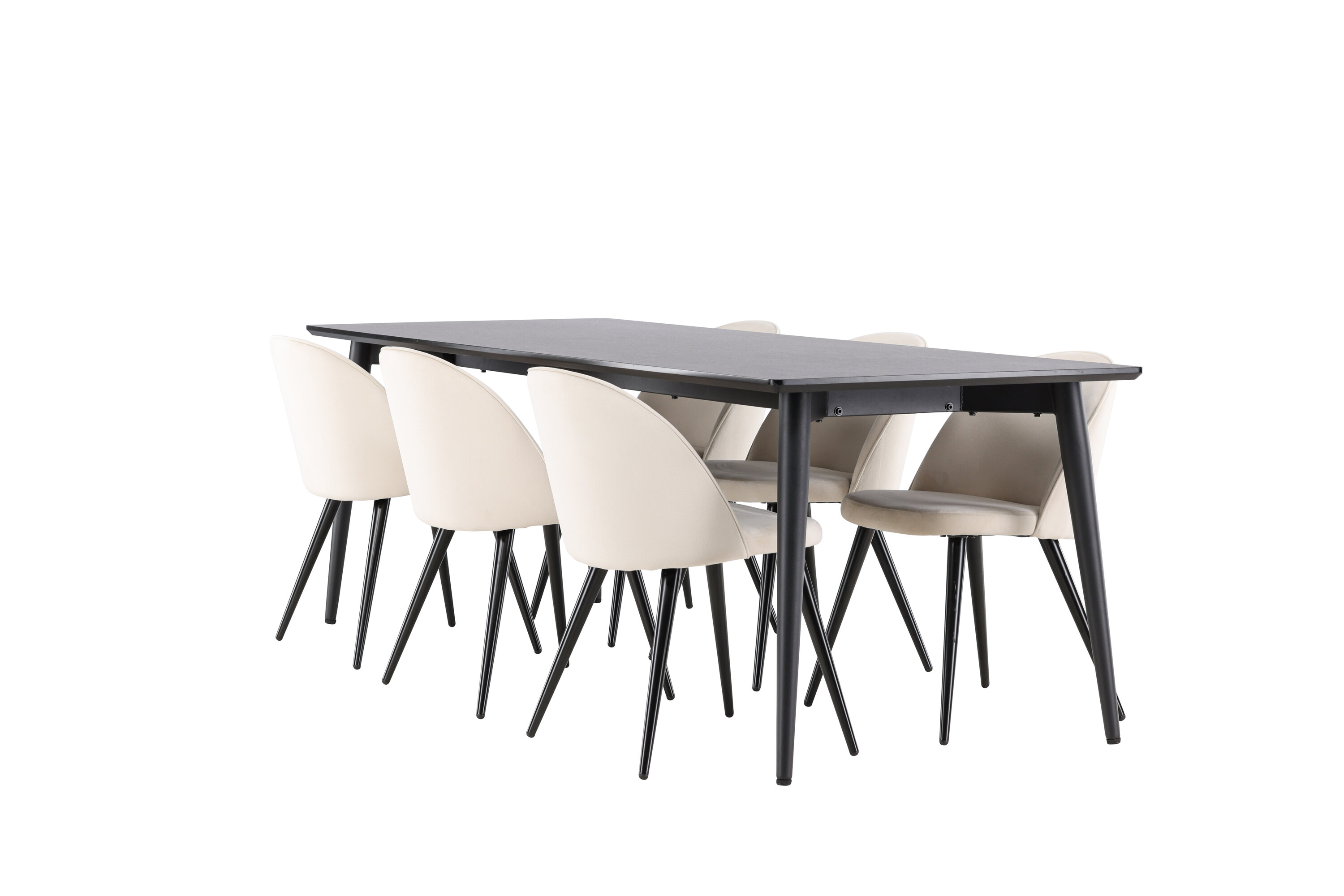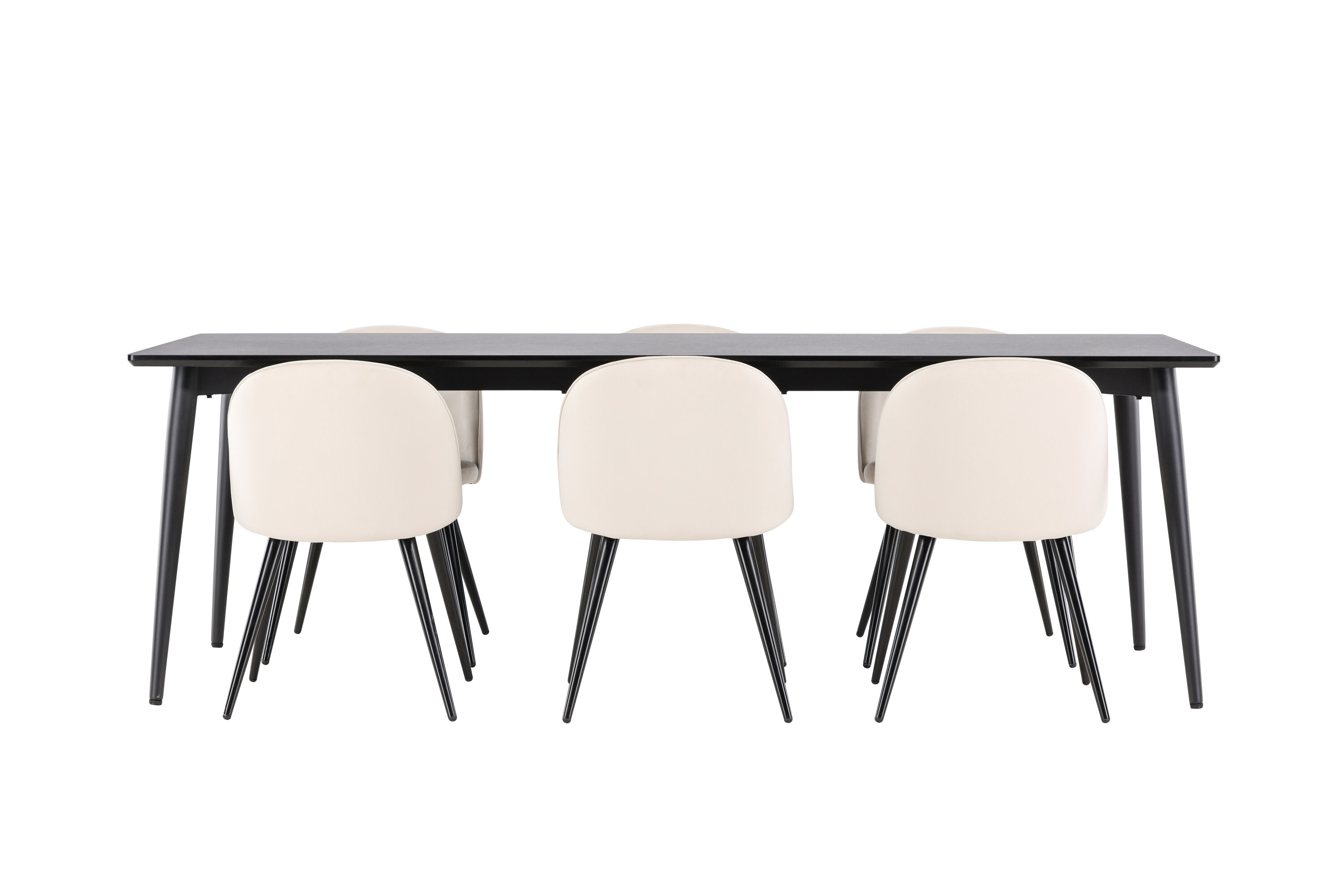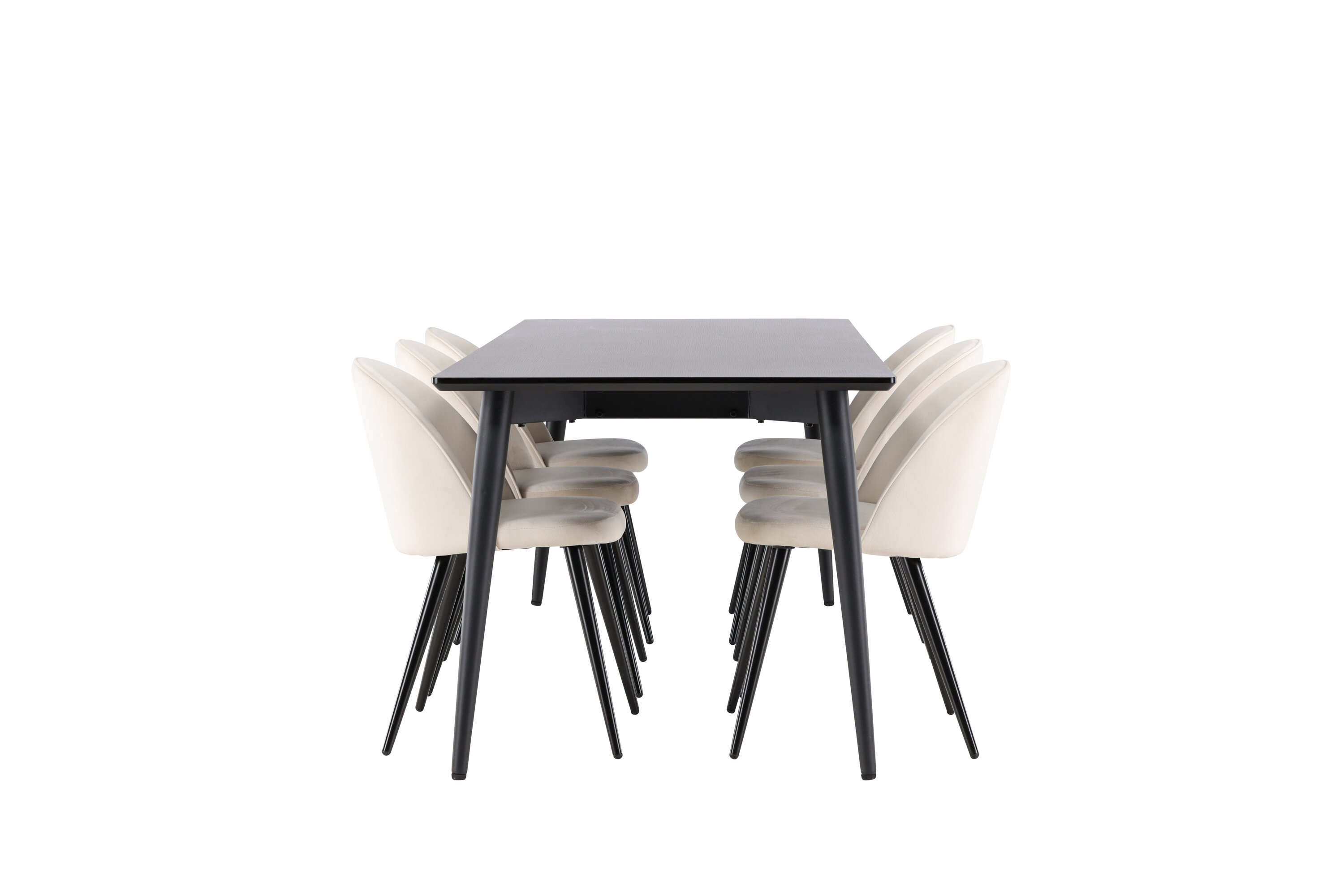 Muutke oma söögituba stiili ja mugavuse täiusliku kombinatsiooniga. Tutvustame söögikomplekti, mis ühendab moodsa elegantsi robustse disainiga – ideaalne lahendus nii igapäevaseks kui ka pidulikuks sündmuseks. Moodne tooliunistus Velvet sarjast stiilses beežis värvitoonis! Sellel söögitoolil on täielikult polsterdatud disain, mille seljatugi ja iste on kergelt ümardatud sametkangast ning jalad mustast pulbervärvitud metallist – tagatud nii mugav kui ka pilkupüüdev. Sisusta oma kodu süda kutsuvalt ja hubaselt ning naudi koos imelisi eineid! Avasta Ellis – vastupidav söögilaud, millest saab teie söögikeskkonna keskus. Oma musta värviga annab Ellis teie toale elegantse ja kaasaegse ilme. Laud on valmistatud terasest jalgade ja MDF lauaplaadiga, mis tagab ideaalse tasakaalu robustsuse ja stiili vahel. Suurte mõõtmetega 230×85 cm Ellis laud sobib suurepäraselt seltskondlikuks õhtusöögiks ning koosviibimiseks sõprade ja perega. Selle vastupidav konstruktsioon ja elegantne disain teevad sellest usaldusväärse mööblieseme, mis sobib igaks juhuks. Ükskõik, kas kasutate seda pereõhtusöögi nautimiseks või külaliste peole kutsumiseks, loob Ellis teie koju trendika ja stiilse atmosfääri. Täiustage oma söögituba elegantse ja vastupidava söögilauaga Ellis.