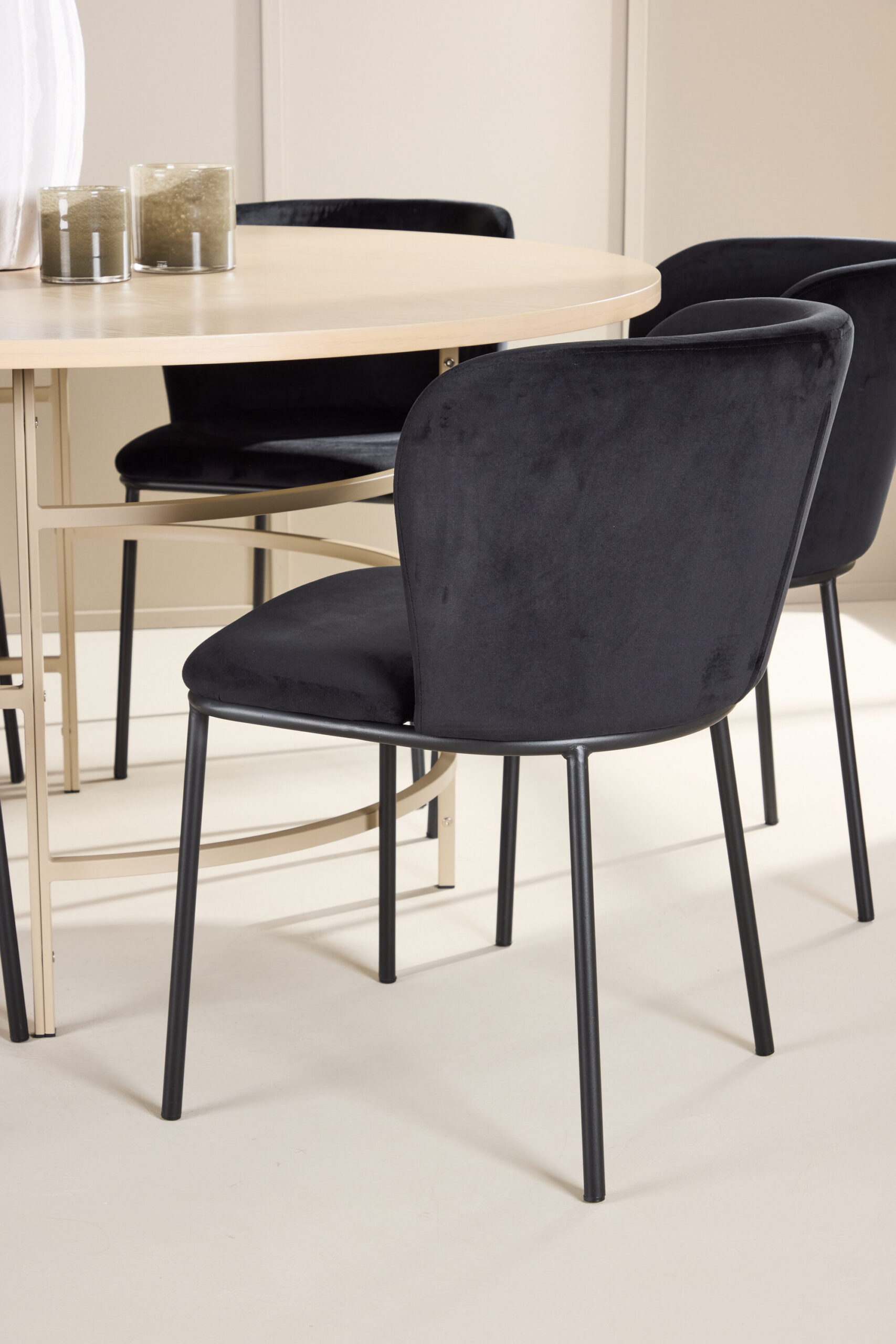 Edina söögitool on polsterdatud eksklusiivse musta sametiga, lisades luksuslikkust ja rafineeritust. Sügav must toon ja sametine tekstuur loovad ruumis elegantse kontrasti ja pakuvad tervitatavat istumiskogemust. Nii esteetikat kui ka ergonoomikat silmas pidades loodud vastupidav seljatugi ja pehme iste muudavad selle ideaalseks pikkadeks õhtusöökideks ja meeldivateks hetkedeks lähedastega.
