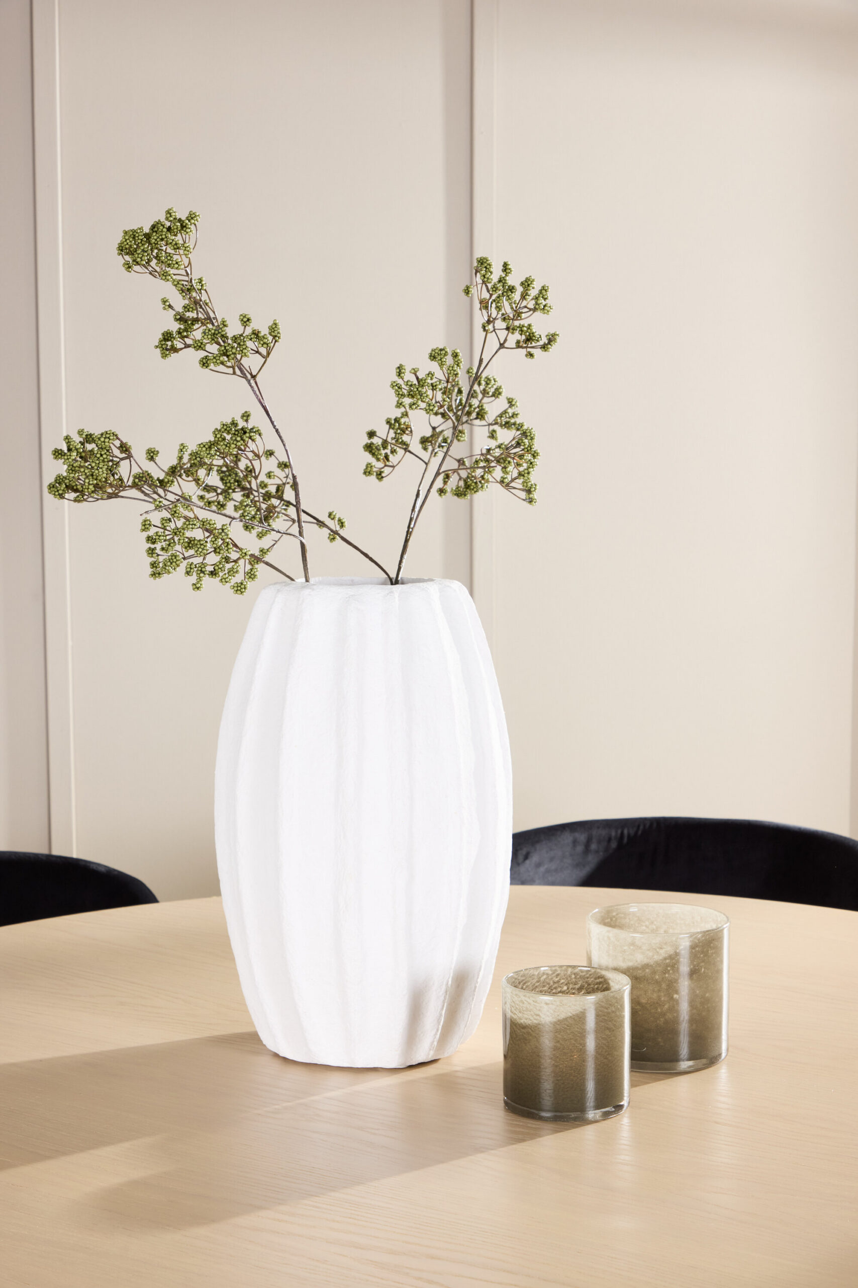 Ühendage toolid Kopenhaageni söögilauaga, mis on ajatu tükk, mis kehastab Skandinaavia minimalismi. Ümmarguse kujuga laud, mille läbimõõt on 140 cm, pakkudes piisavalt ruumi nii igapäevaseks söömiseks kui ka pidulikuks sündmuseks. Valgeks lubjatud lauaplaat tõstab esile puidu loomuliku tekstuuri, andes lauale kerge ja õhulise tunde. Peen, neutraalne värvitoon muudab selle sobitamise lihtsaks erinevate sisustusdetailide ja värvipalettidega.
