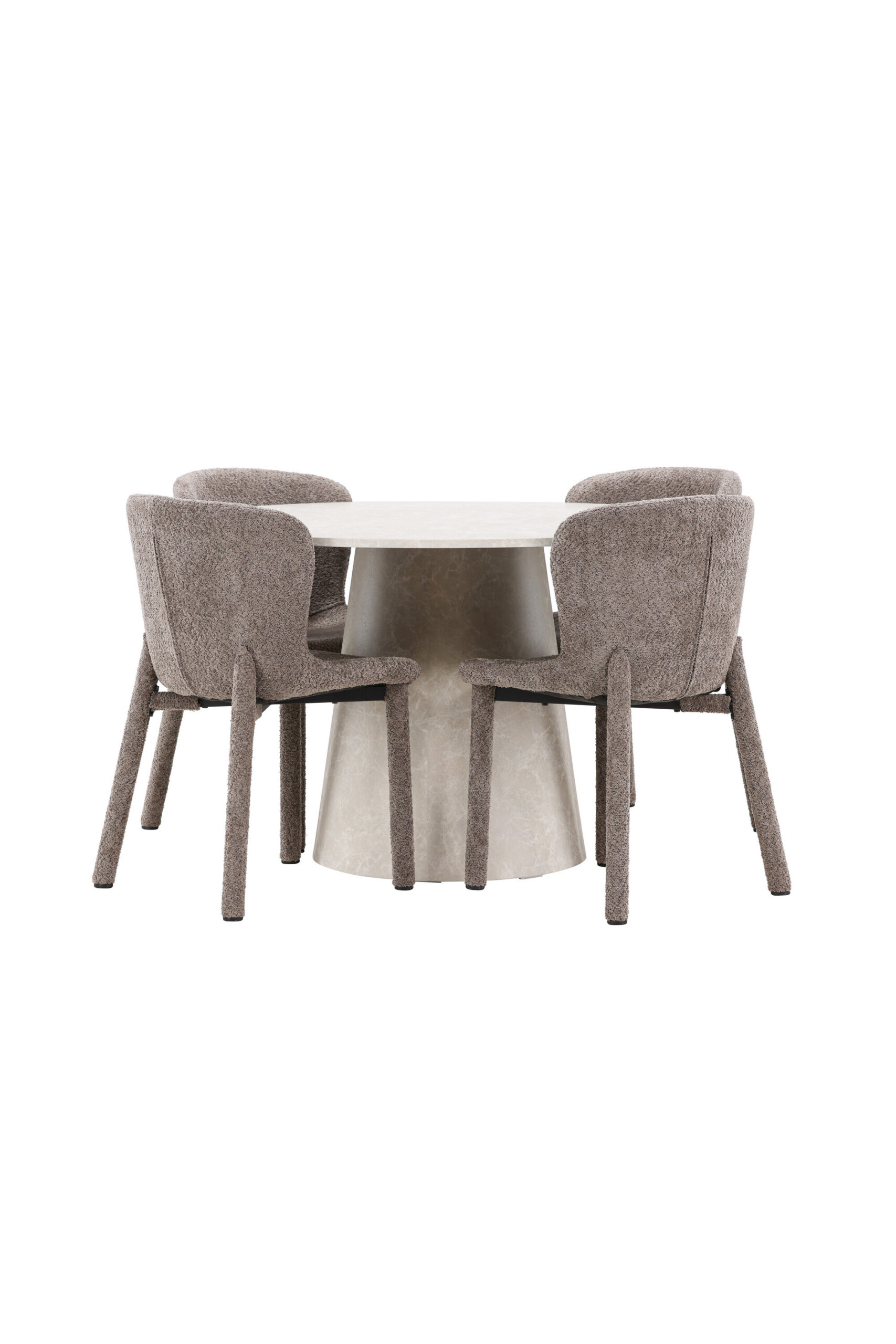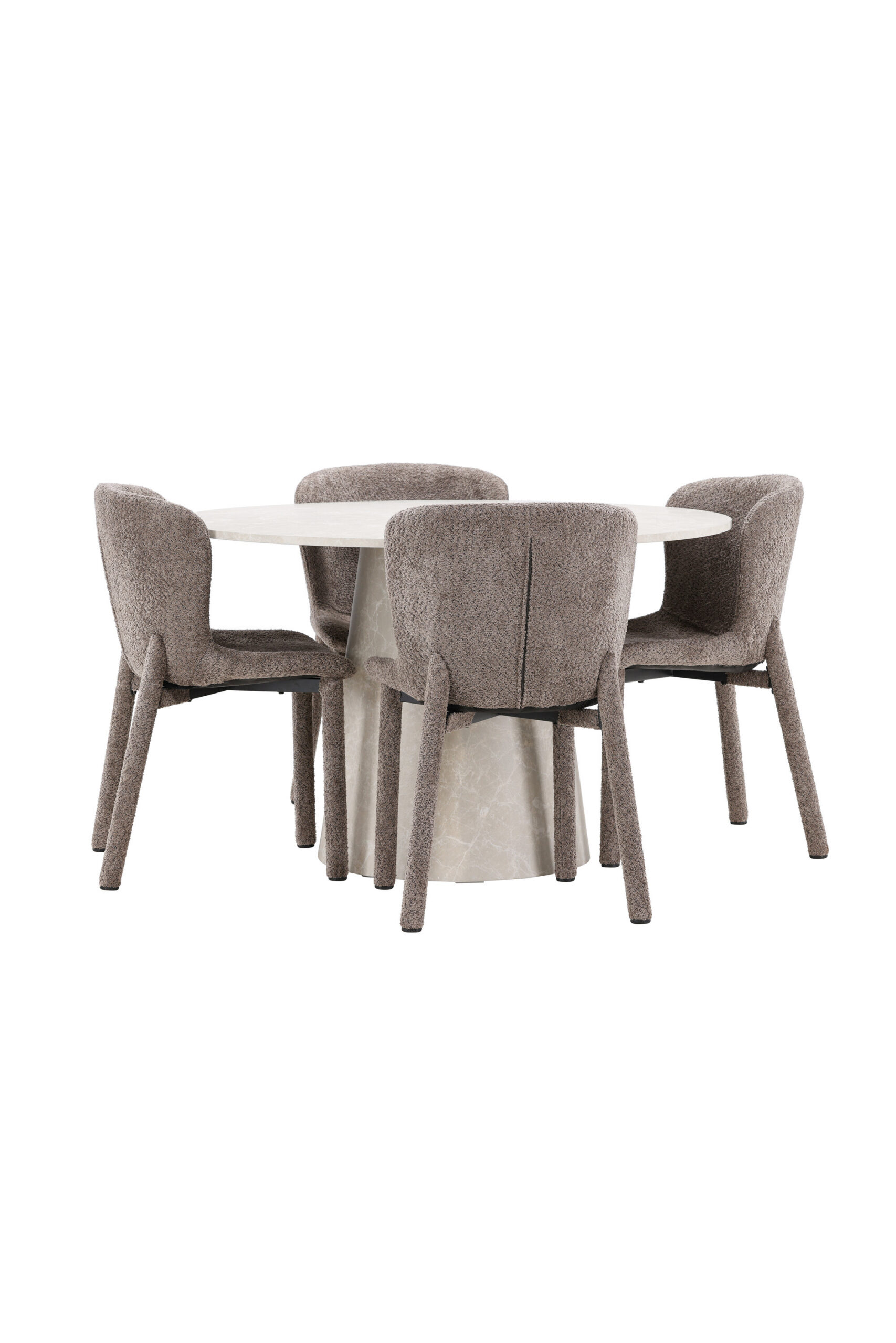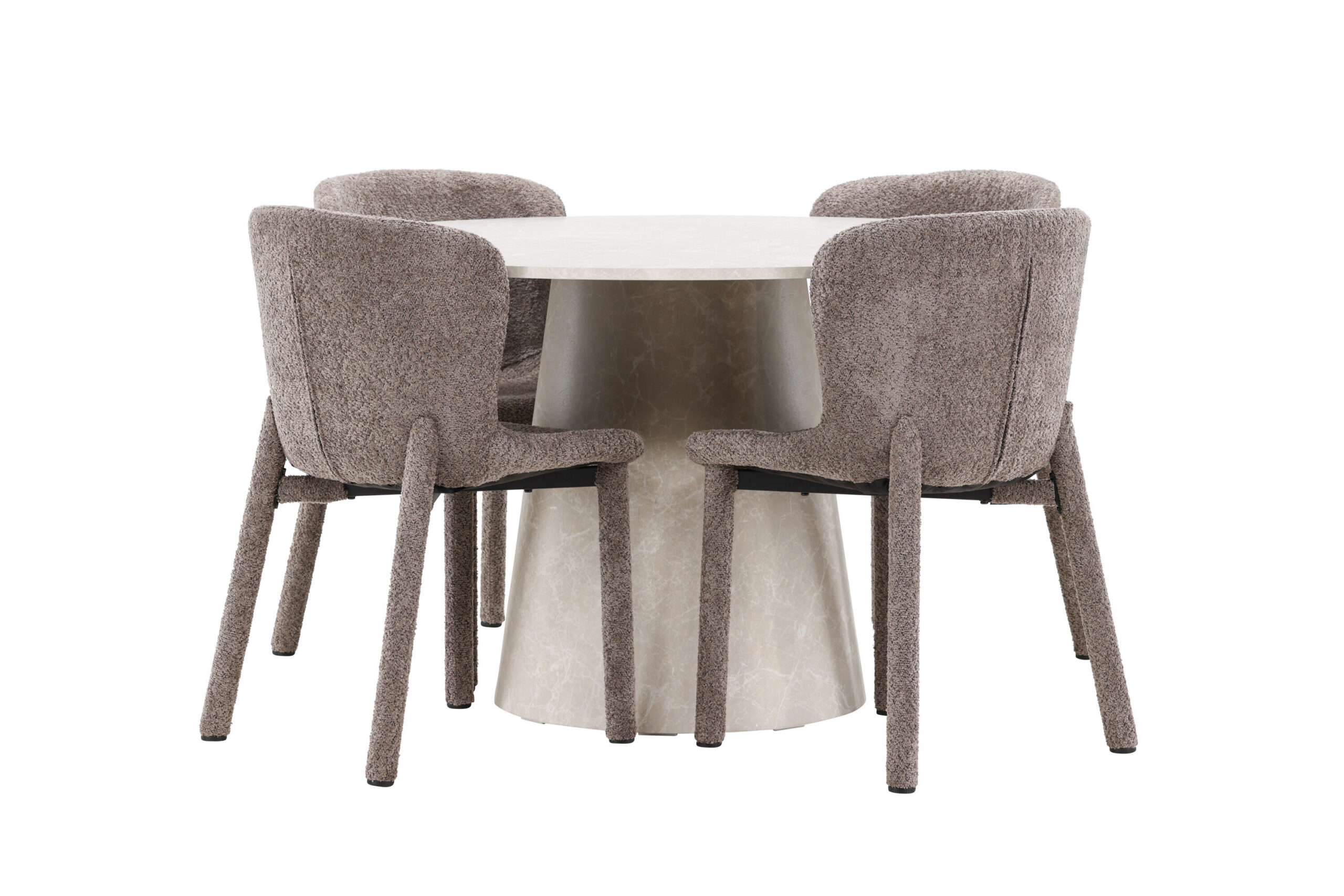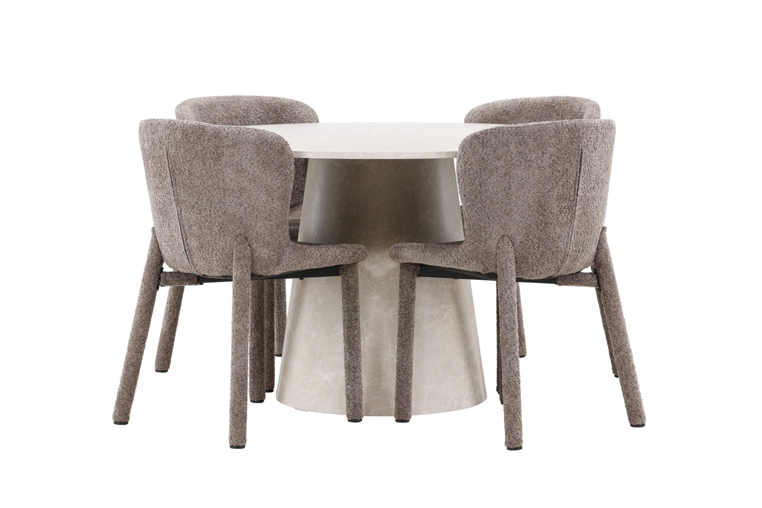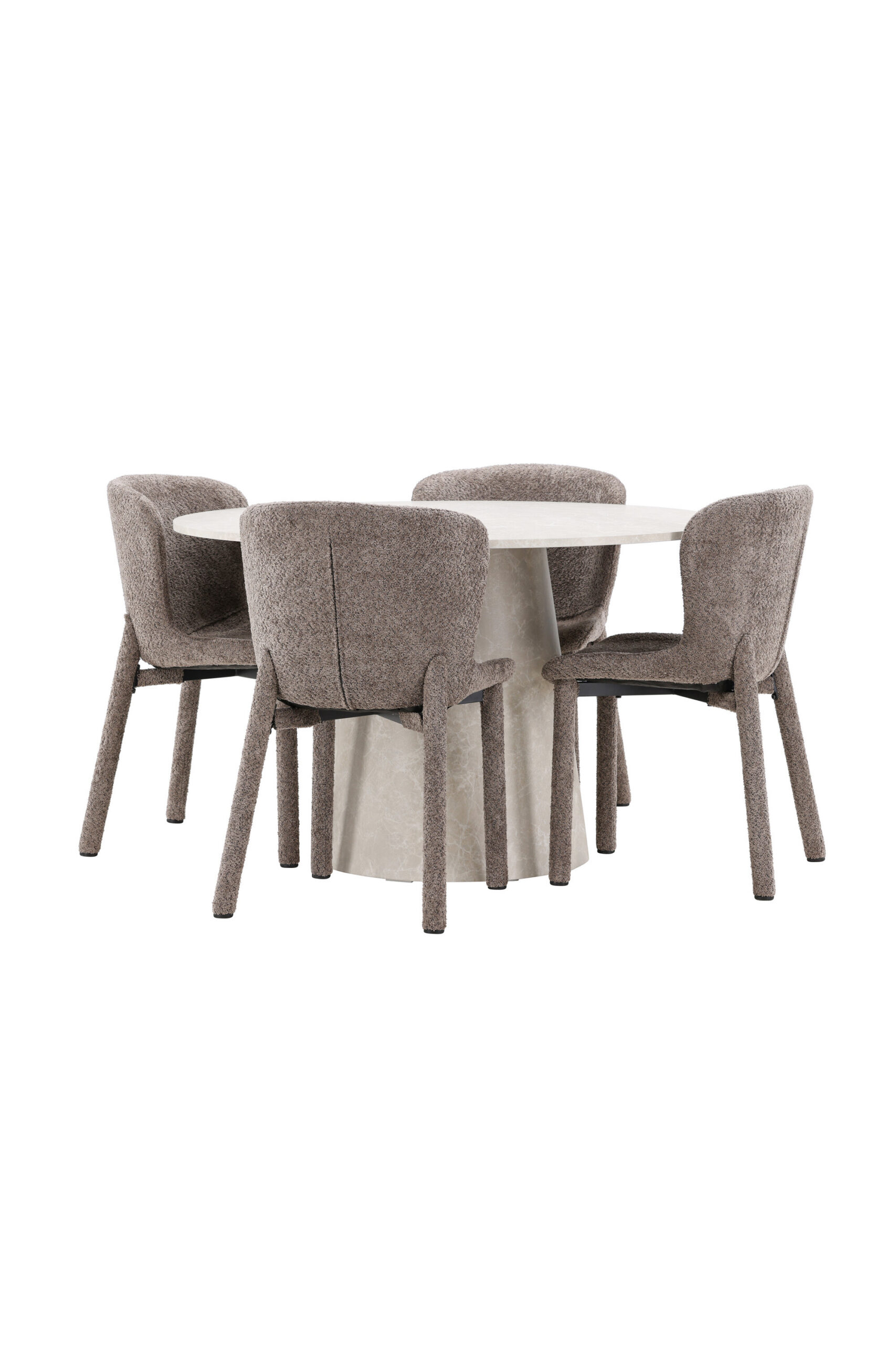 Lauaga on ühendatud Astoria söögitool, mis on polsterdatud elegantse pruuni bukleega. Toolist õhkub soojust ja kutsuvat tunnet ning pehme tekstuuriga bouclé kangas lisab luksust. Rikkalik värv ja keerukas tekstuur muudavad Astoria silmatorkavaks omaduseks nii moodsas kui ka klassikalises keskkonnas. Ergonoomikat silmas pidades kujundatud toolil on kallistav seljatugi ja mugav polsterdatud iste, mis muudab selle ideaalseks pikkadeks lõõgastavateks õhtusöökideks.
