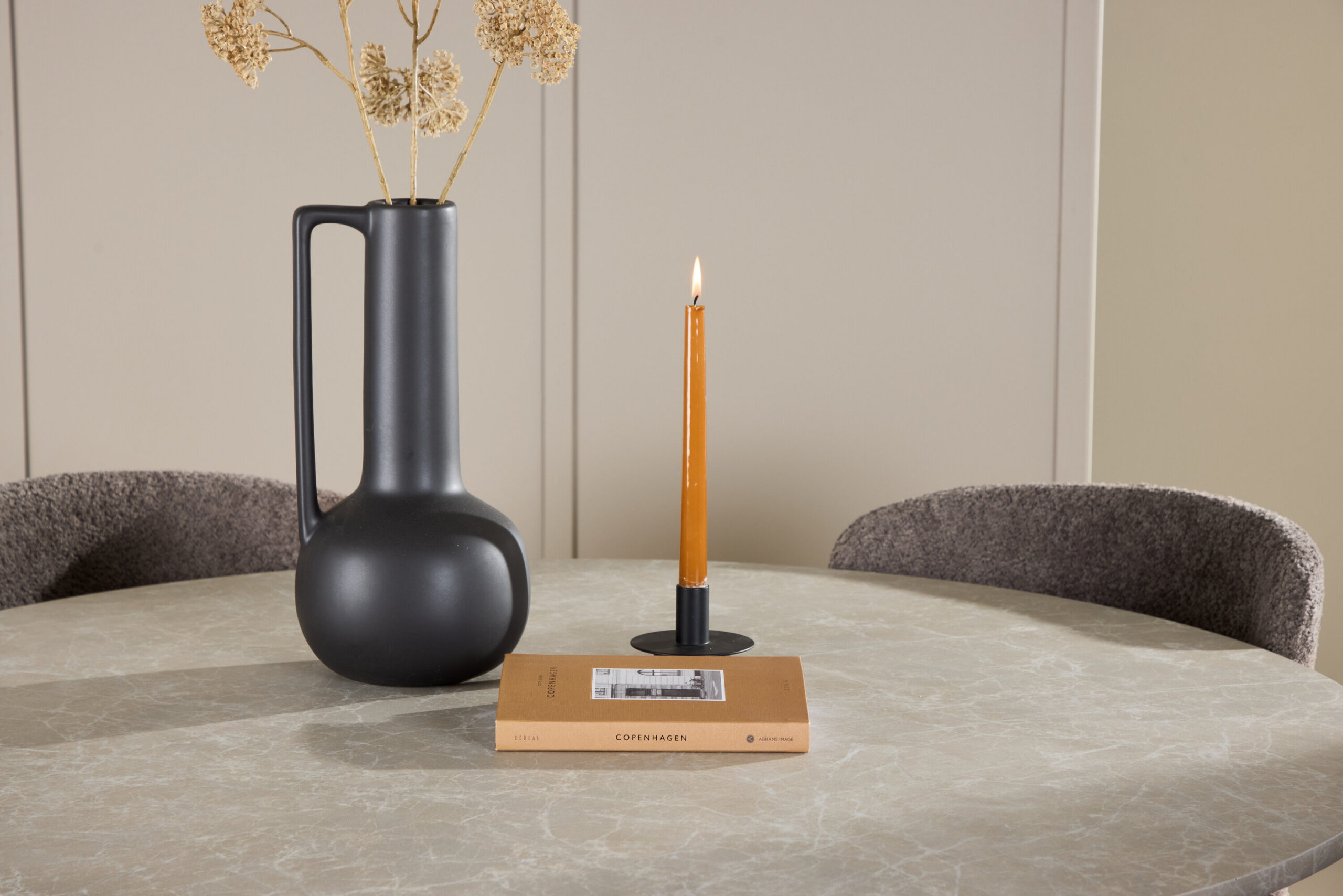 Lanzo söögilaud on peen tükk, mis ühendab ajatu disaini luksusliku beeži marmoriefektiga. Lauaplaat kordab loodusliku kivi ilu, pakkudes eksklusiivset ja elegantset välimust, mis täiendab nii kaasaegset kui ka klassikalist interjööri. Laua ümar kuju loob kutsuva õhkkonna ning julgustab suhtlemist ja vestlust, muutes selle ideaalseks igapäevasteks söögikordadeks ja koosviibimisteks. Selle siledat pinda on lihtne puhastada ja hooldada, mistõttu on see praktiline, kuid stiilne valik igaks elujuhtumiks.