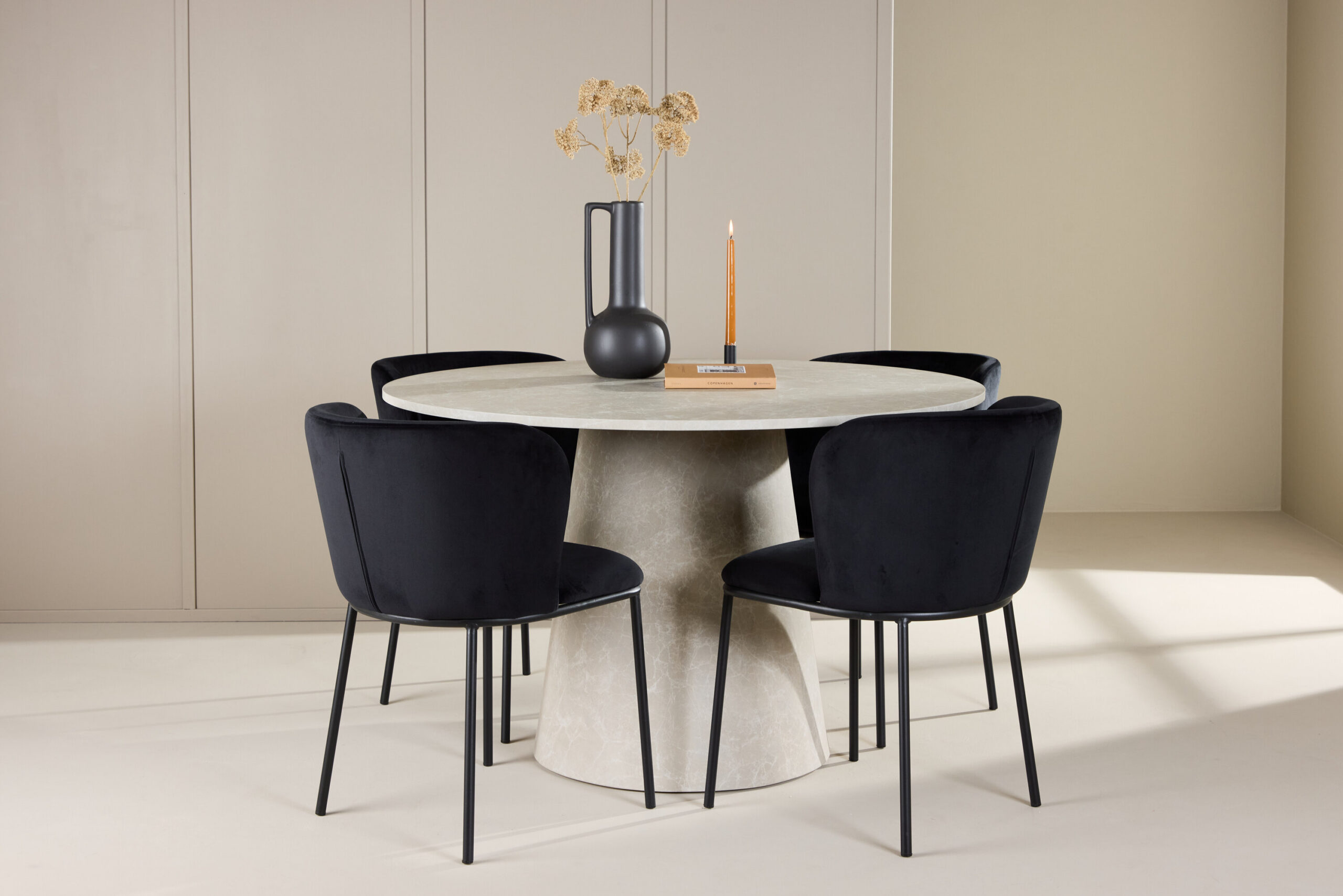 Lauaga on ühendatud Edina söögitool, mis on täiuslik segu luksuslikust disainist ja mugavusest. Musta sametiga polsterdatud tool kiirgab rikkalikku ja kutsuvat tunnet, samas kui pehme tekstuur suurendab istumismugavust. Sügavmust toon lisab teie söögitoale glamuuri ja elegantsi ning klanitud disain tagab, et see täiendab vaevata erinevaid interjööri stiile. Selle ergonoomiline kuju ja vastupidav konstruktsioon pakuvad nii mugavust kui ka vastupidavust, muutes selle ideaalseks pikkadeks õhtusöökideks ja seltskondlikeks koosviibimisteks.