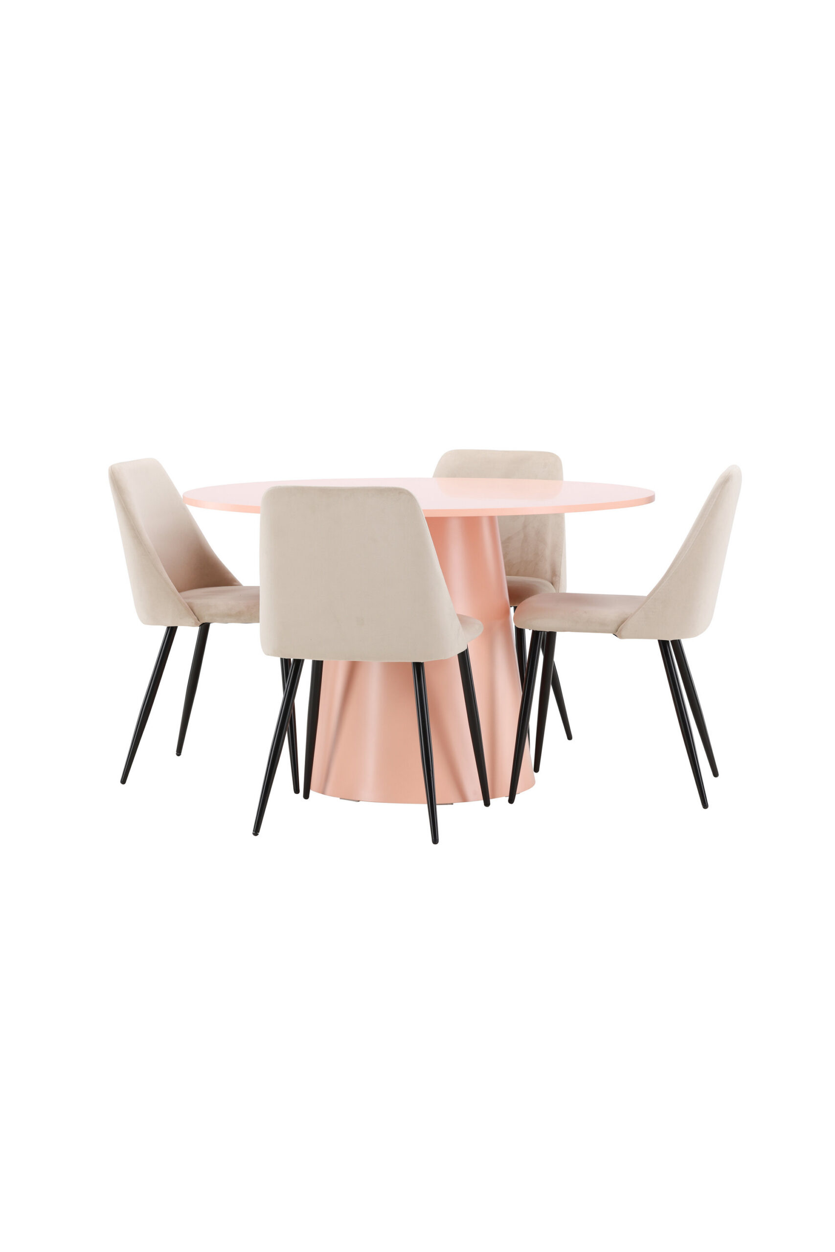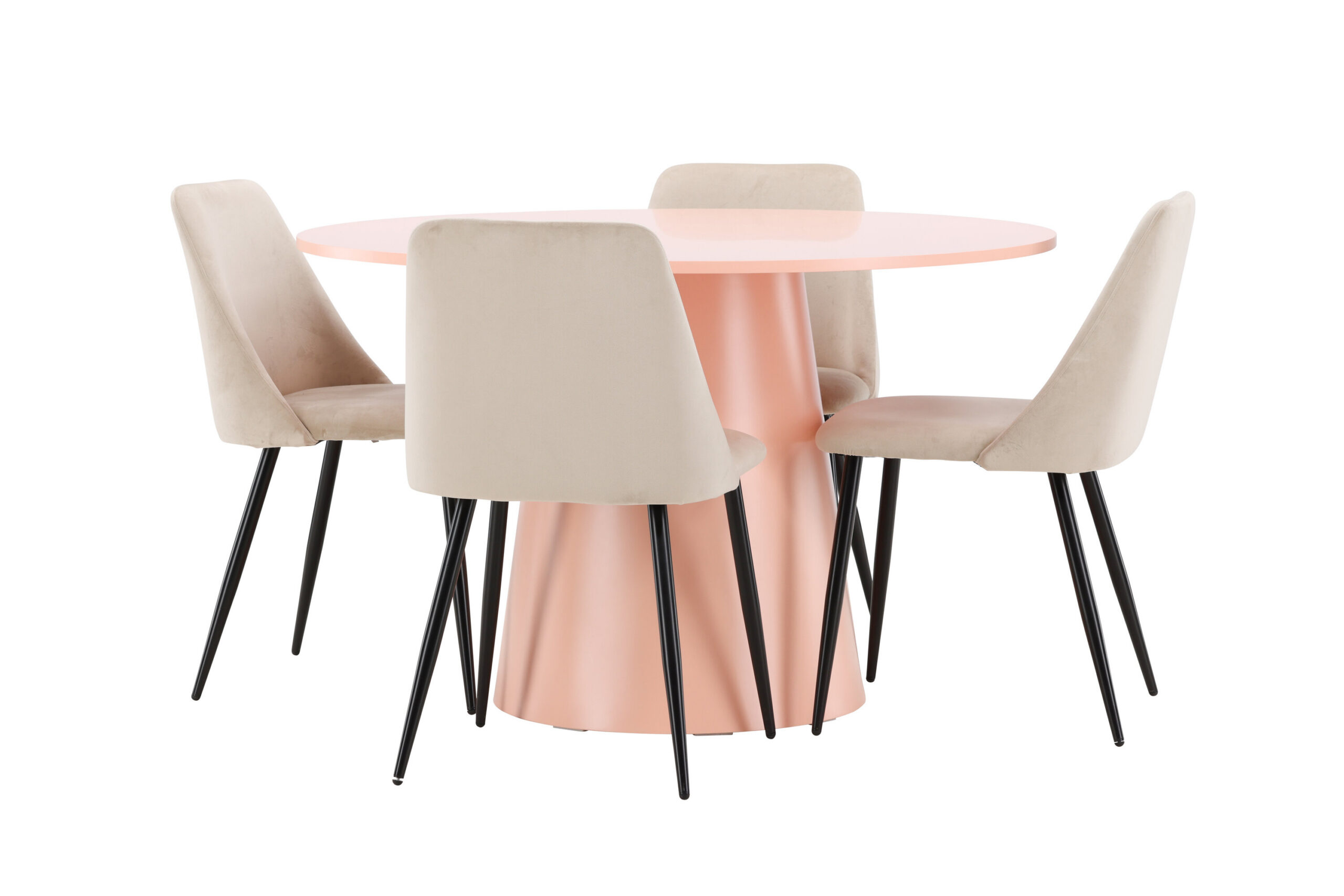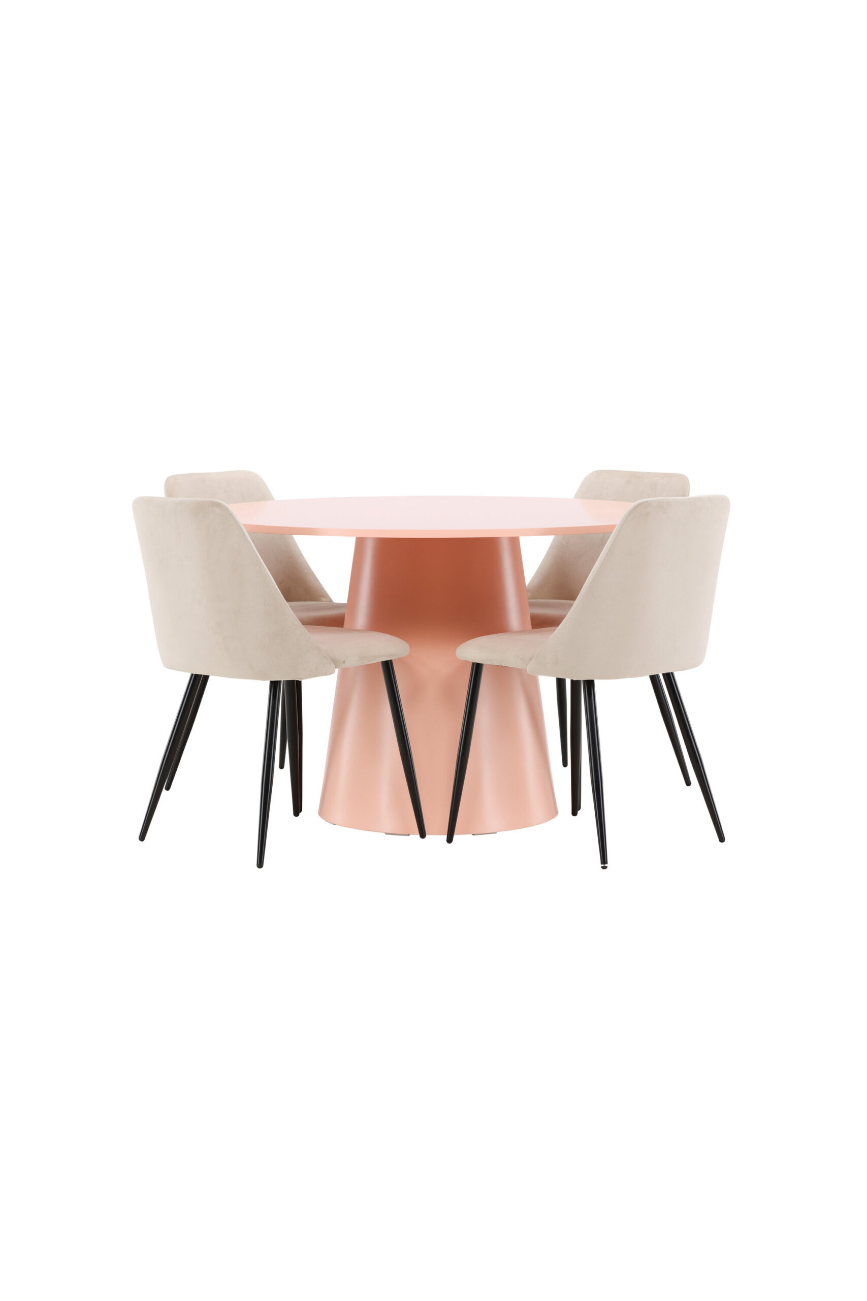 Lanzo söögilaud toob teie koju värske ja särtsaka värskenduse oma virsikuvärvi viimistlusega. Laua ümar kuju ja ühtlane värv, mis ulatuvad sujuvalt lauaplaadist jalgadeni, loovad harmoonilise ja kutsuva tunde. Soe, mänguline toon toimib loomuliku fookuspunktina, lisades teie sisekujundusele keeruka puudutuse. Oma mitmekülgse disaini ja rohkete istekohtadega muudab Lanzo iga eine või seltskondliku koosviibimise hubaseks ja nauditavaks kogemuseks.
