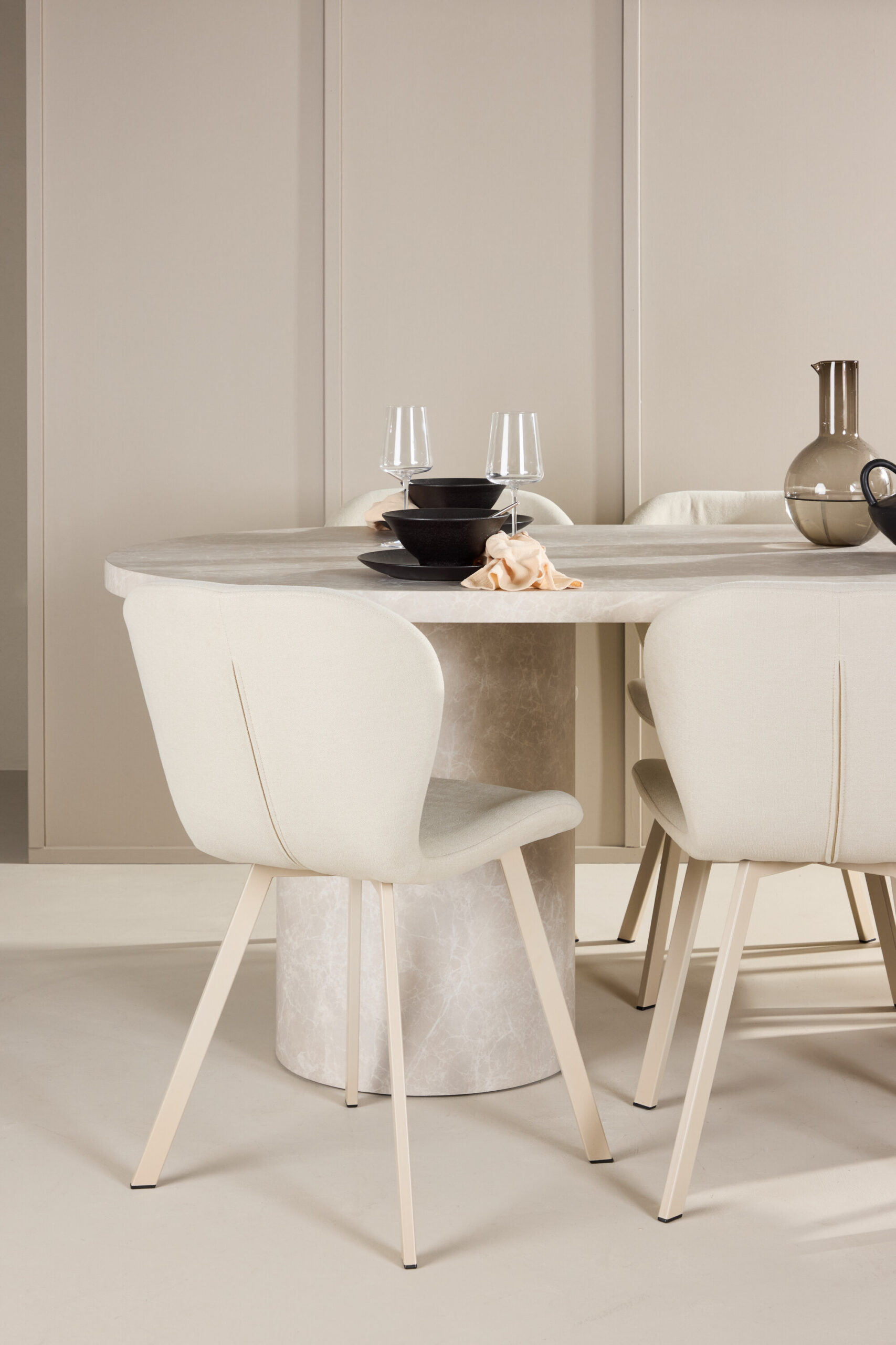 Lauaga on ühendatud Lilja söögitool, mis on loodud lisama soojust ja kutsuvat tunnet oma pehme beeži polstriga. Neutraalne värv muudab tooli mitmekülgseks ja hõlpsasti ühendatavaks erinevate sisustusstiilidega. Mugavust silmas pidades ergonoomiliselt kujundatud Liljal on toetav seljatugi ja rikkalikult polsterdatud iste, mis tagab mugava kogemuse pikkade söögikordade ajal.
