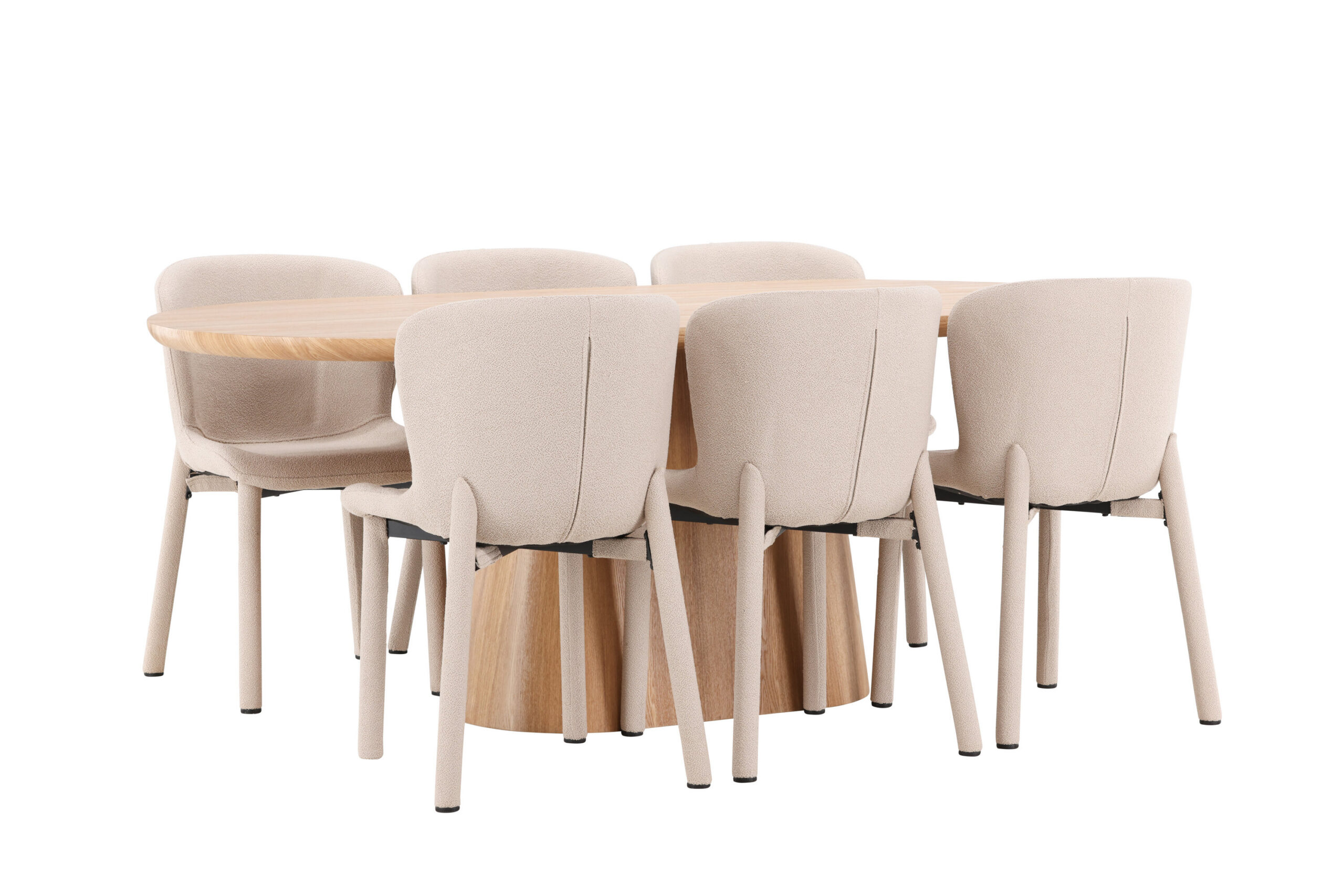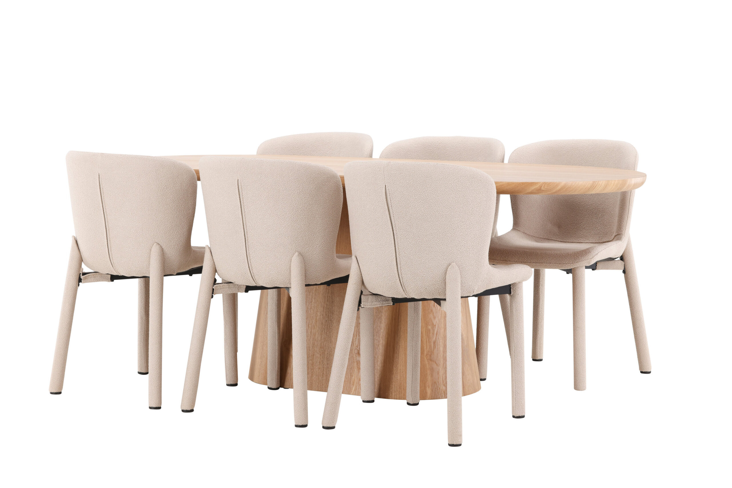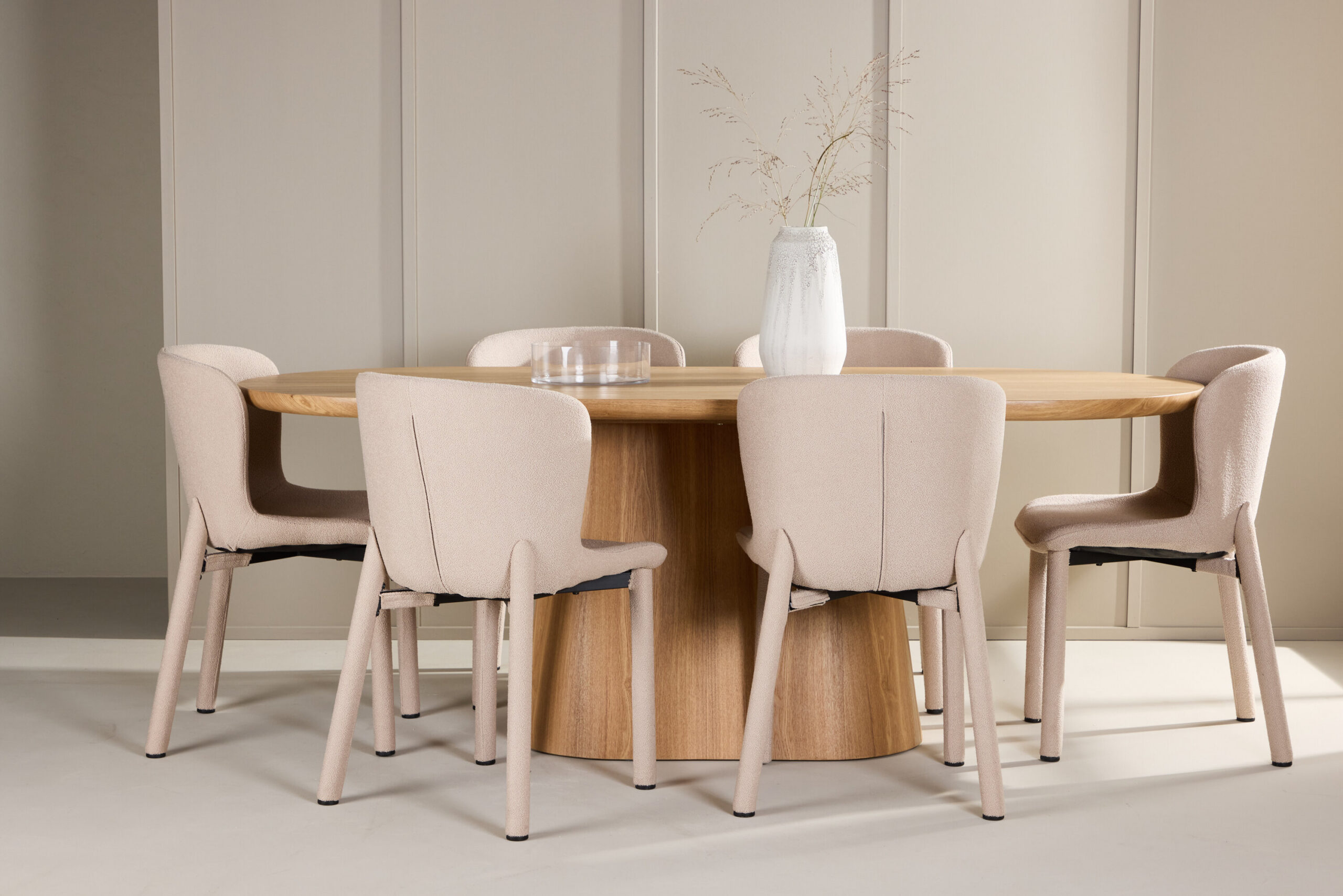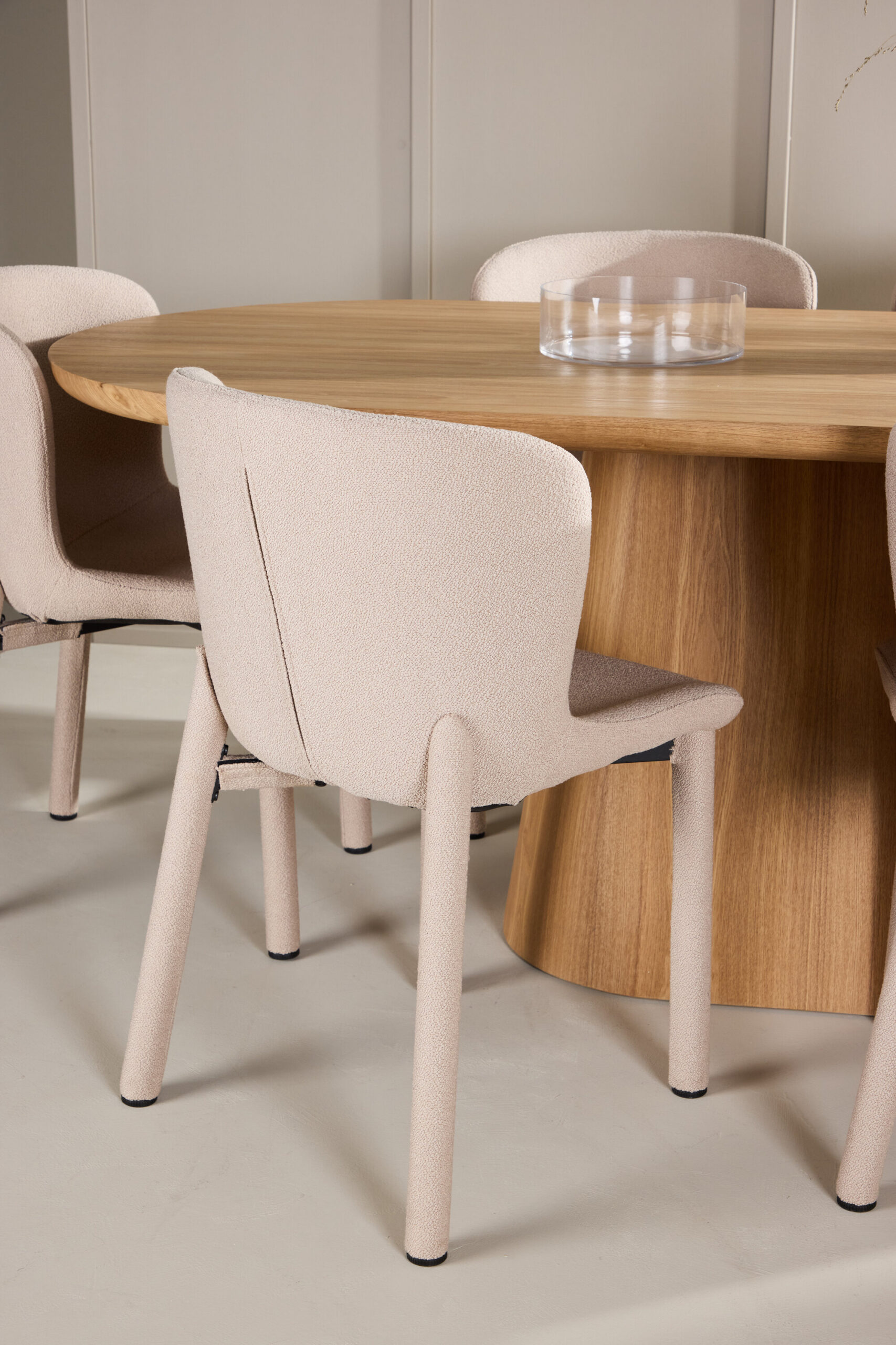 Astoria söögitoolid täiendavad lauda suurepäraselt oma elegantse ja läbimõeldud beeži bouclé disainiga. See luksuslik kangas annab toolidele eksklusiivse tunde ja peene tekstuuri, mis sobib kõigi interjööri stiilidega, alates modernsest minimalismist kuni klassikalise elegantseni. Astoria on disainitud nii stiili kui ka mugavust silmas pidades – ergonoomiline seljatugi ja rikkalik polsterdus tagavad toetava ja mugava istme, muutes iga toidukorra nauditavaks kogemuseks.