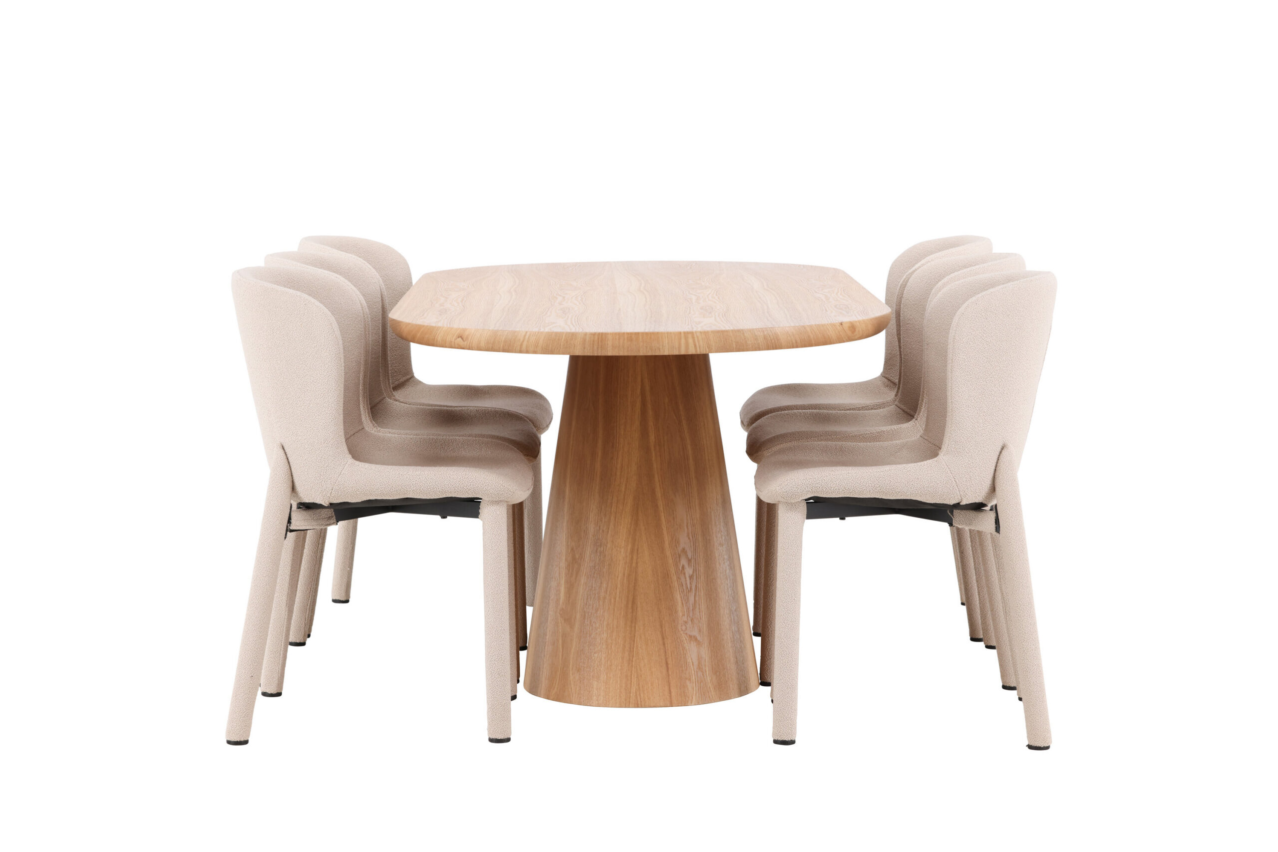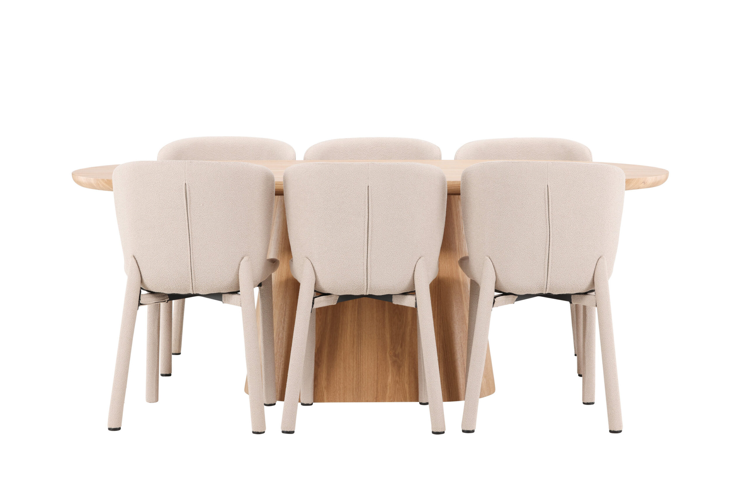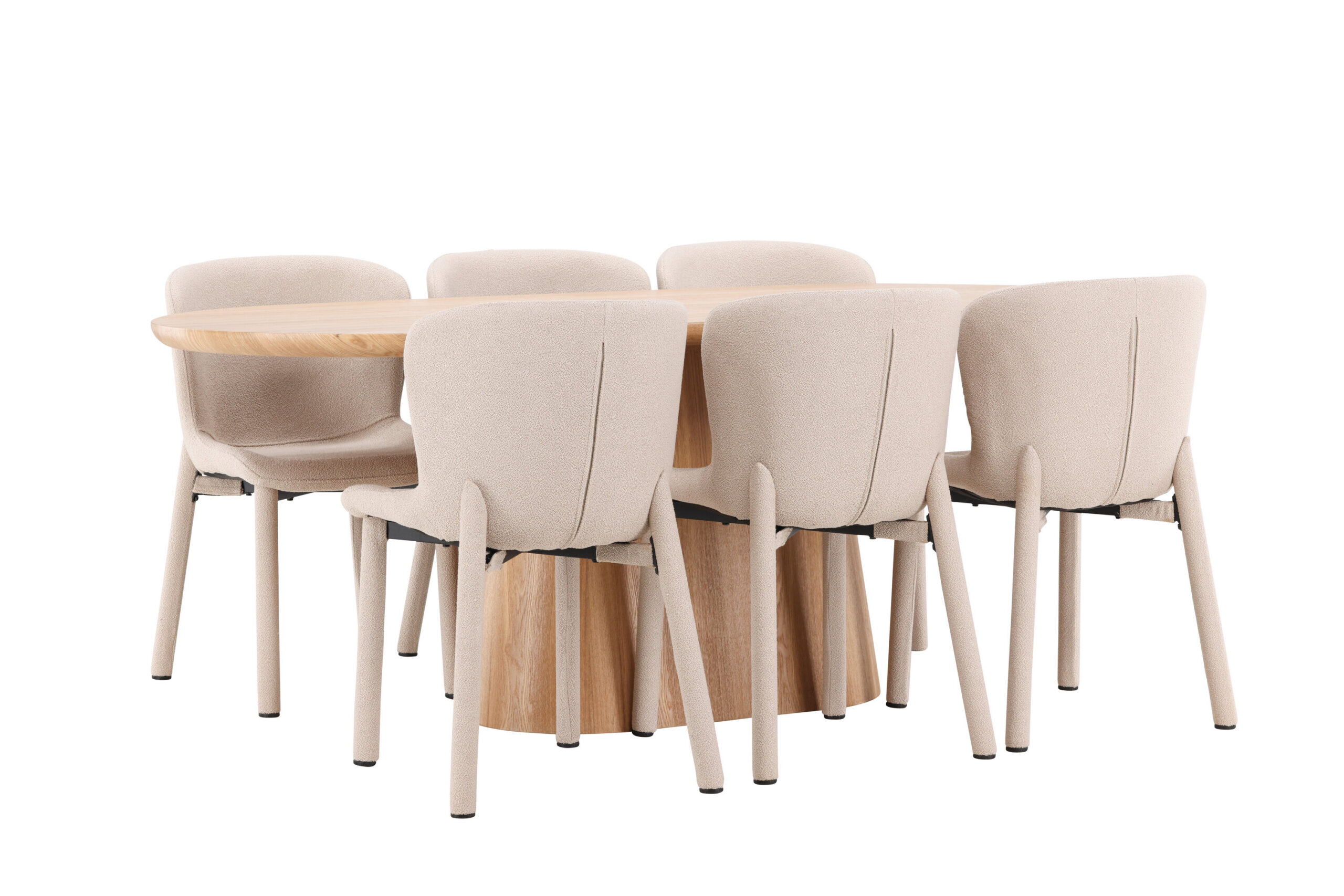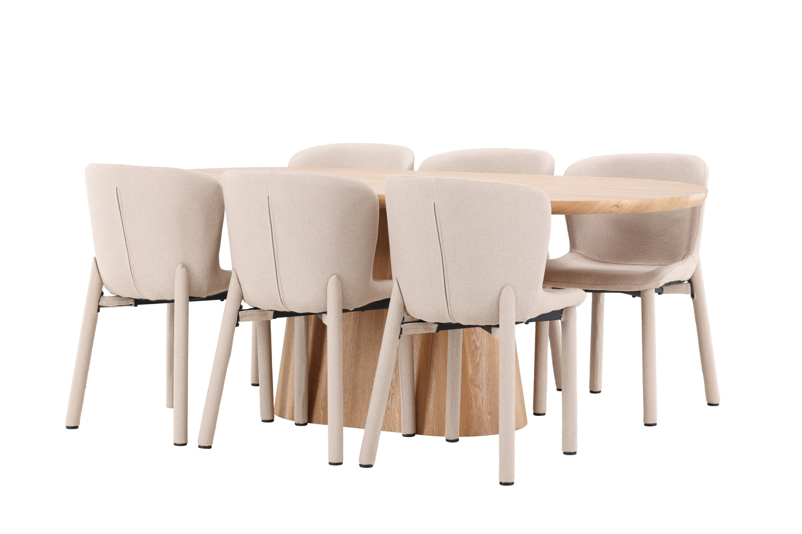 Astoria söögitoolid täiendavad lauda suurepäraselt oma elegantse ja läbimõeldud beeži bouclé disainiga. See luksuslik kangas annab toolidele eksklusiivse tunde ja peene tekstuuri, mis sobib kõigi interjööri stiilidega, alates modernsest minimalismist kuni klassikalise elegantseni. Astoria on disainitud nii stiili kui ka mugavust silmas pidades – ergonoomiline seljatugi ja rikkalik polsterdus tagavad toetava ja mugava istme, muutes iga toidukorra nauditavaks kogemuseks.