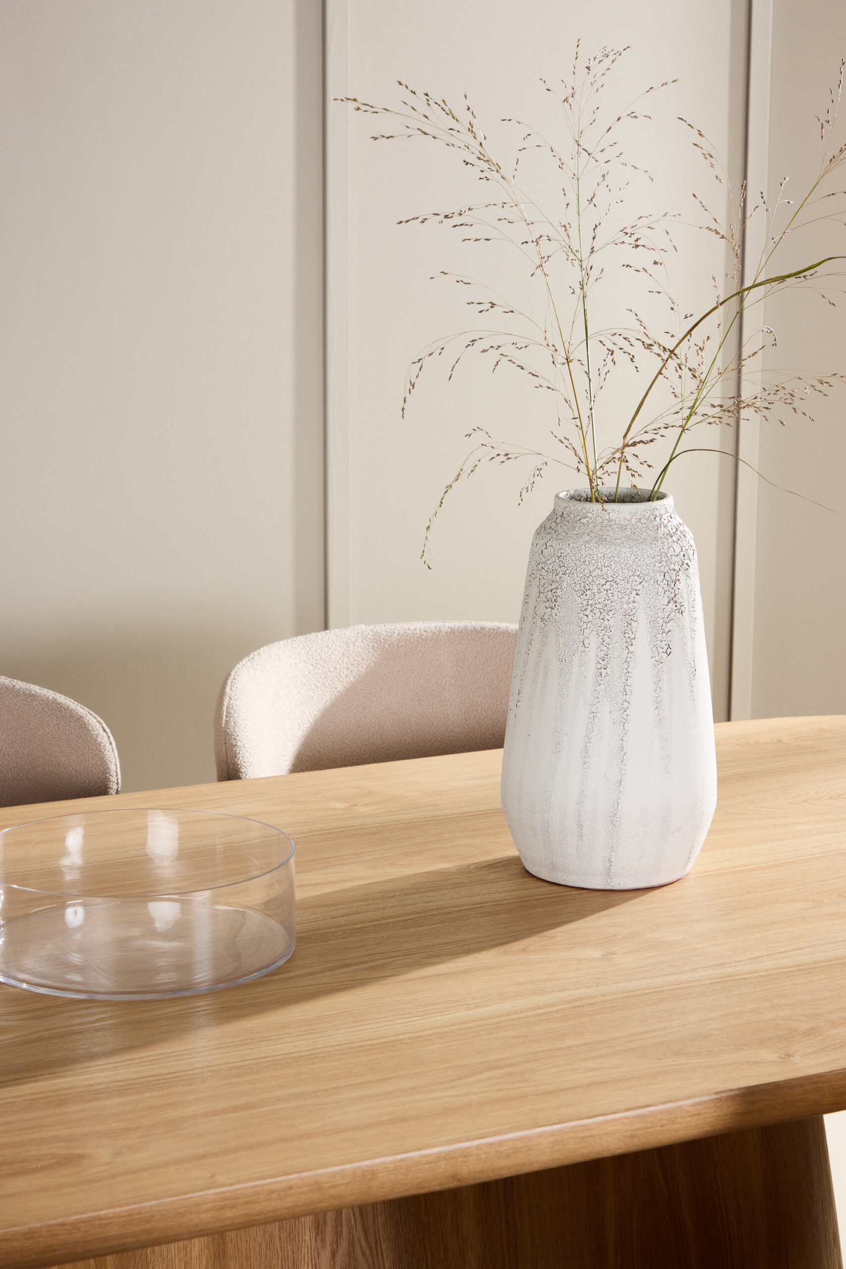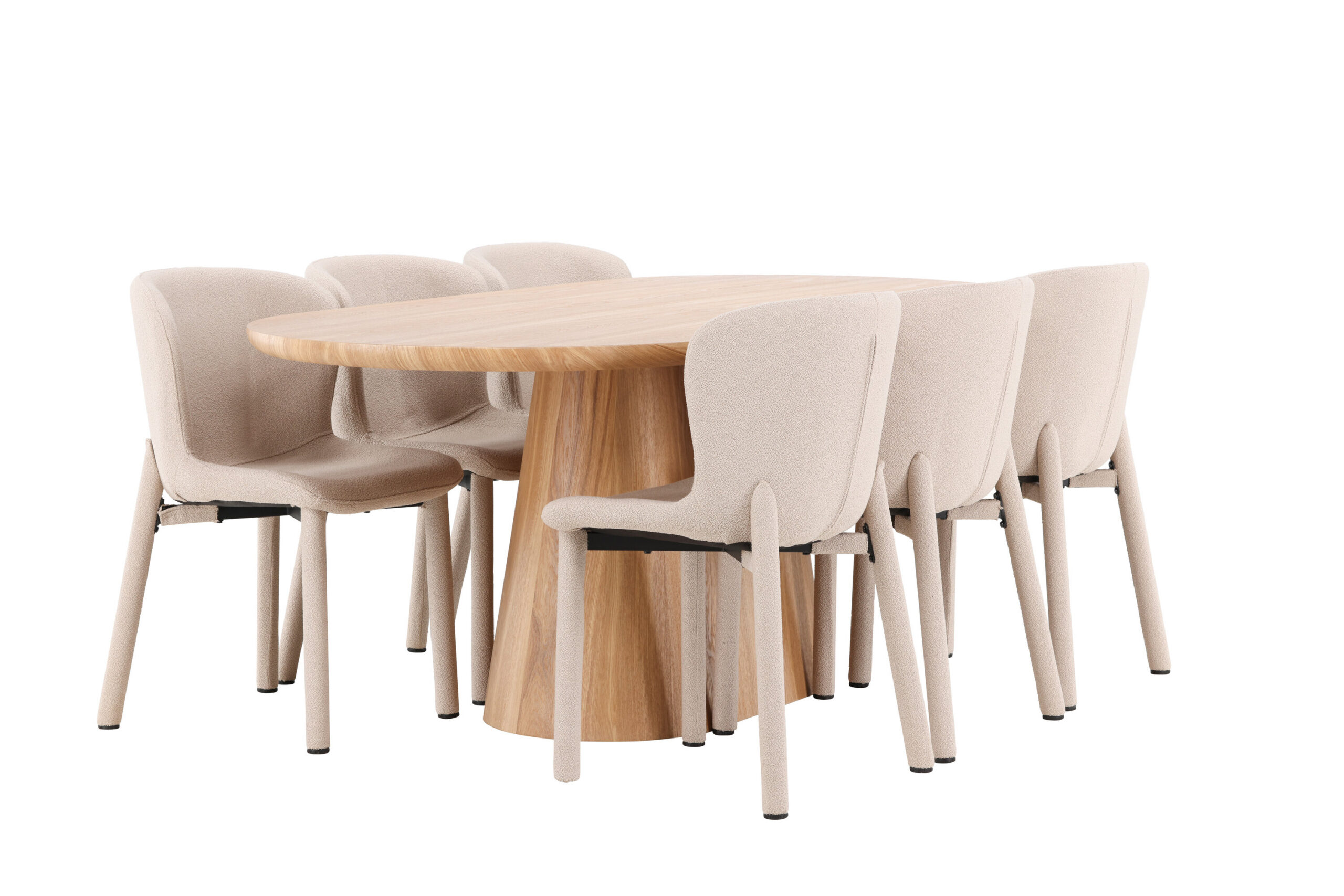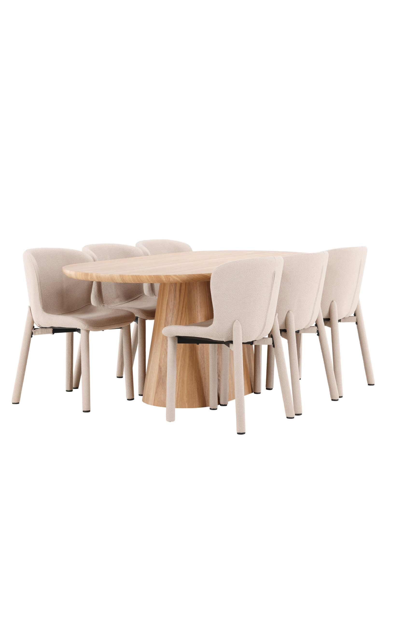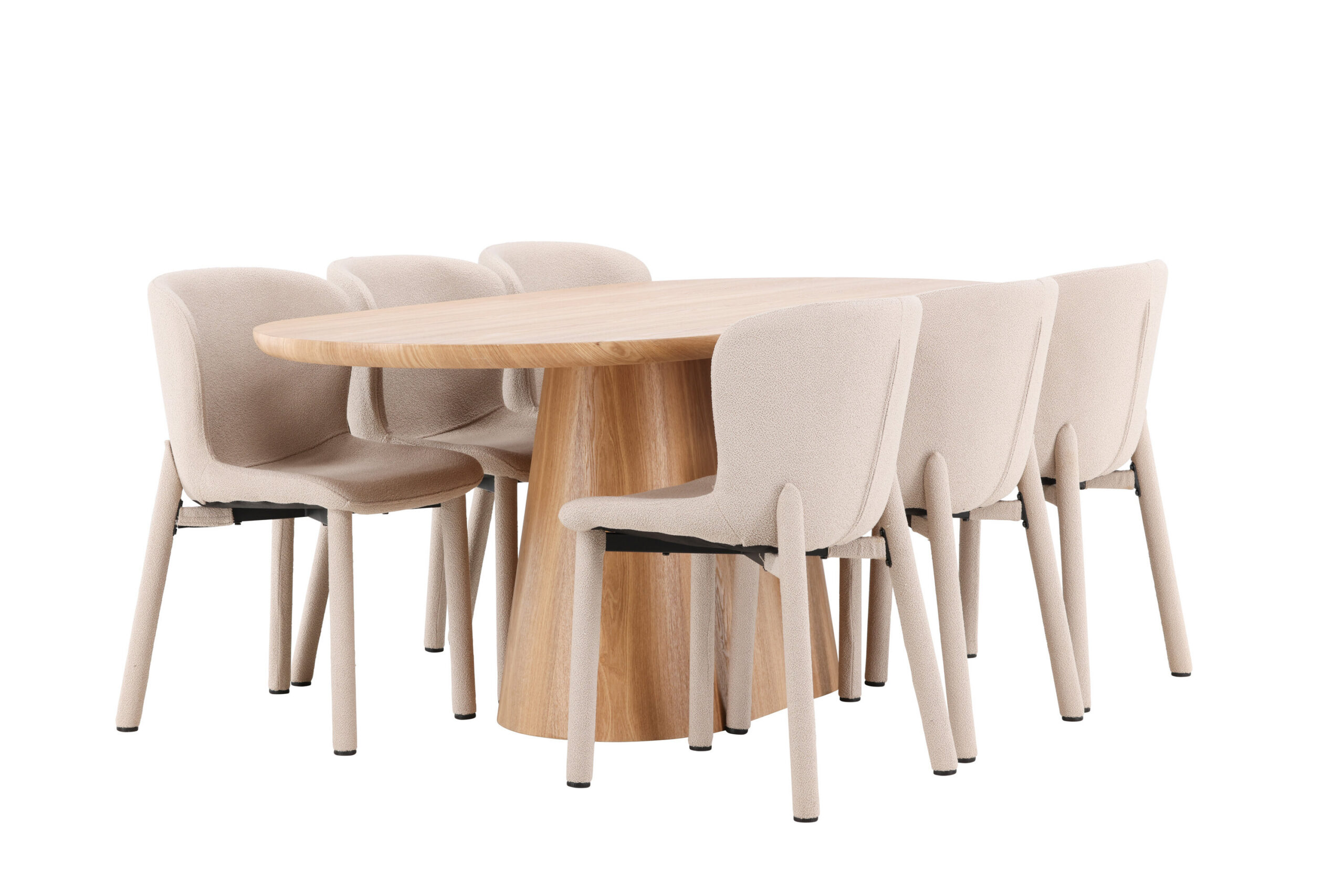 Astoria söögitoolid täiendavad lauda suurepäraselt oma elegantse ja läbimõeldud beeži bouclé disainiga. See luksuslik kangas annab toolidele eksklusiivse tunde ja peene tekstuuri, mis sobib kõigi interjööri stiilidega, alates modernsest minimalismist kuni klassikalise elegantseni. Astoria on disainitud nii stiili kui ka mugavust silmas pidades – ergonoomiline seljatugi ja rikkalik polsterdus tagavad toetava ja mugava istme, muutes iga toidukorra nauditavaks kogemuseks.